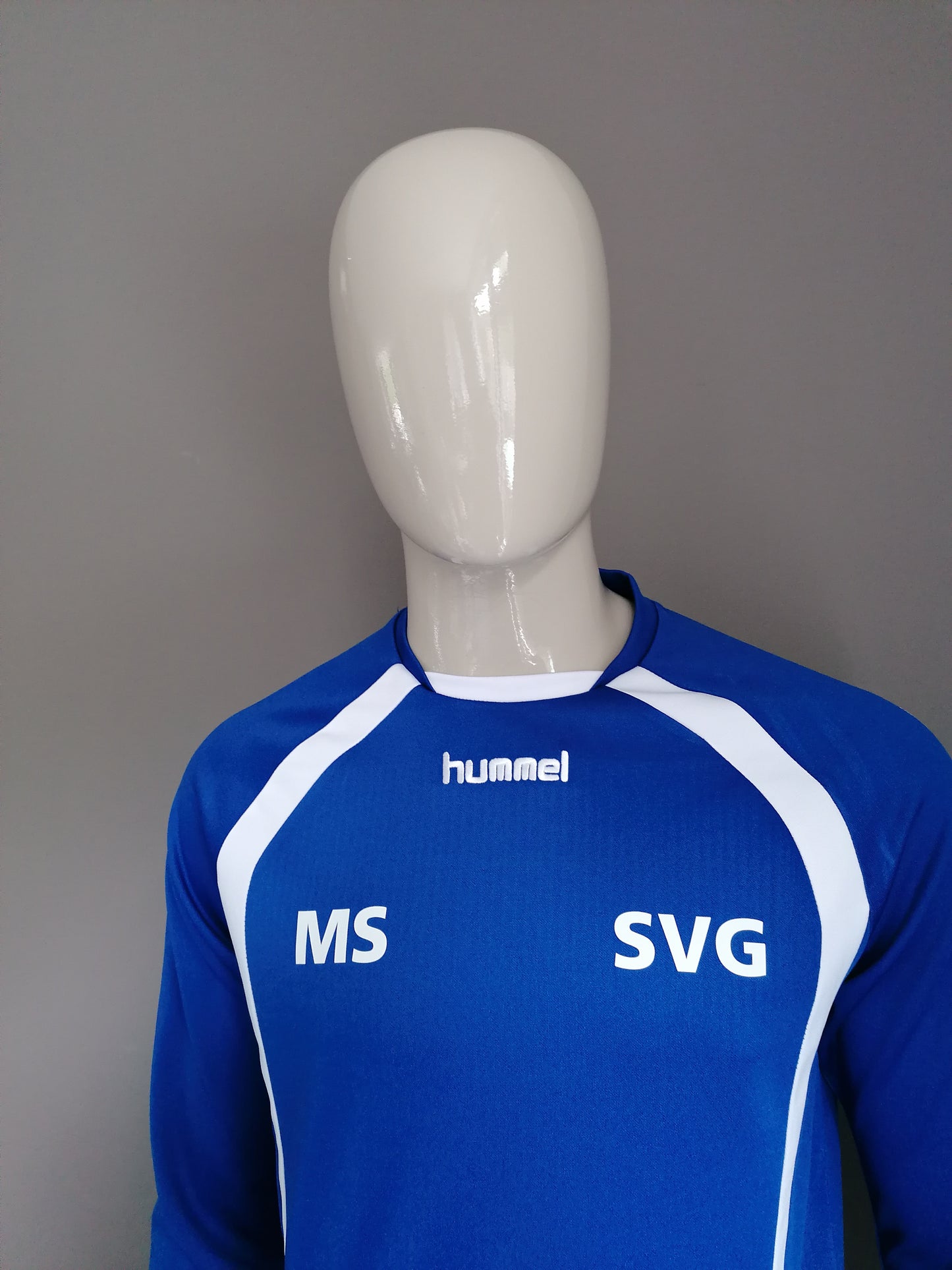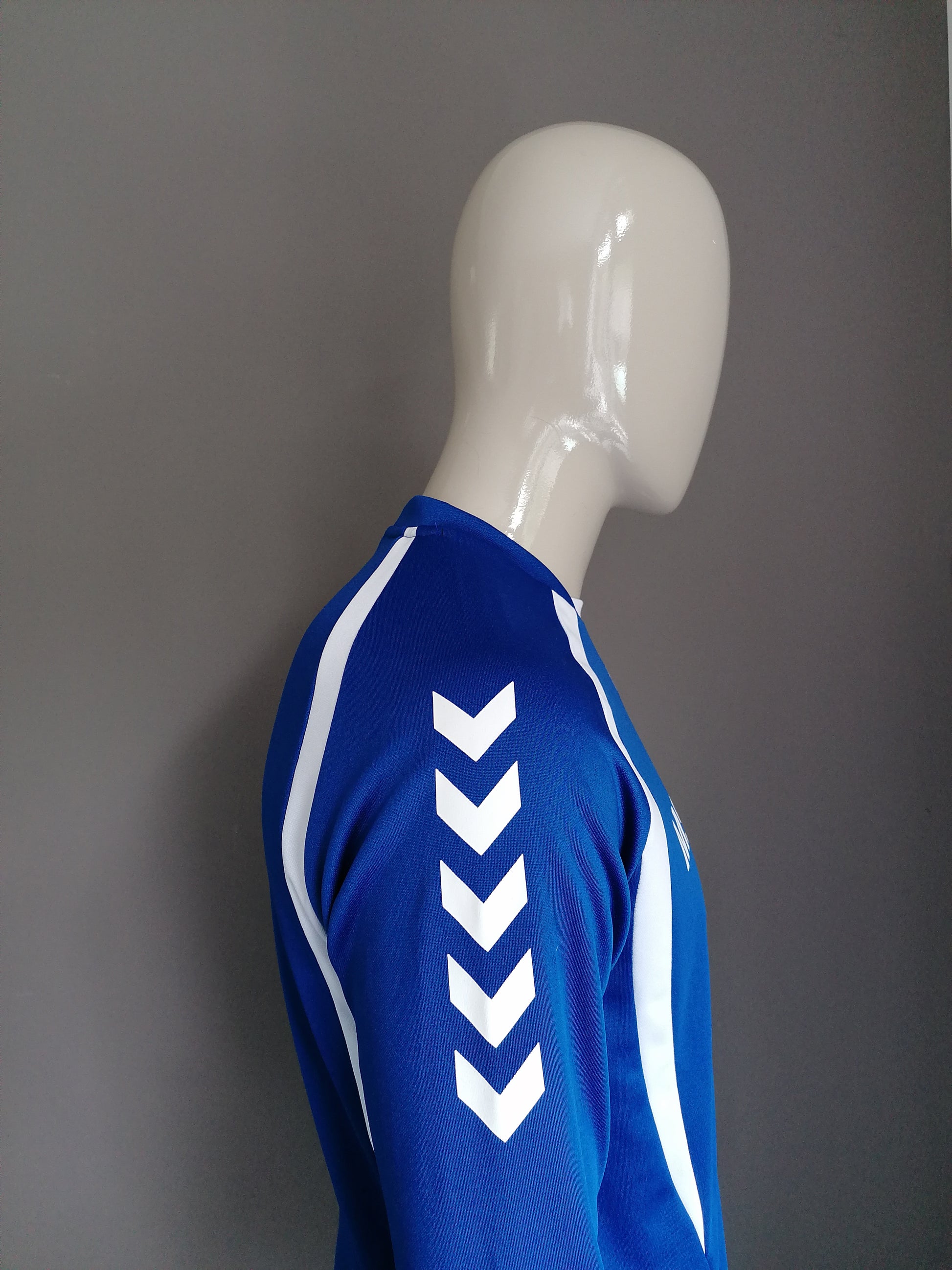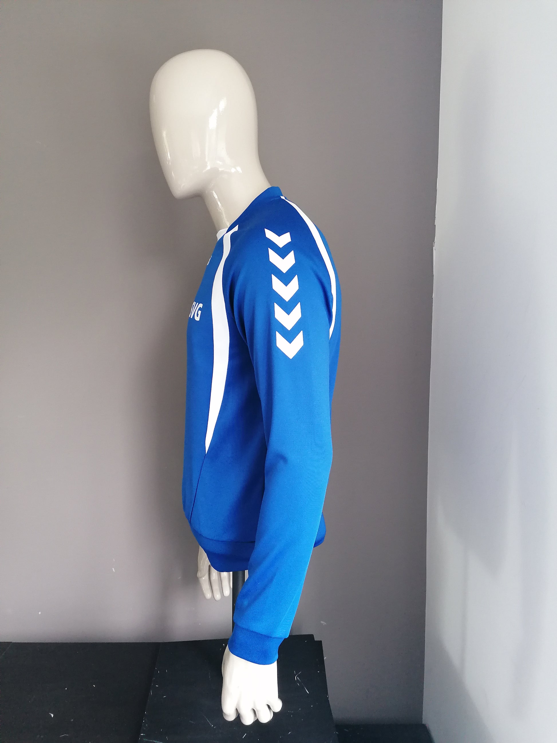 Hummel "SVG" sport trui. Blauw Wit gekleurd. Maat M.