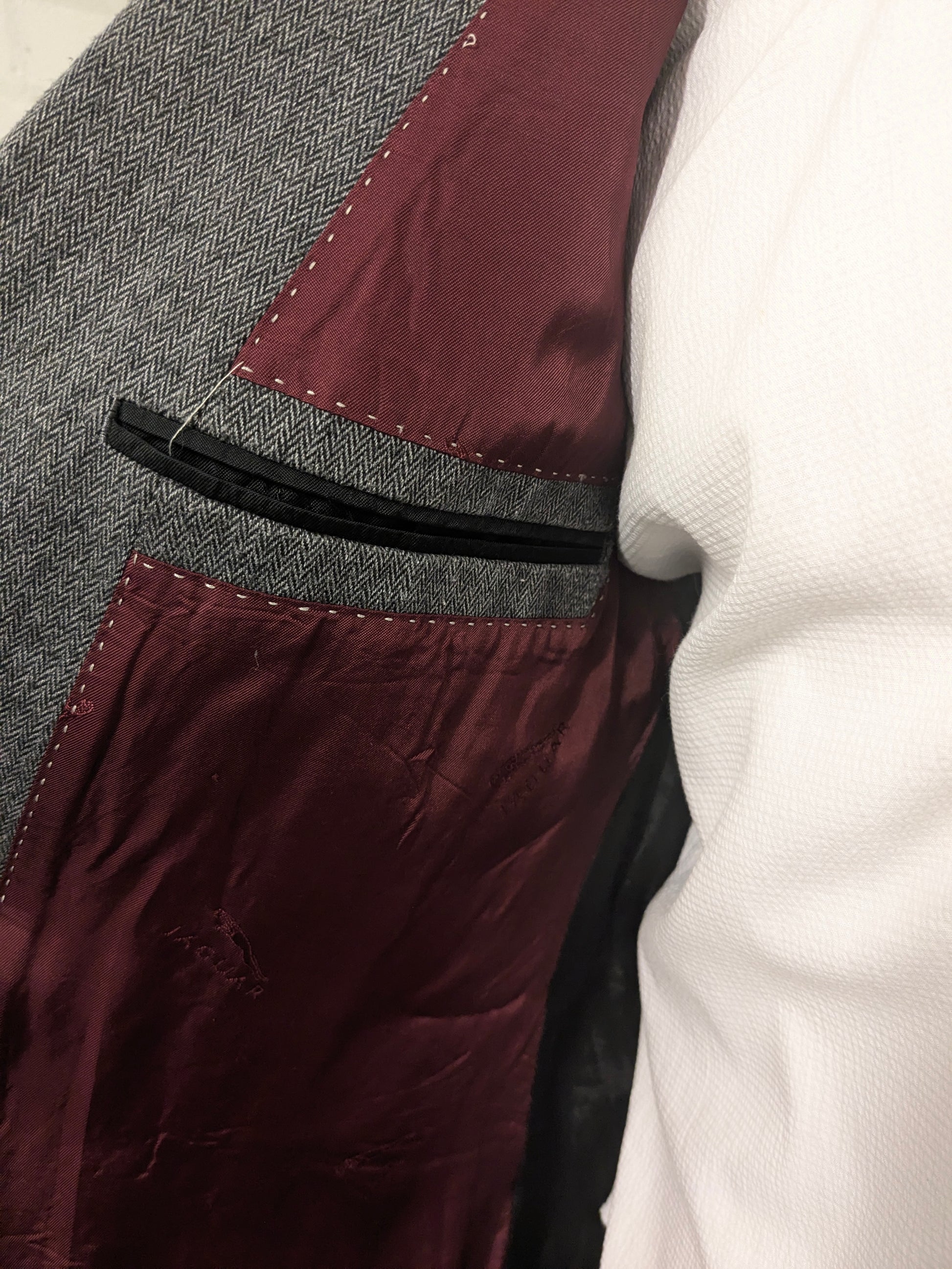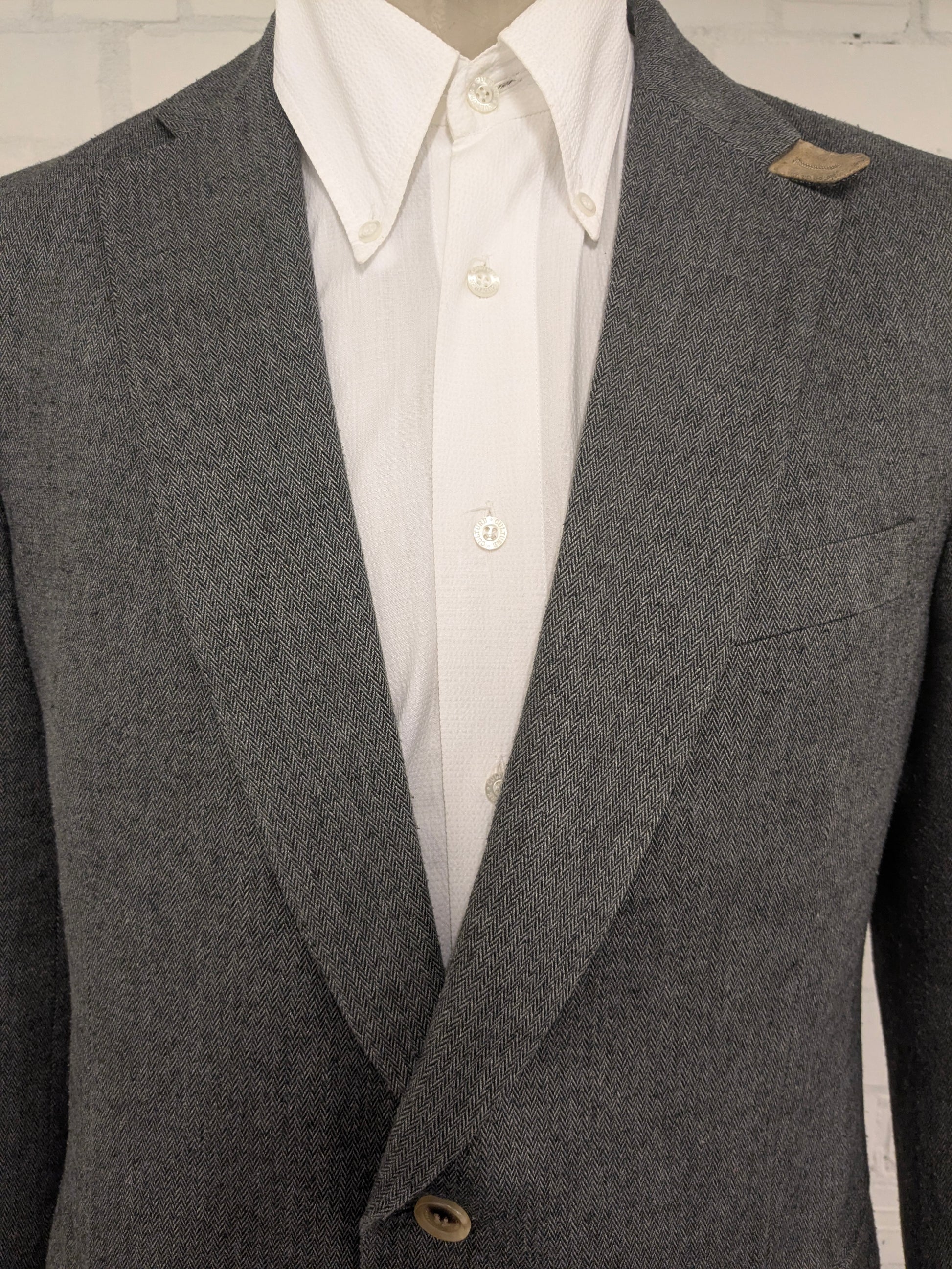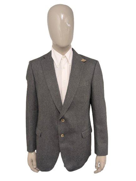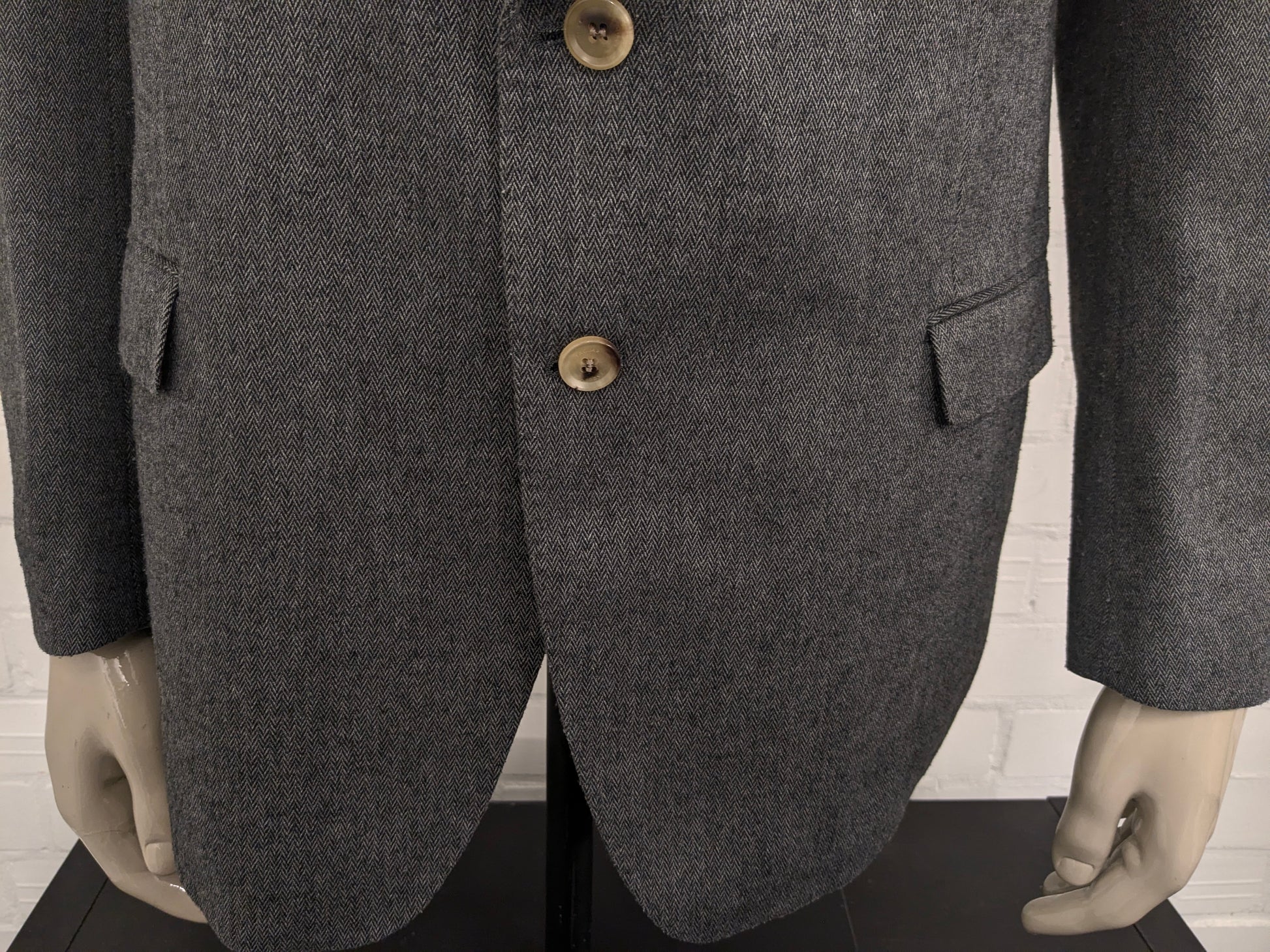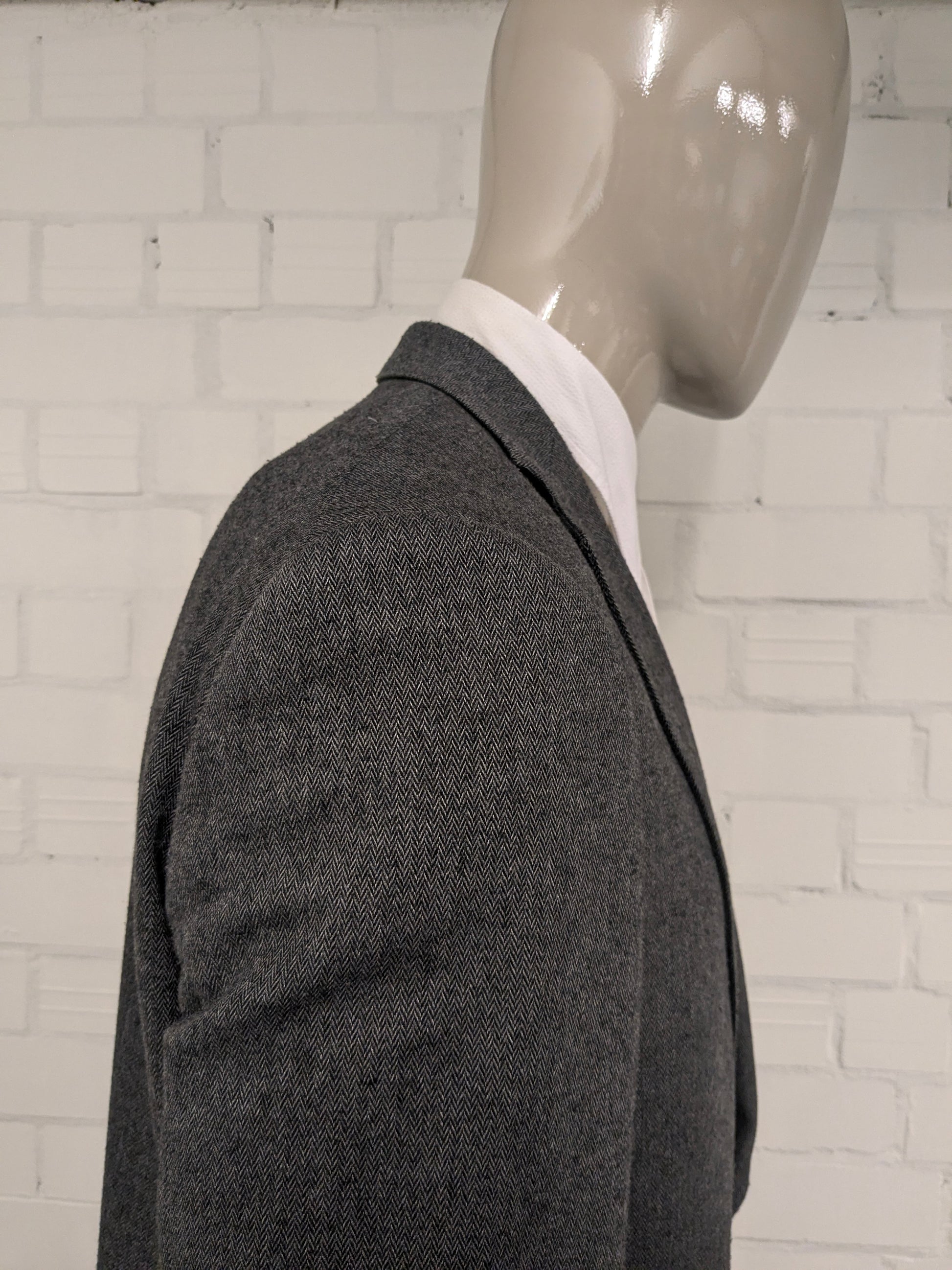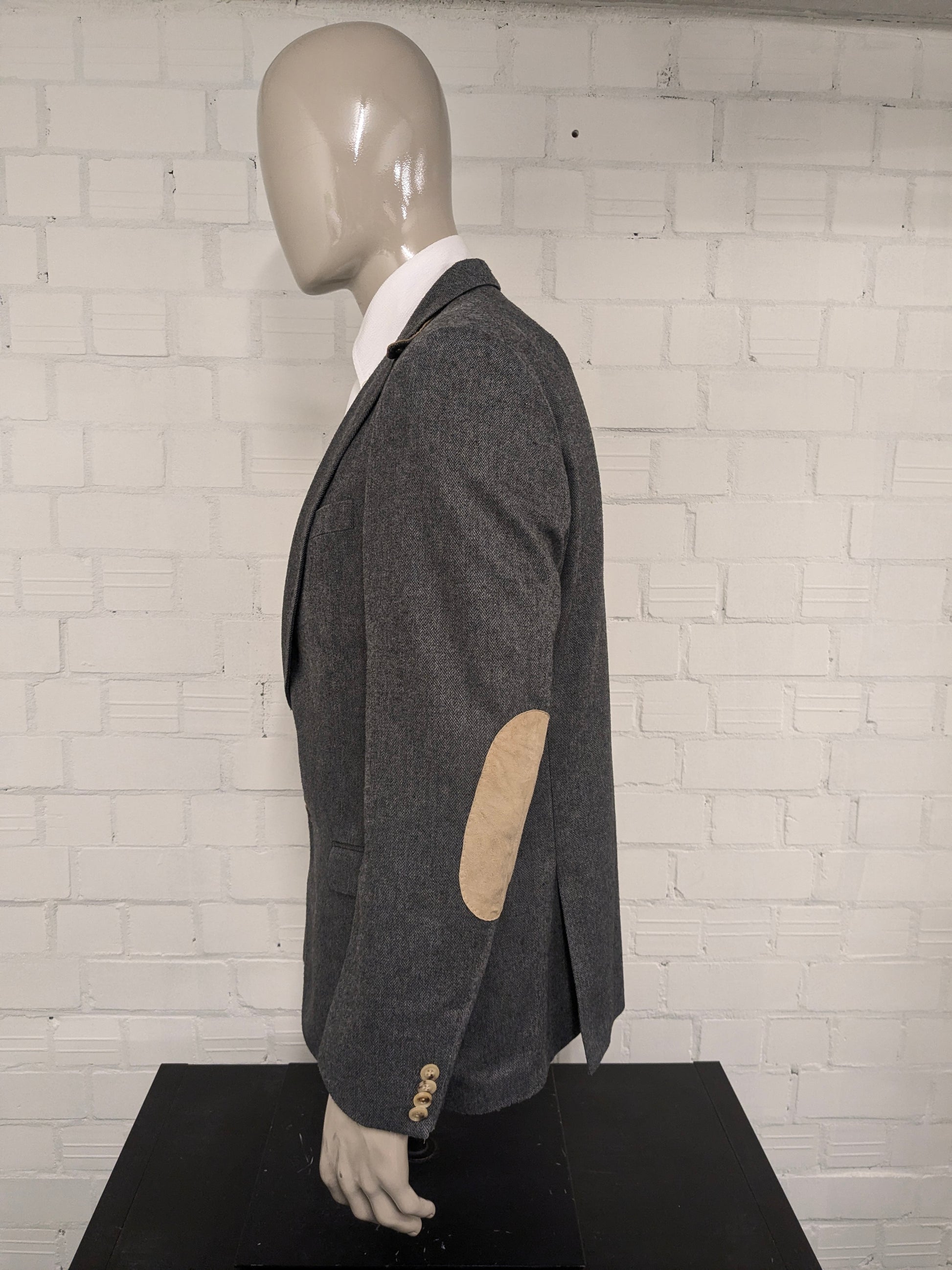 Jaguar Wollen colbert met suède elleboogstukken. Zwart Grijs visgraat motief. Maat 56 / XL.