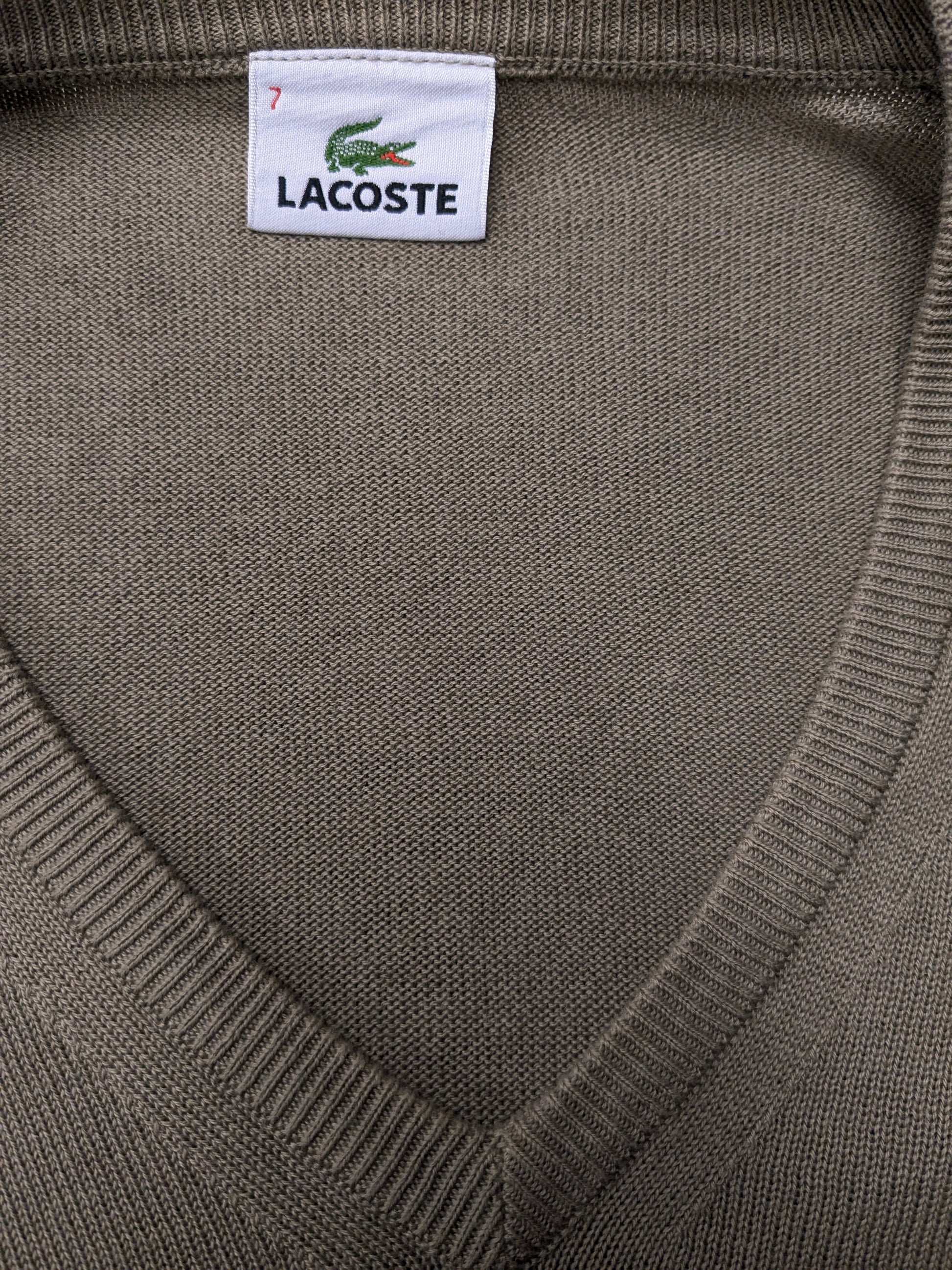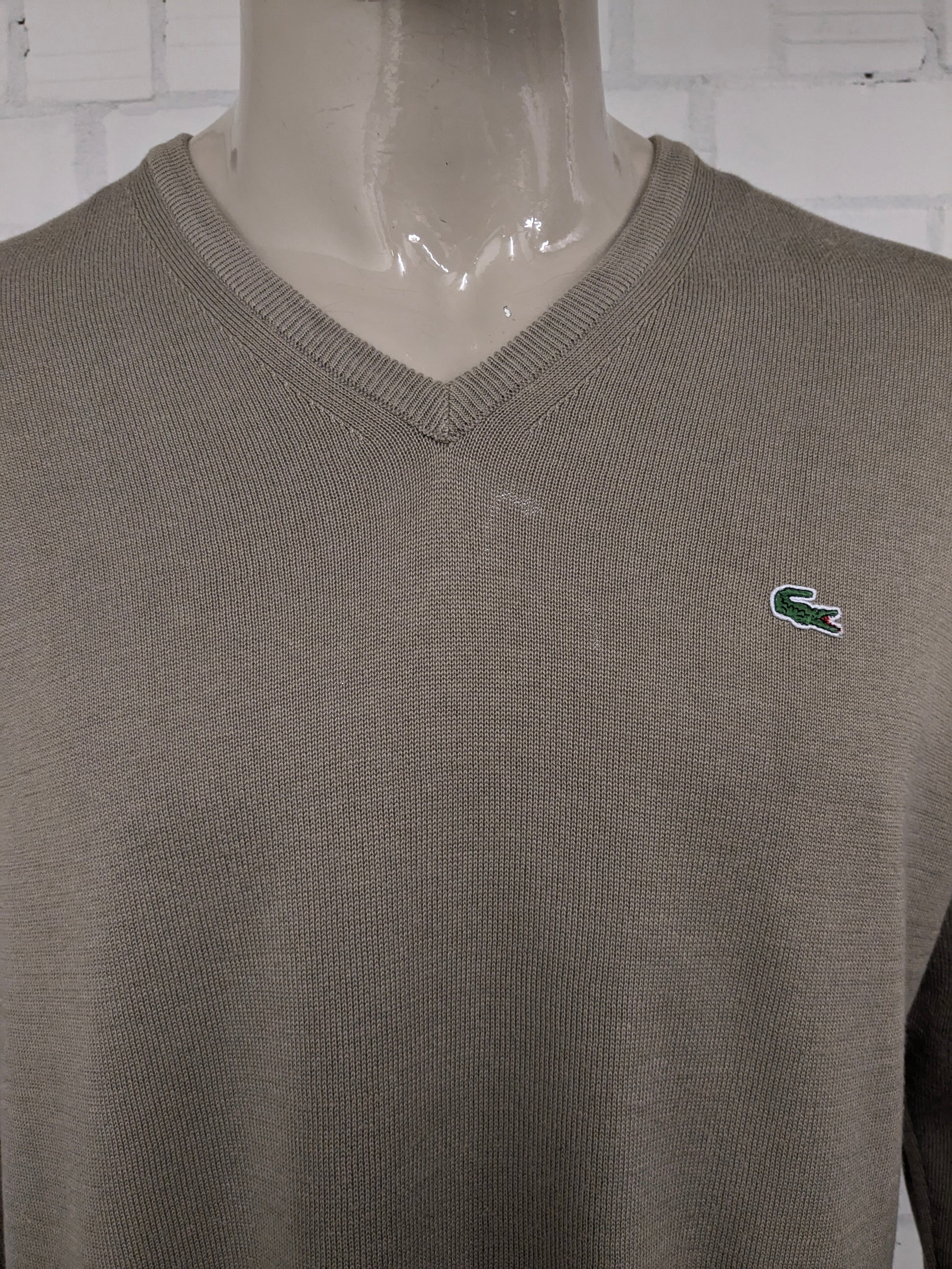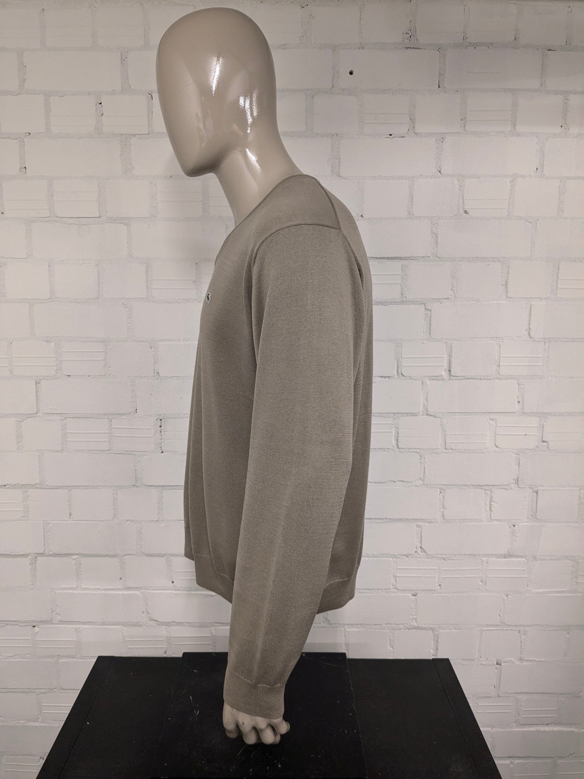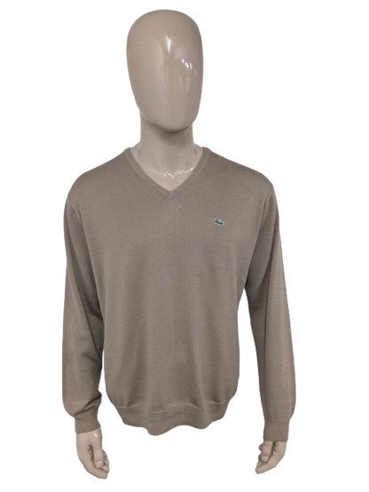 Lacoste casual trui met V-hals. Licht Bruin gekleurd. Maat 2XL / XXL.
