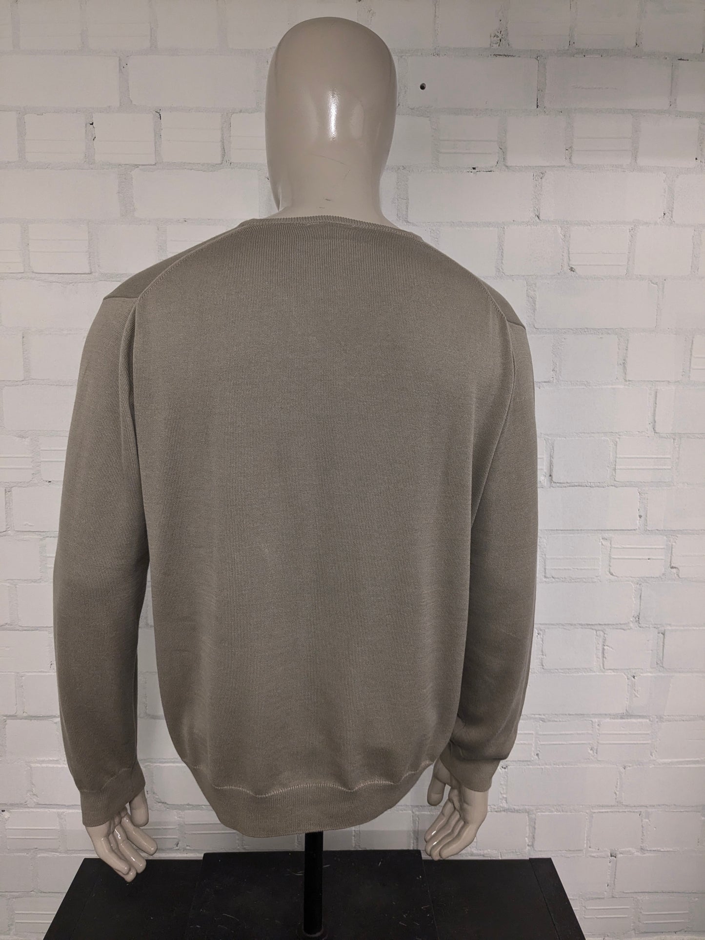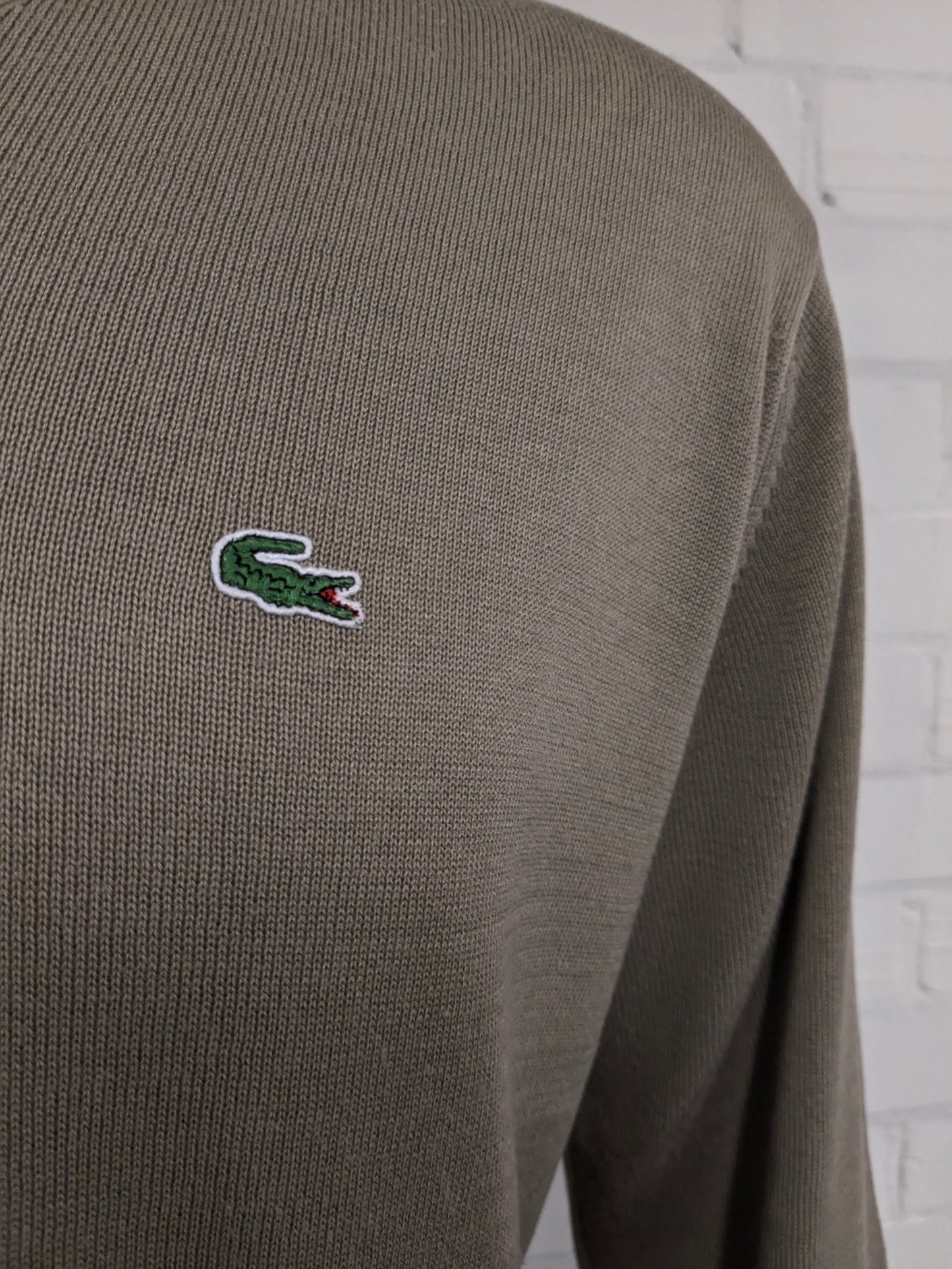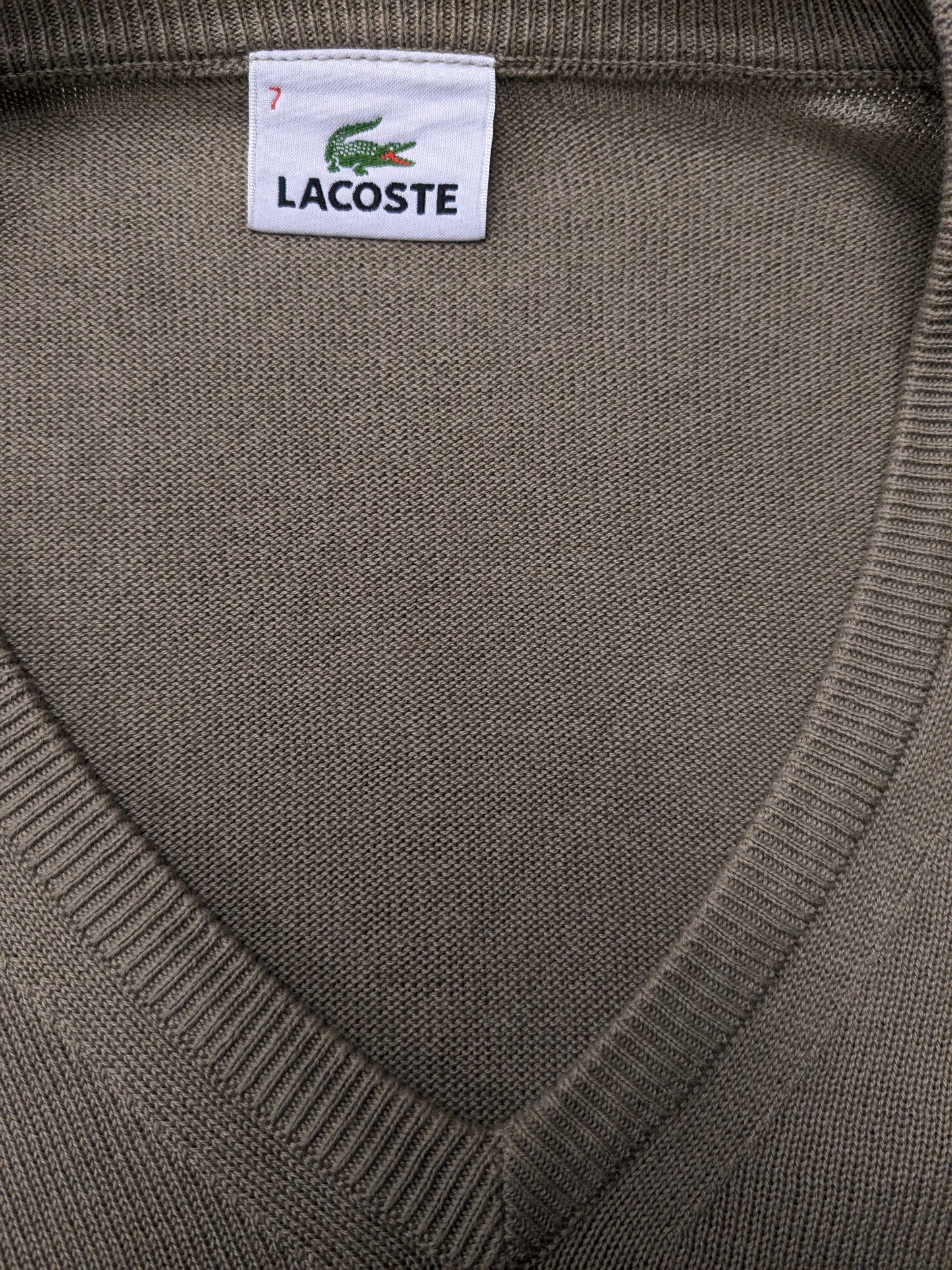 Lacoste casual trui met V-hals. Licht Bruin gekleurd. Maat 2XL / XXL.