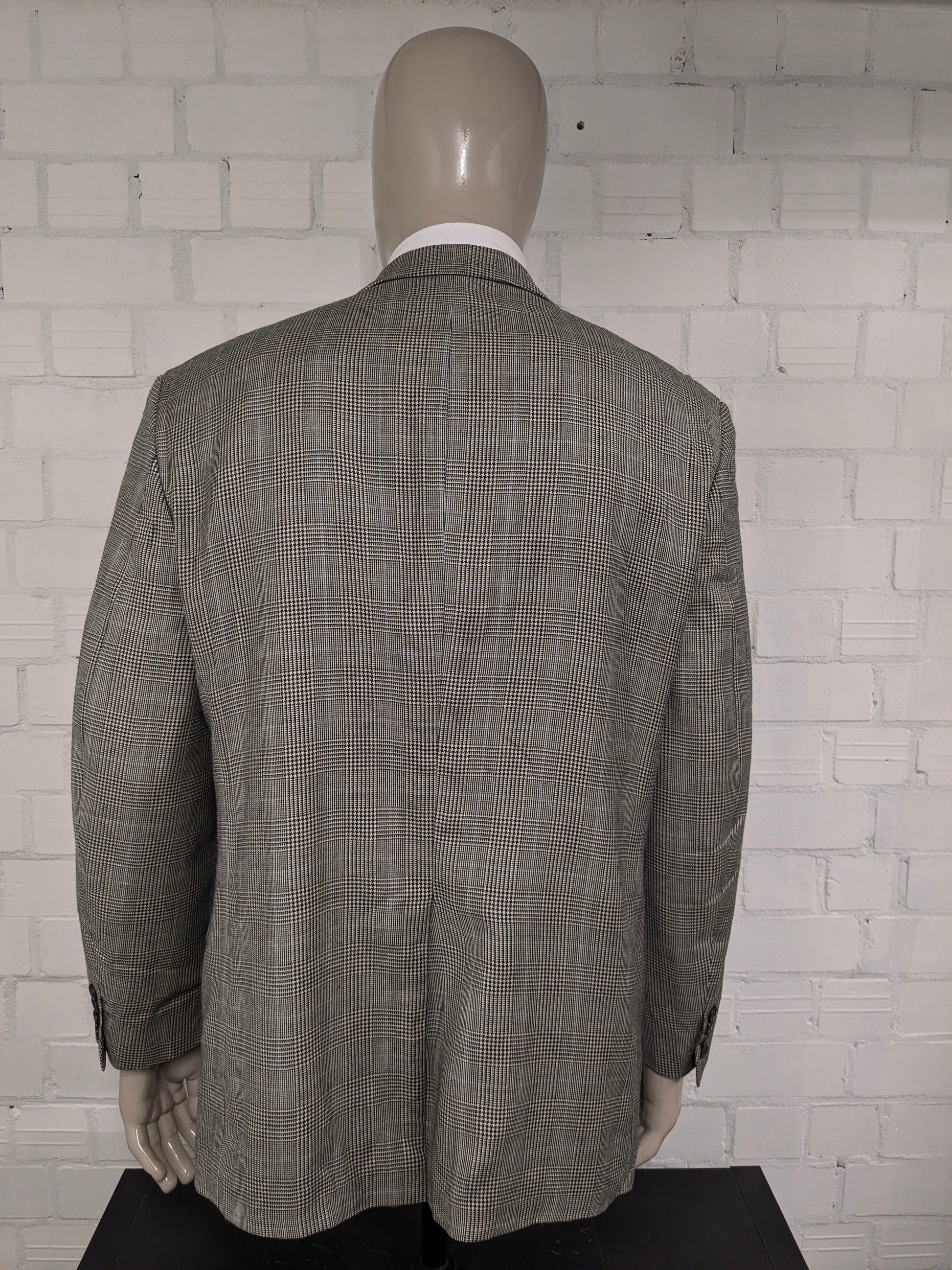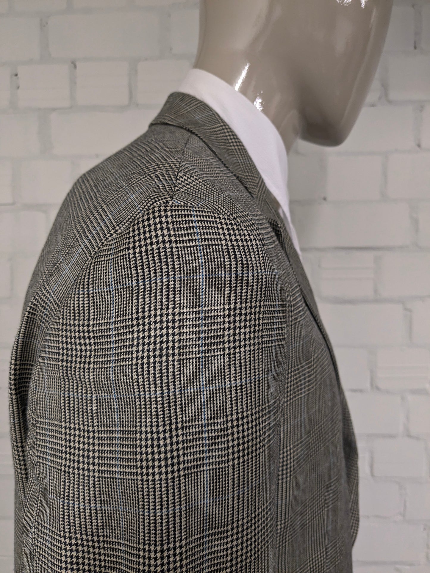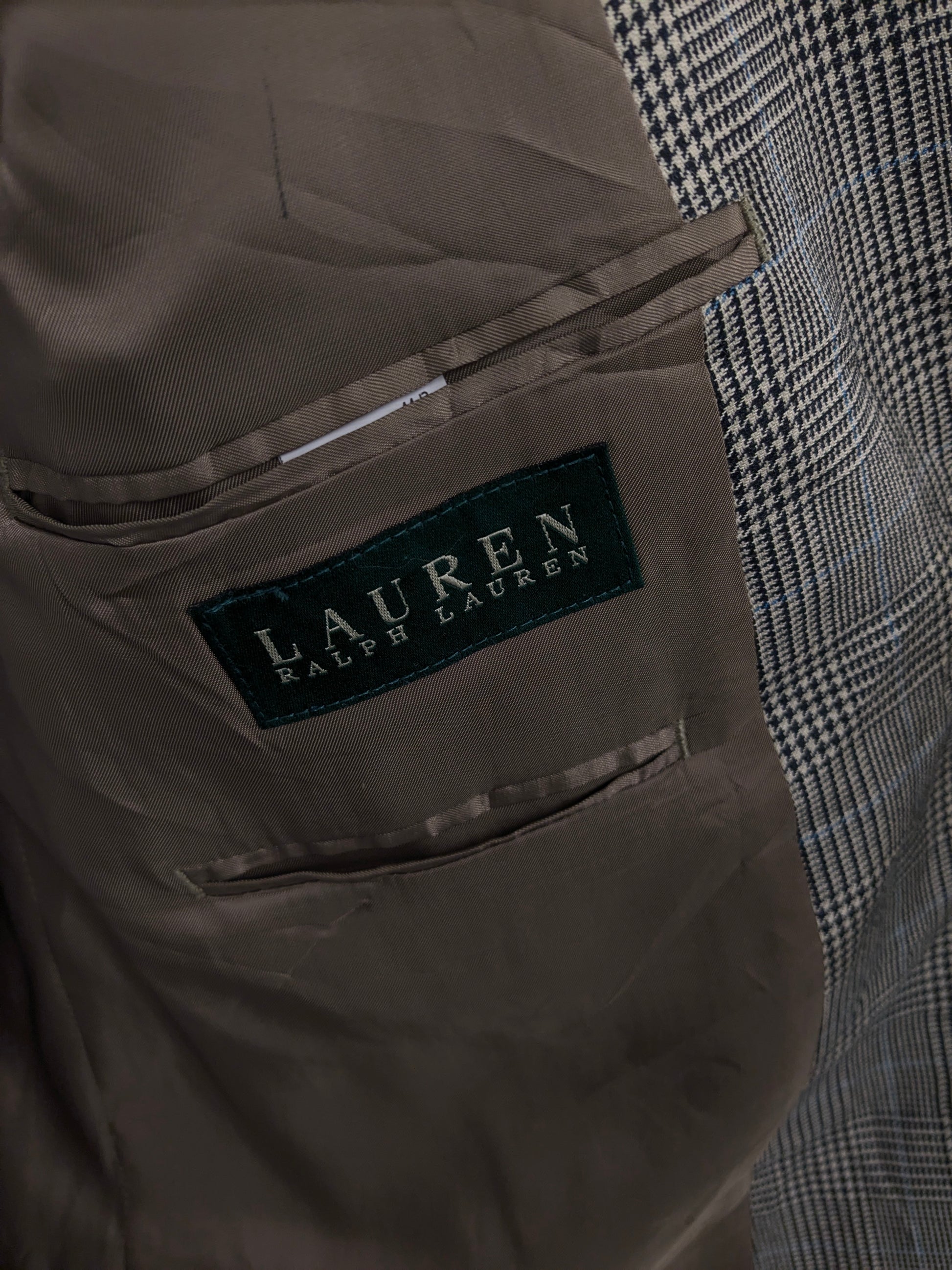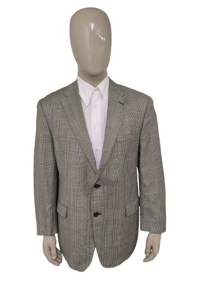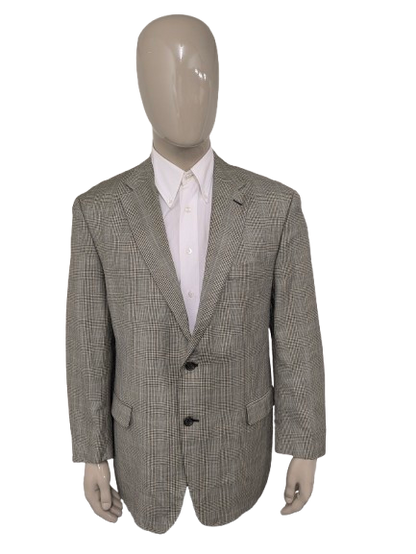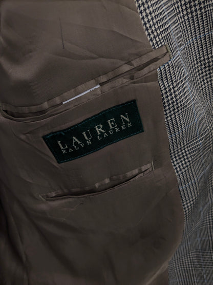 Lauren Ralph Lauren Wollen / zijden colbert. Beige Zwart Blauw geruit. Maat 54 / L.