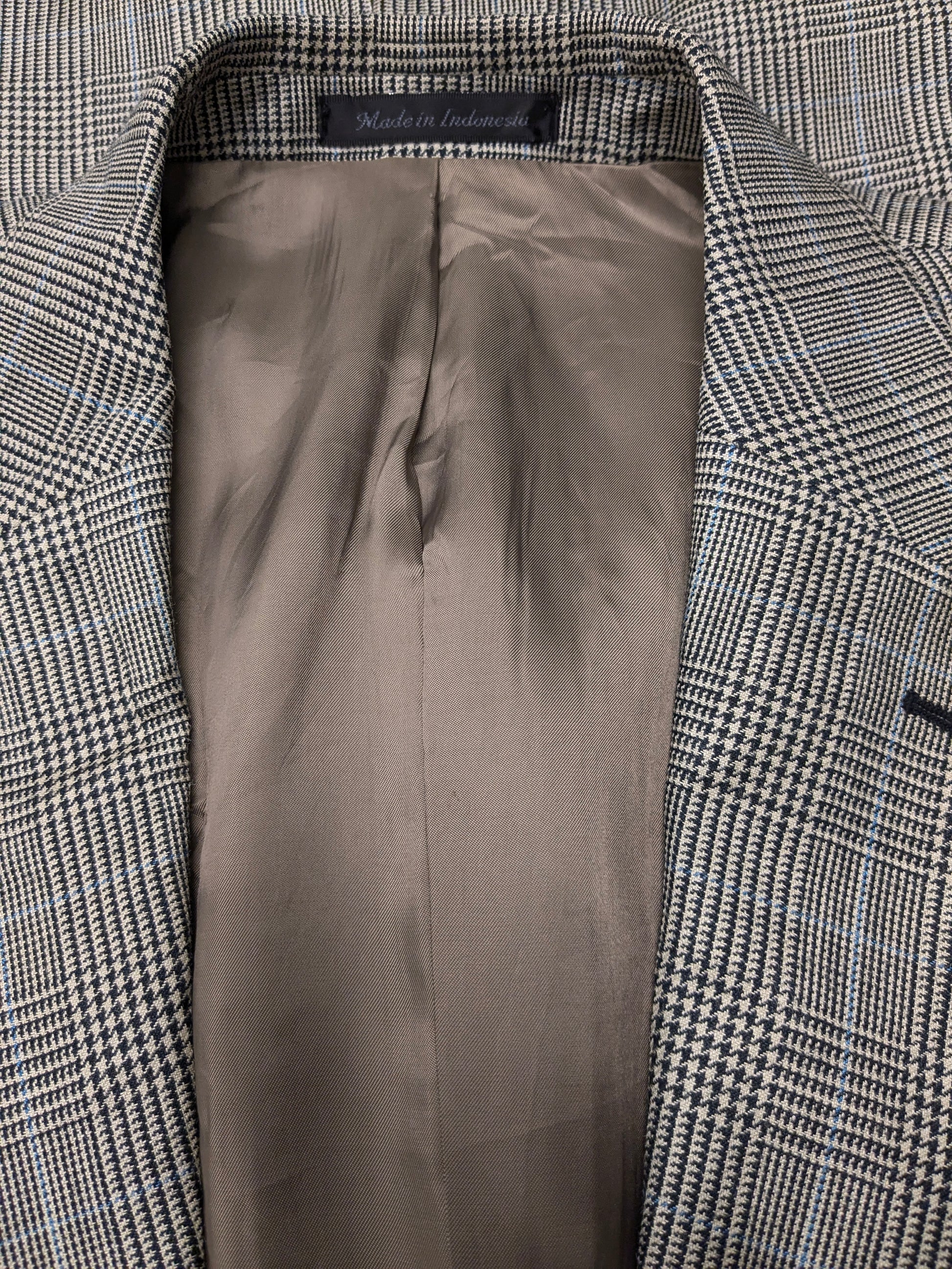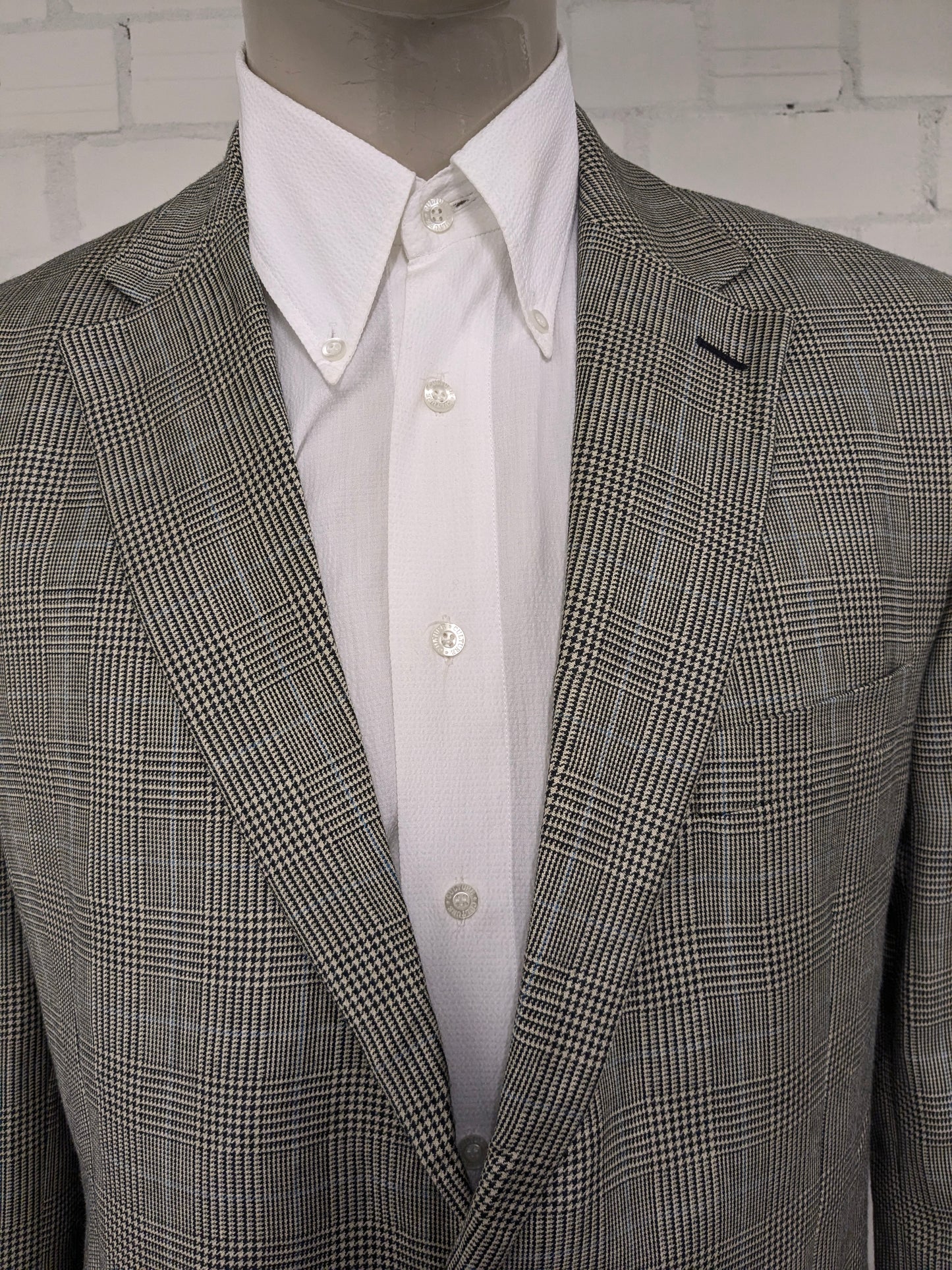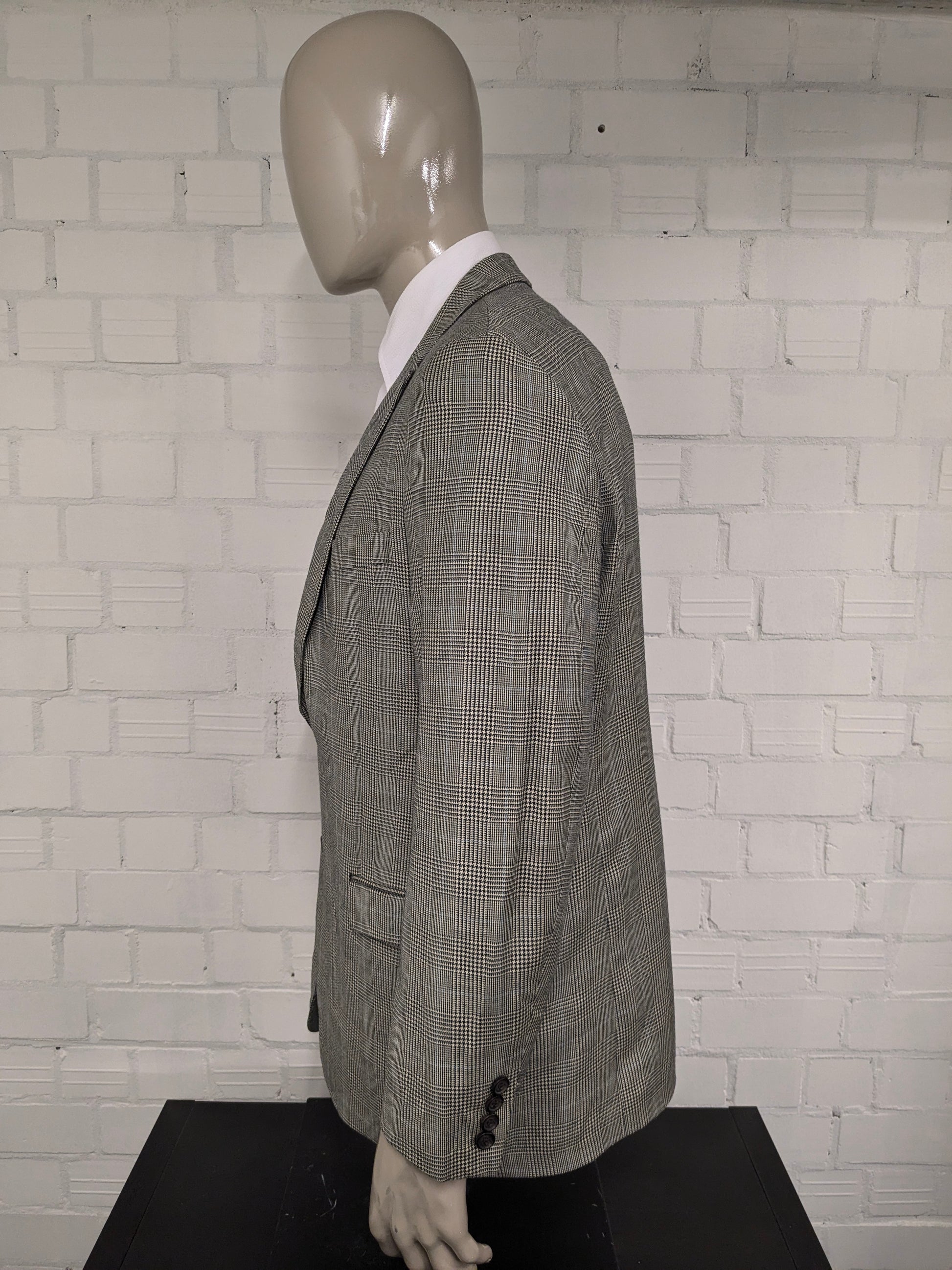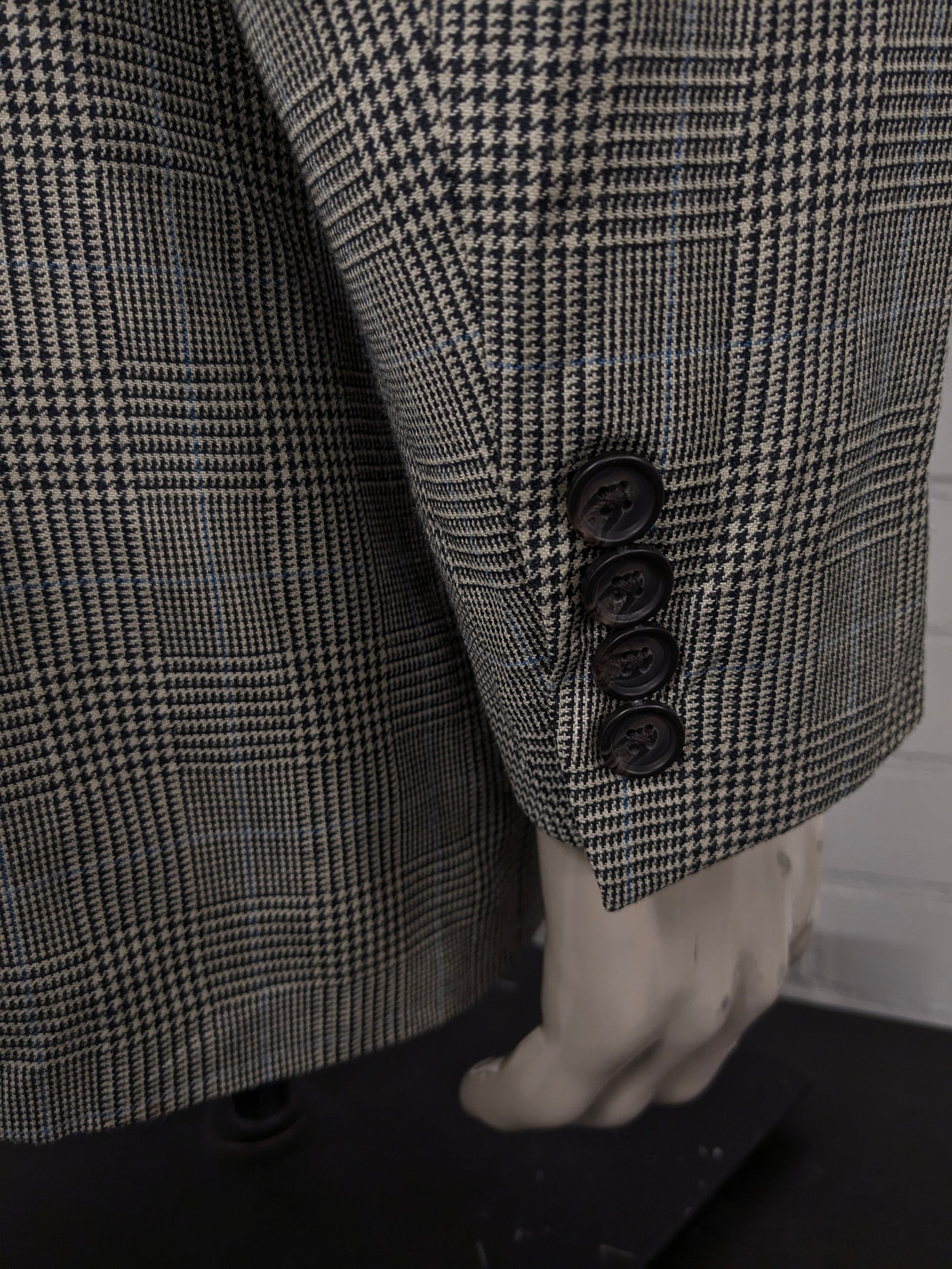 Lauren Ralph Lauren Wollen / zijden colbert. Beige Zwart Blauw geruit. Maat 54 / L.