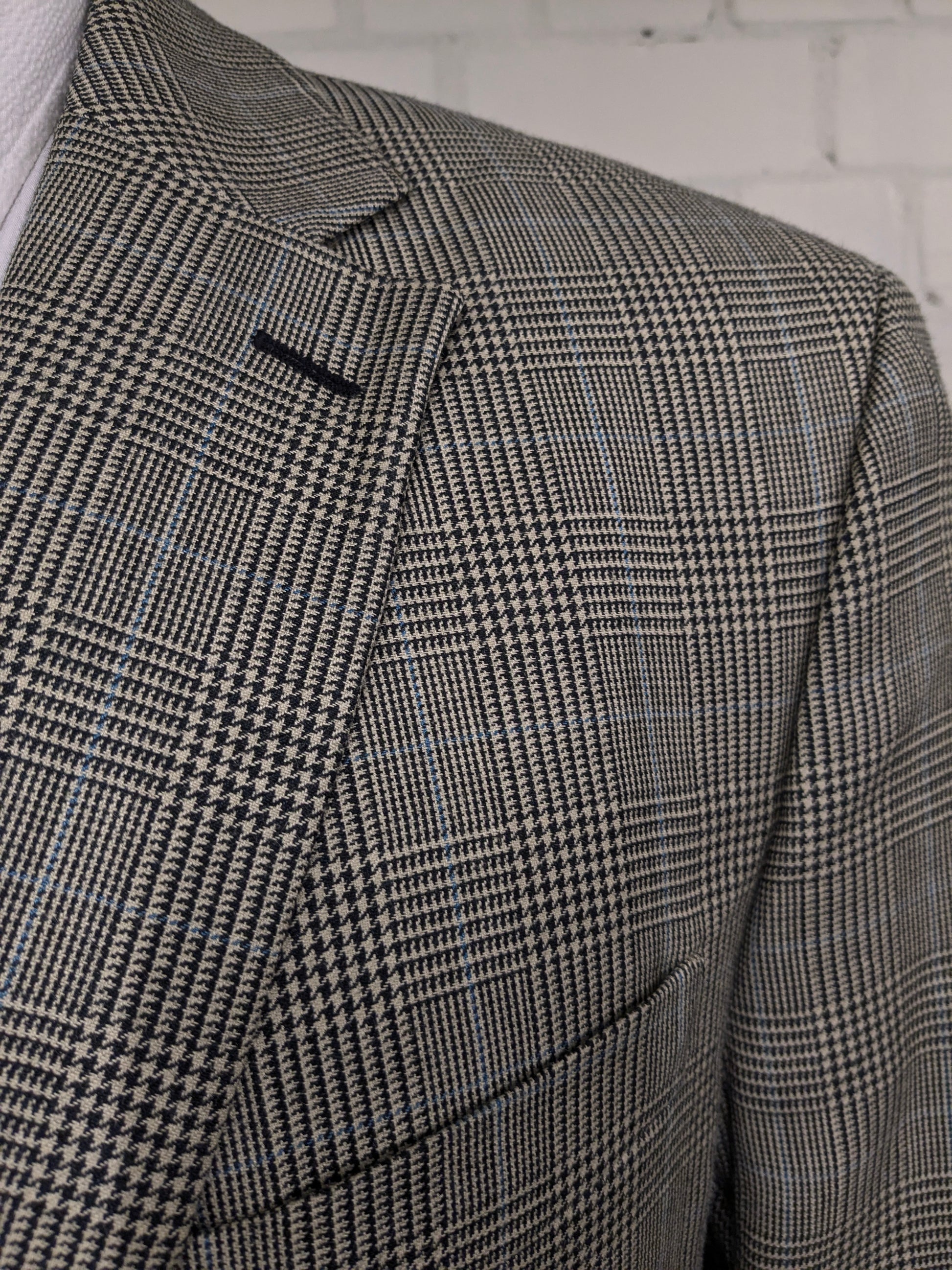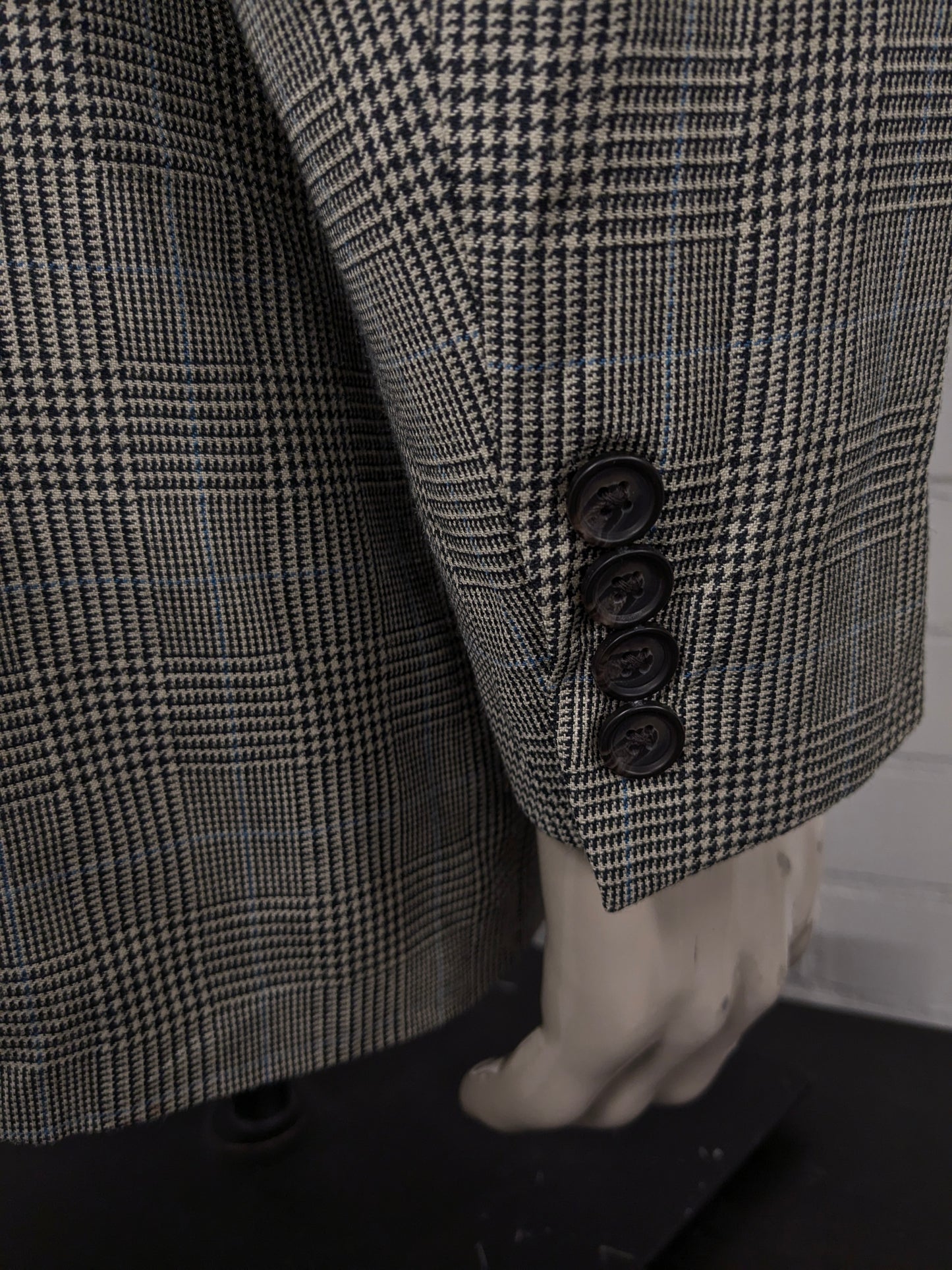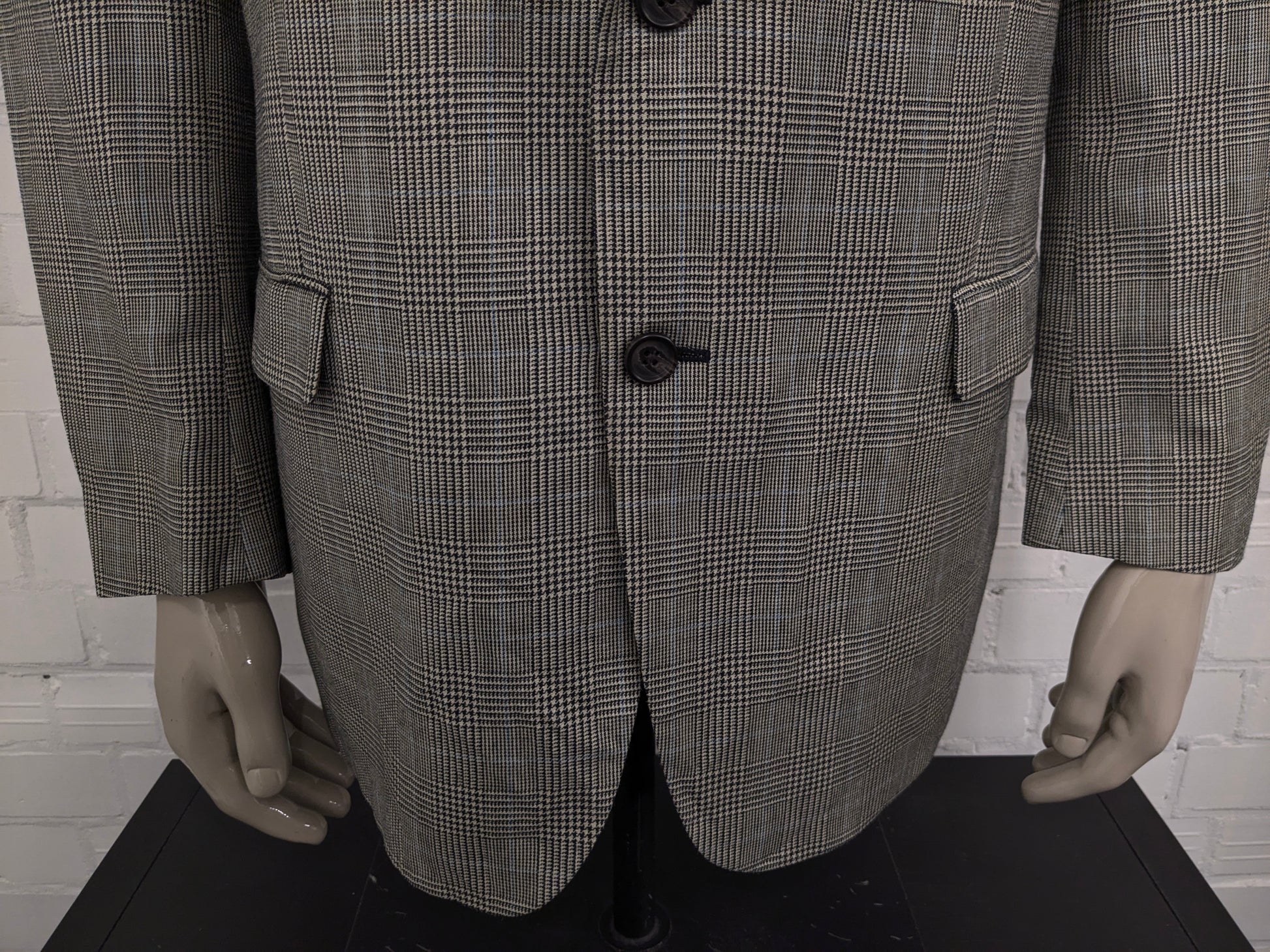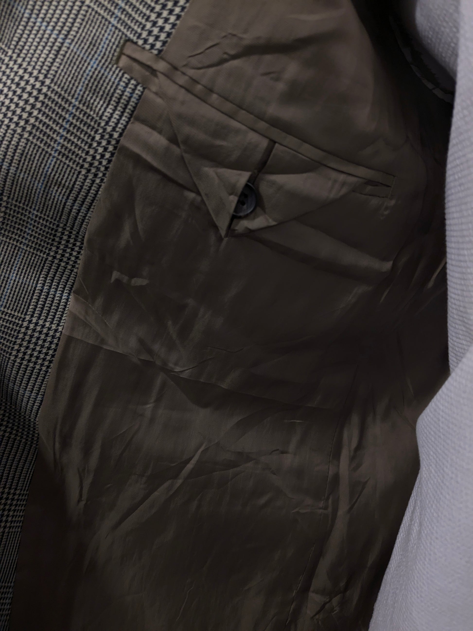 Lauren Ralph Lauren Wollen / zijden colbert. Beige Zwart Blauw geruit. Maat 54 / L.