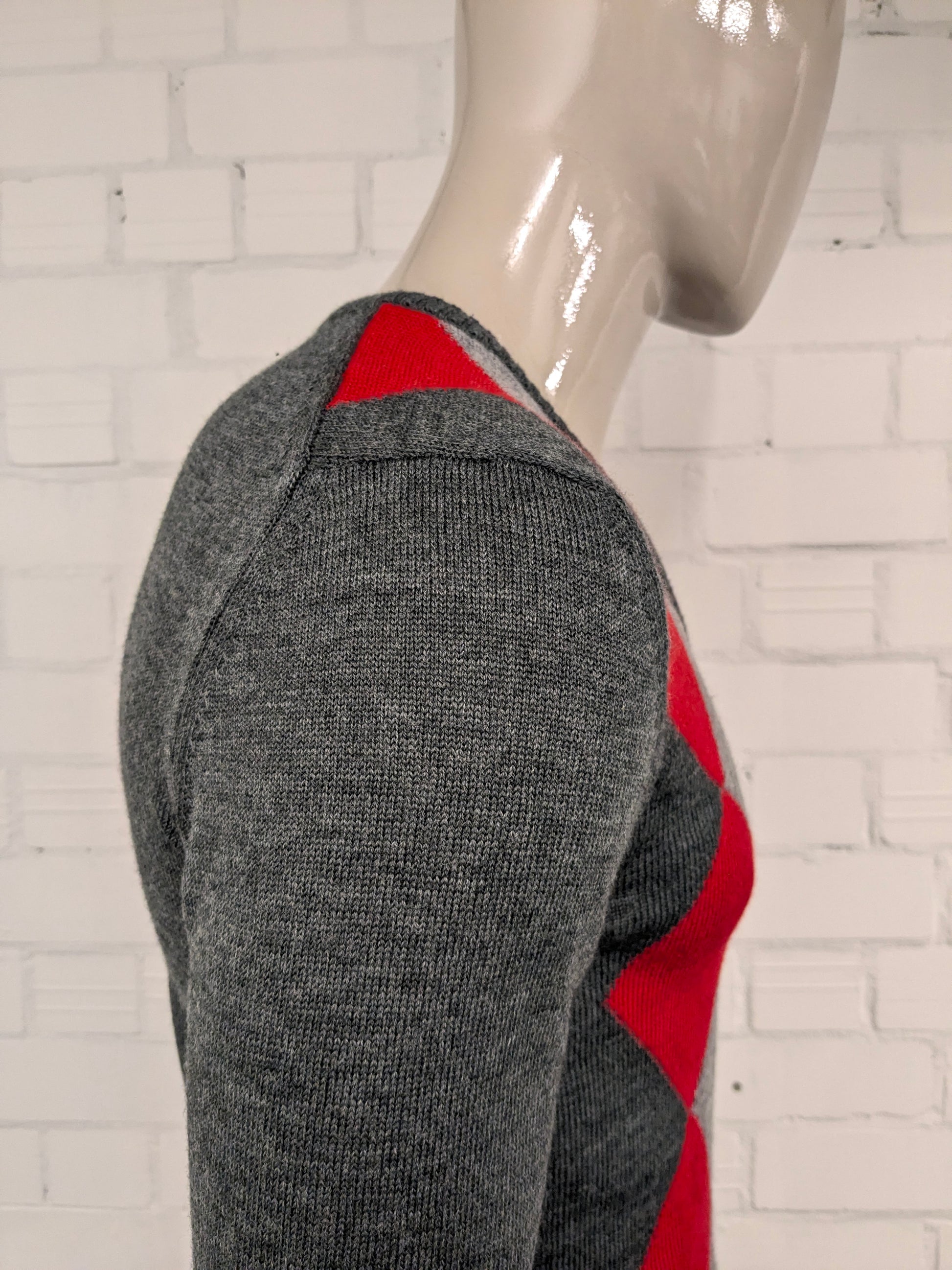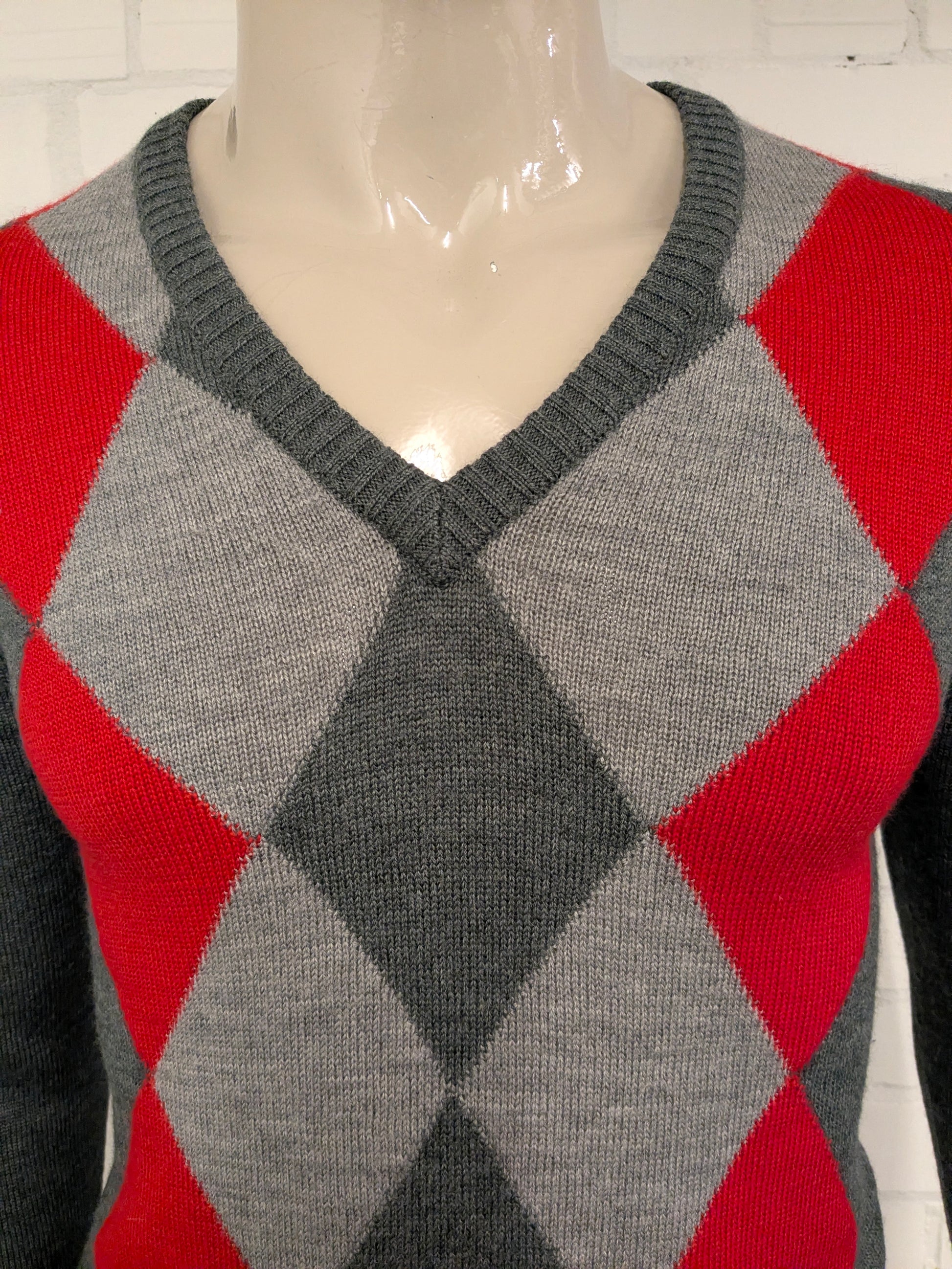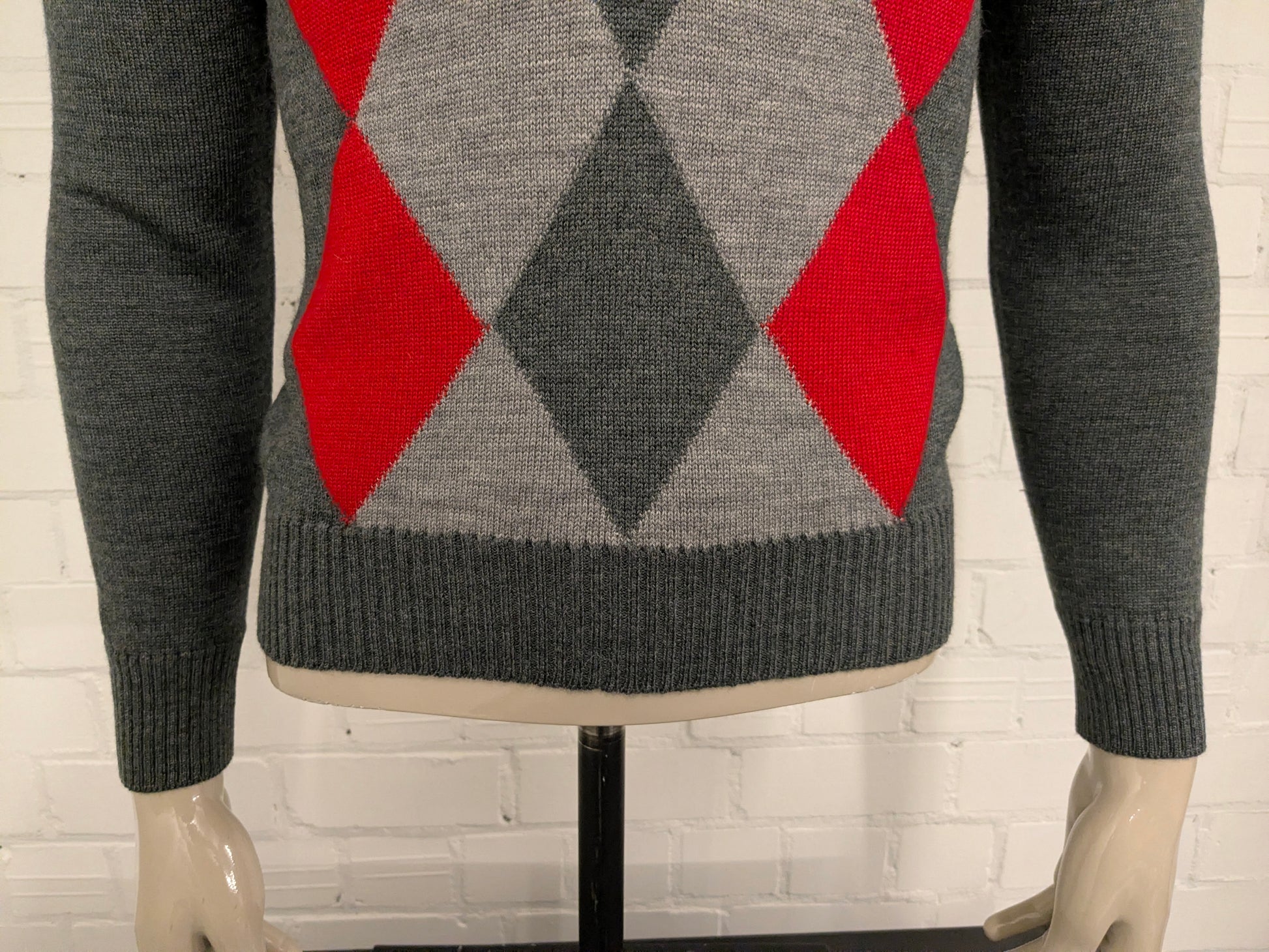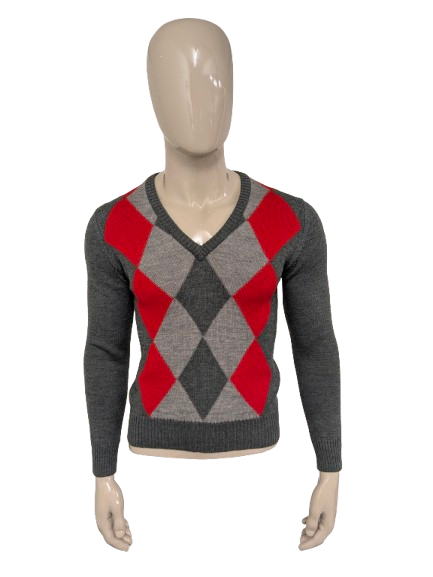 Mailcott trui met V-Hals. Grijs Rode ruiten. Maat S.
