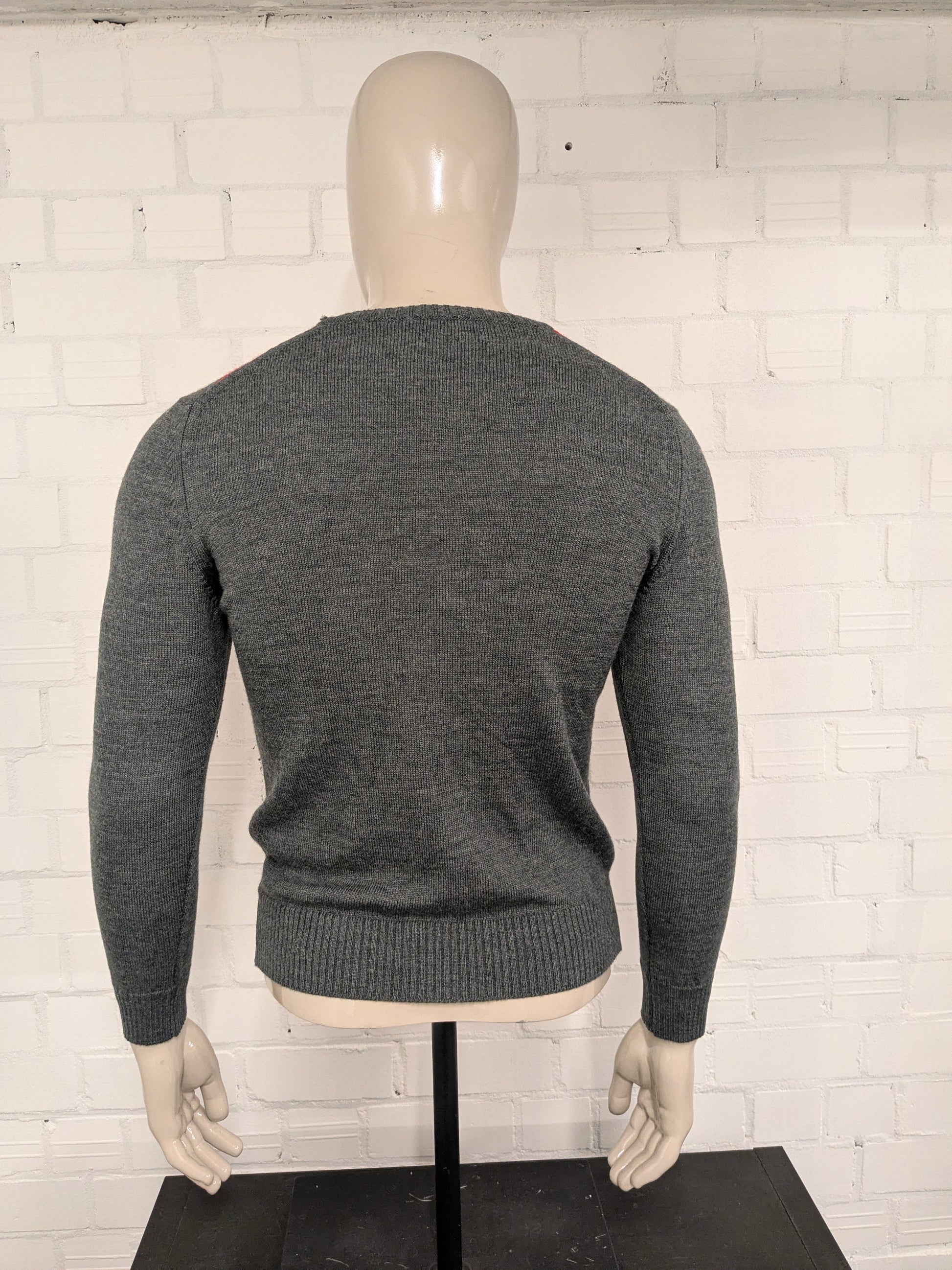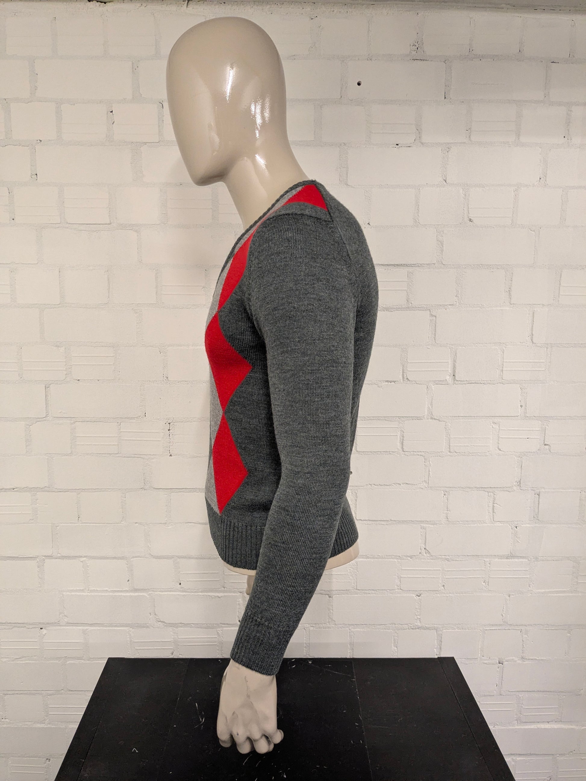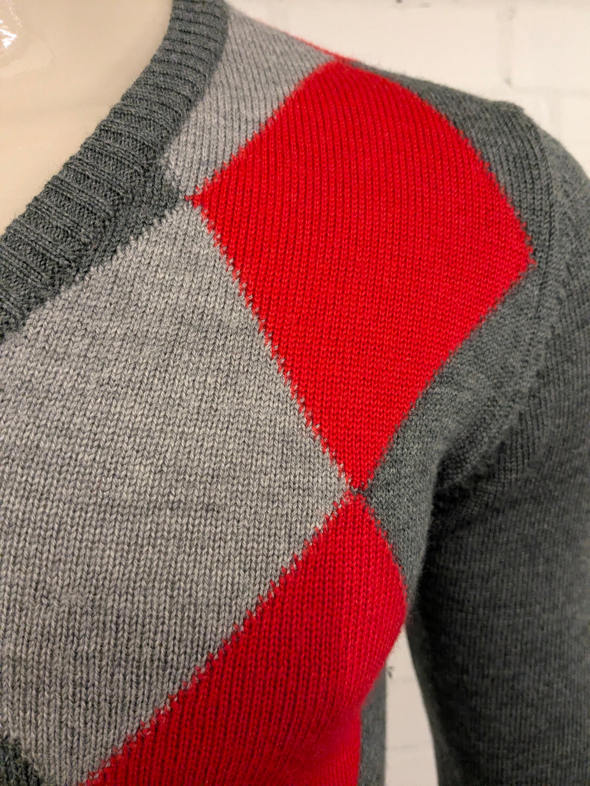 Mailcott trui met V-Hals. Grijs Rode ruiten. Maat S.
