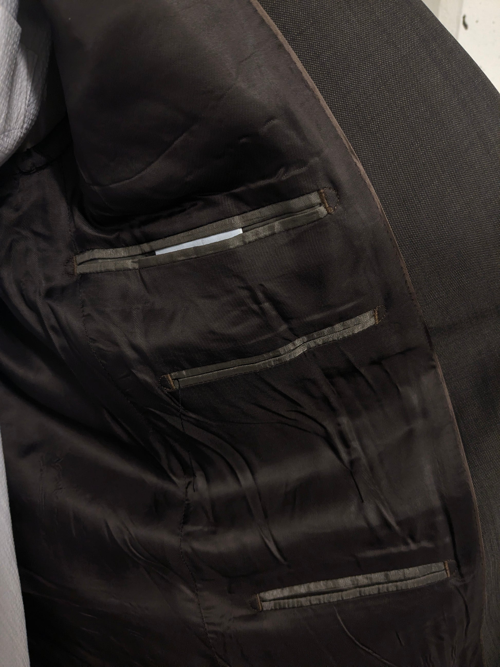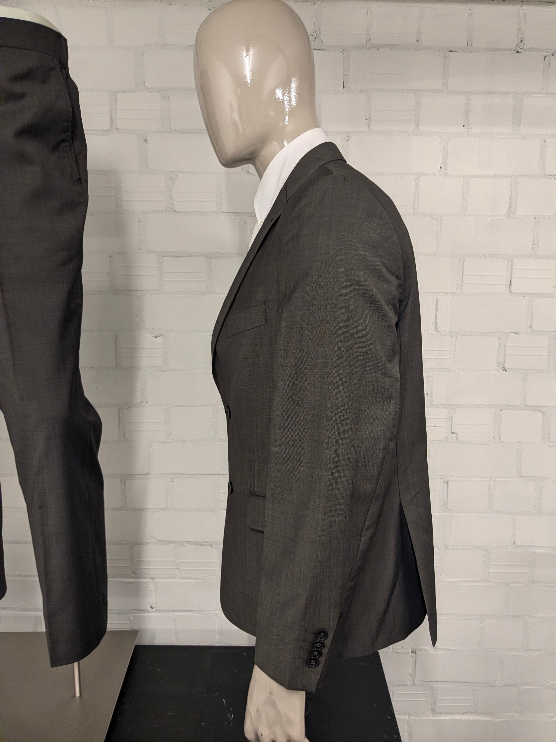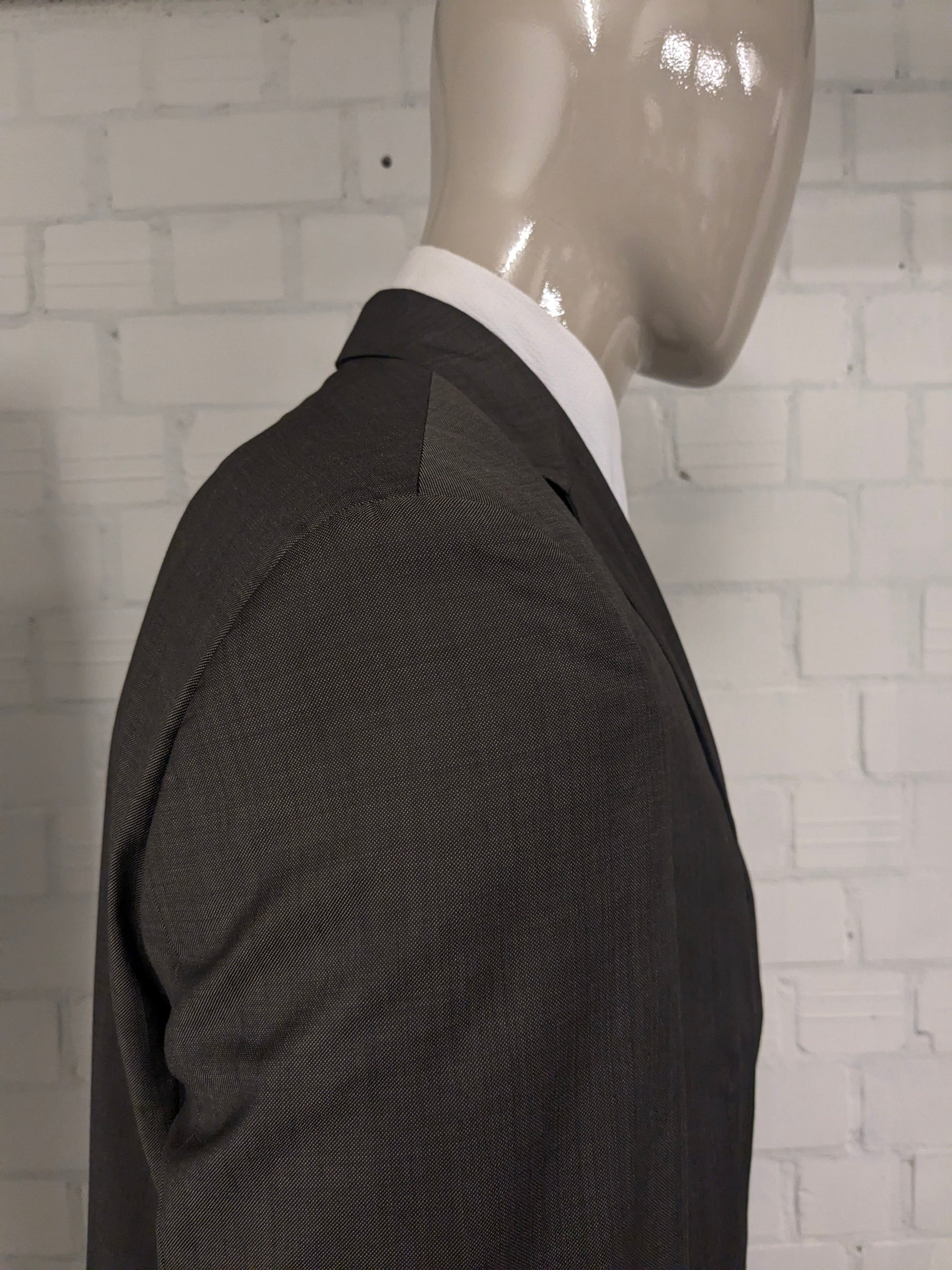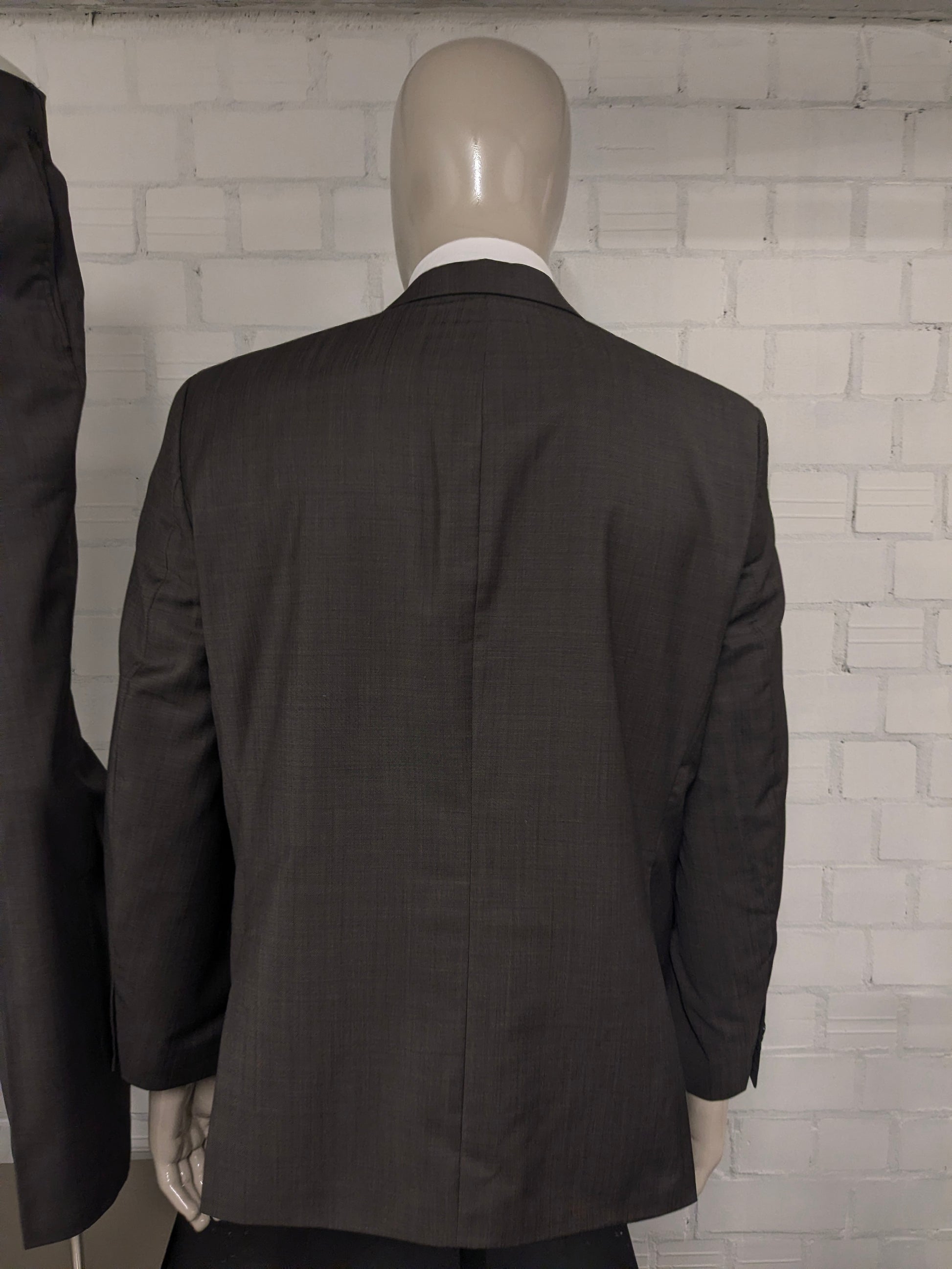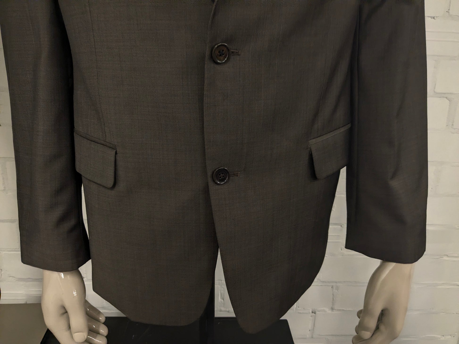 Merkloos Wollen kostuum. Bruin motief. Maat 26 (52 / L).