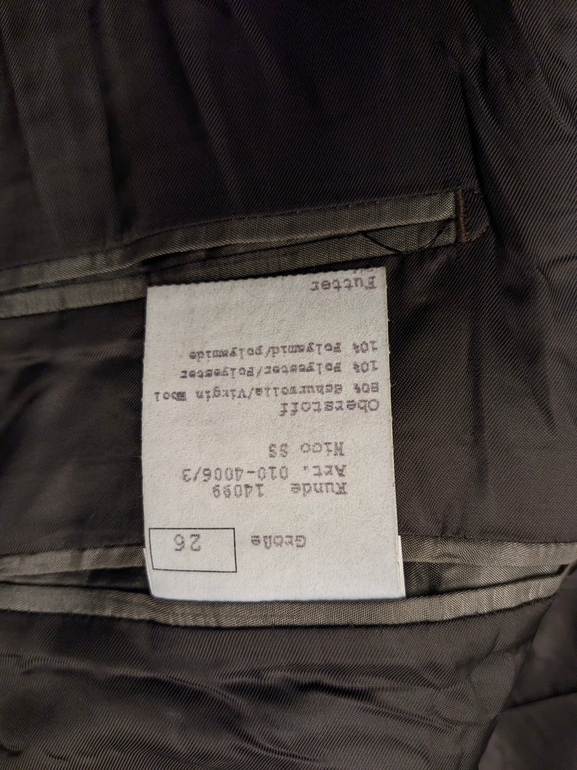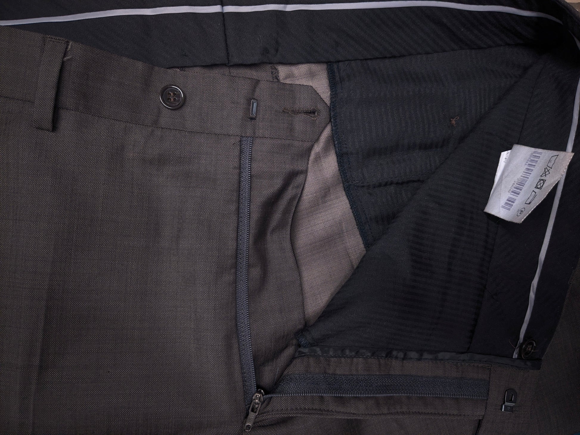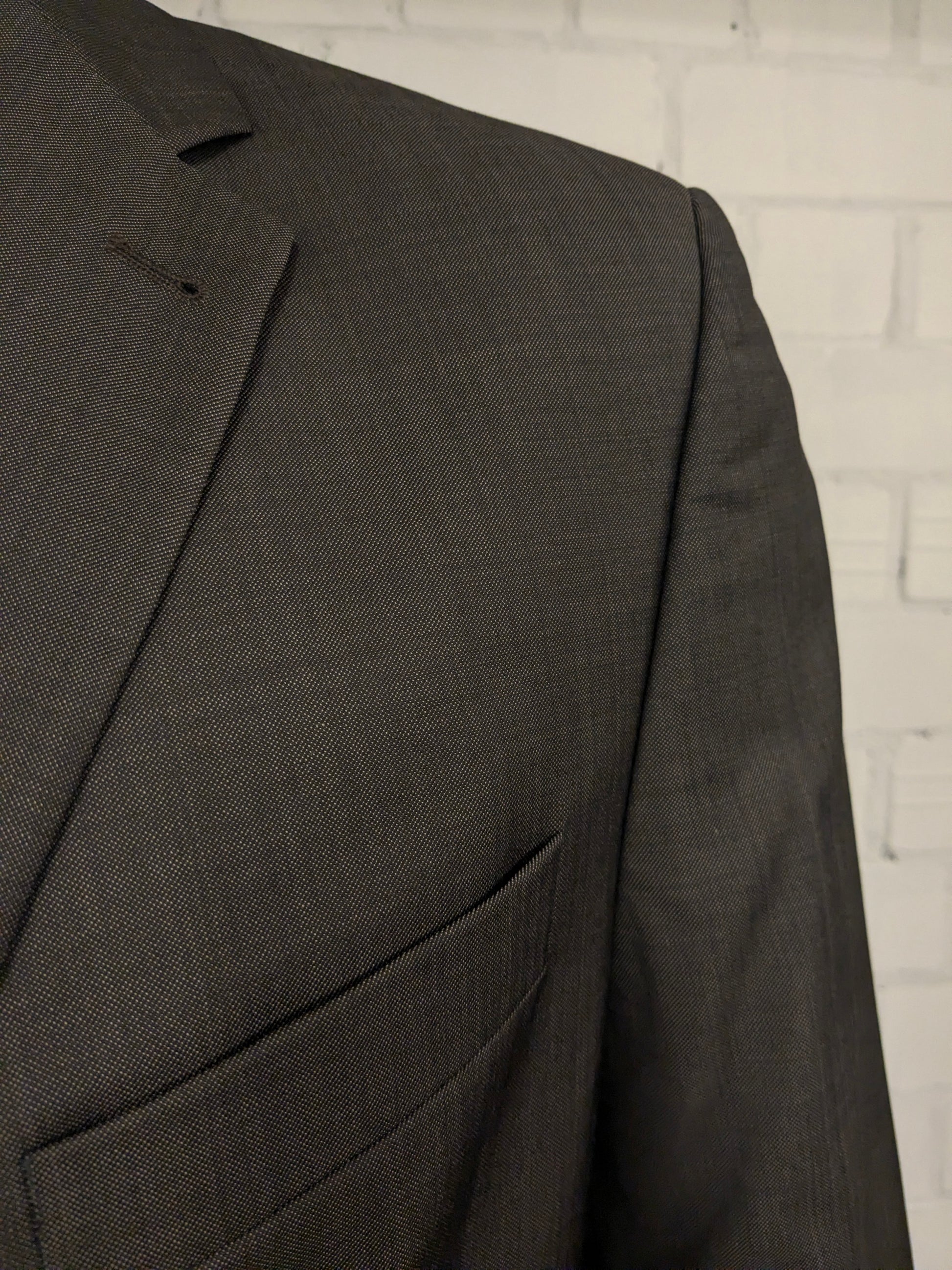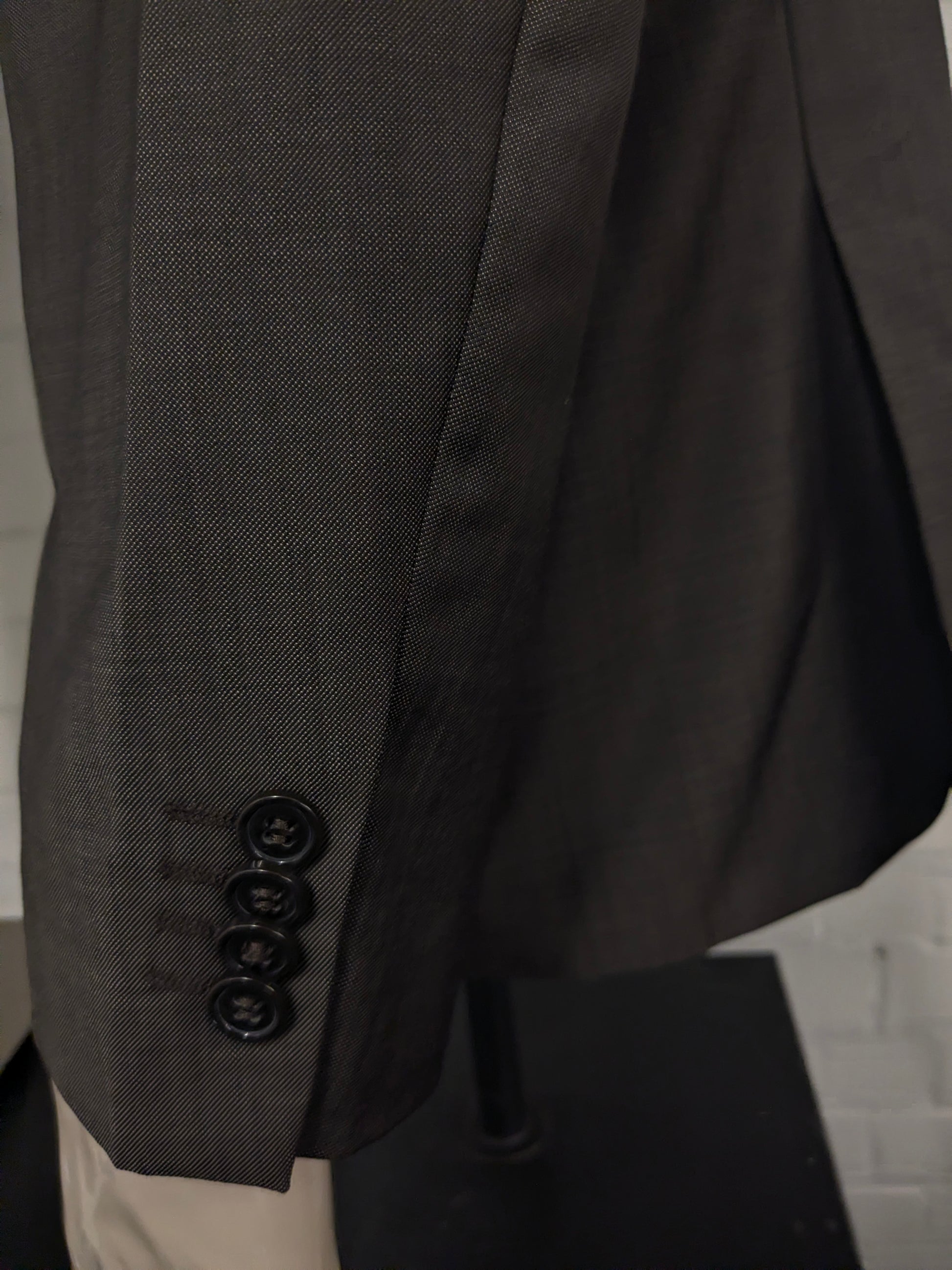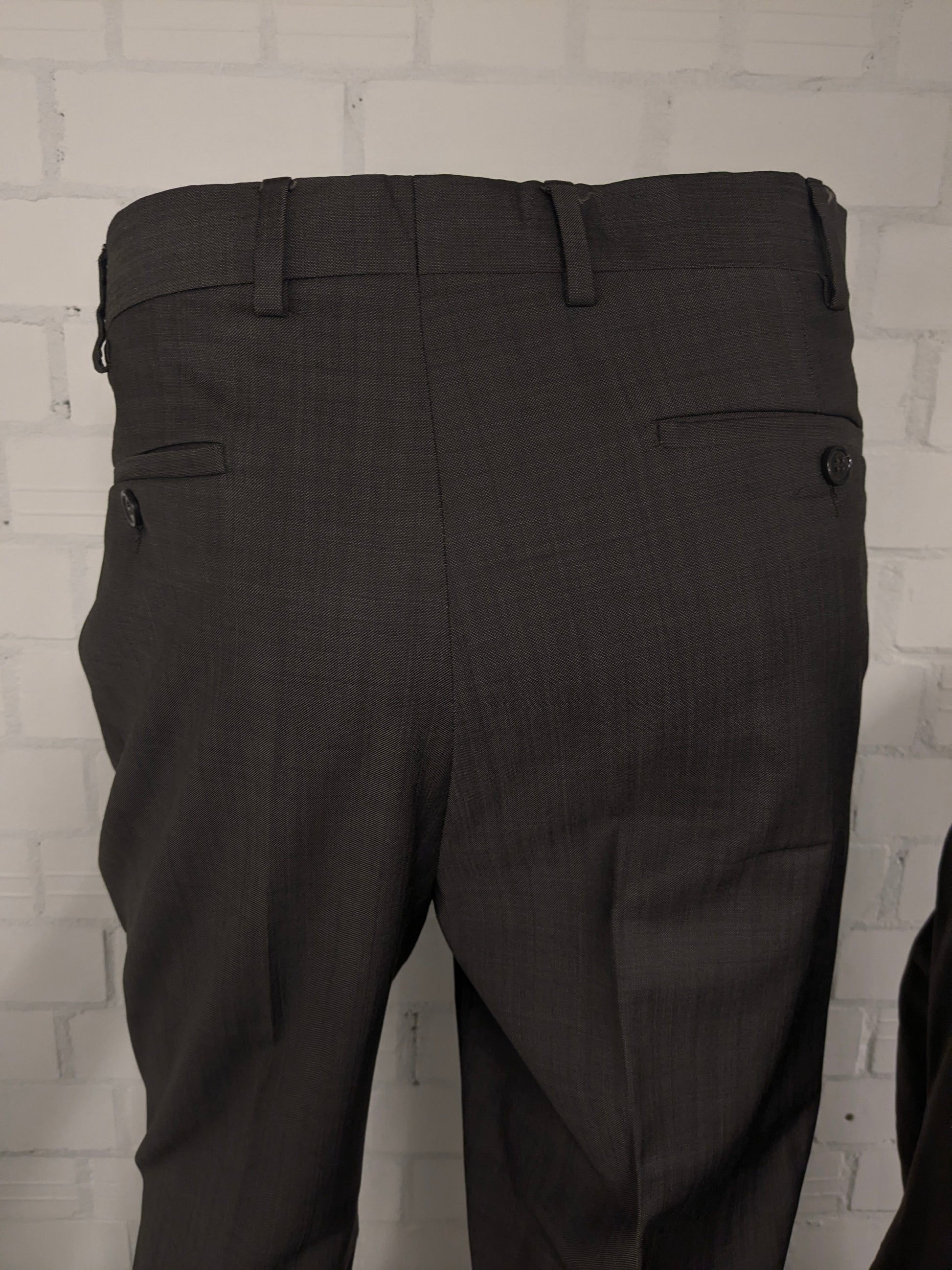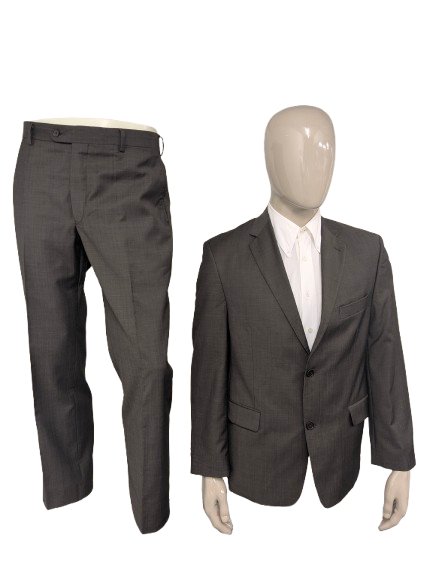 Merkloos Wollen kostuum. Bruin motief. Maat 26 (52 / L).
