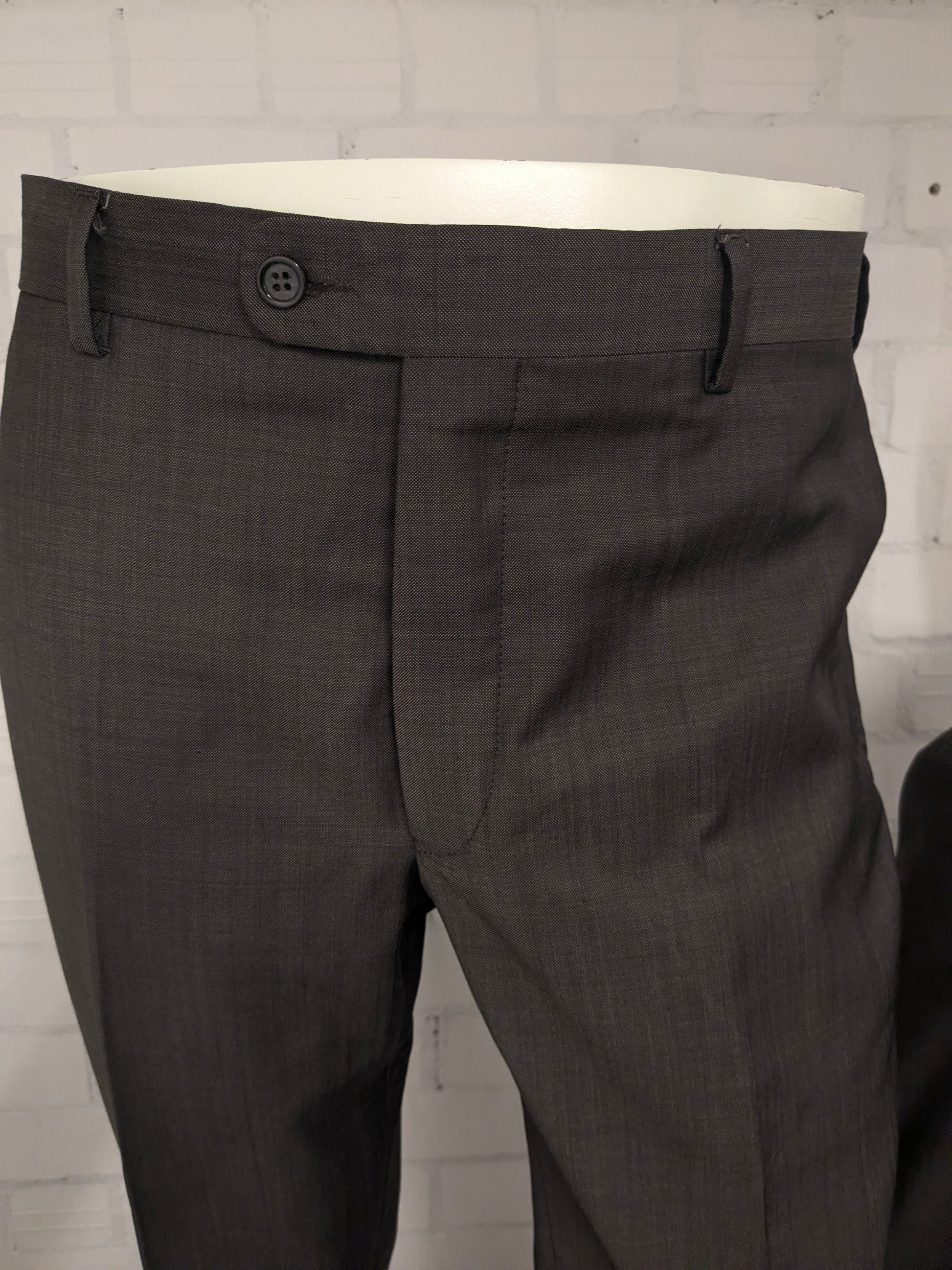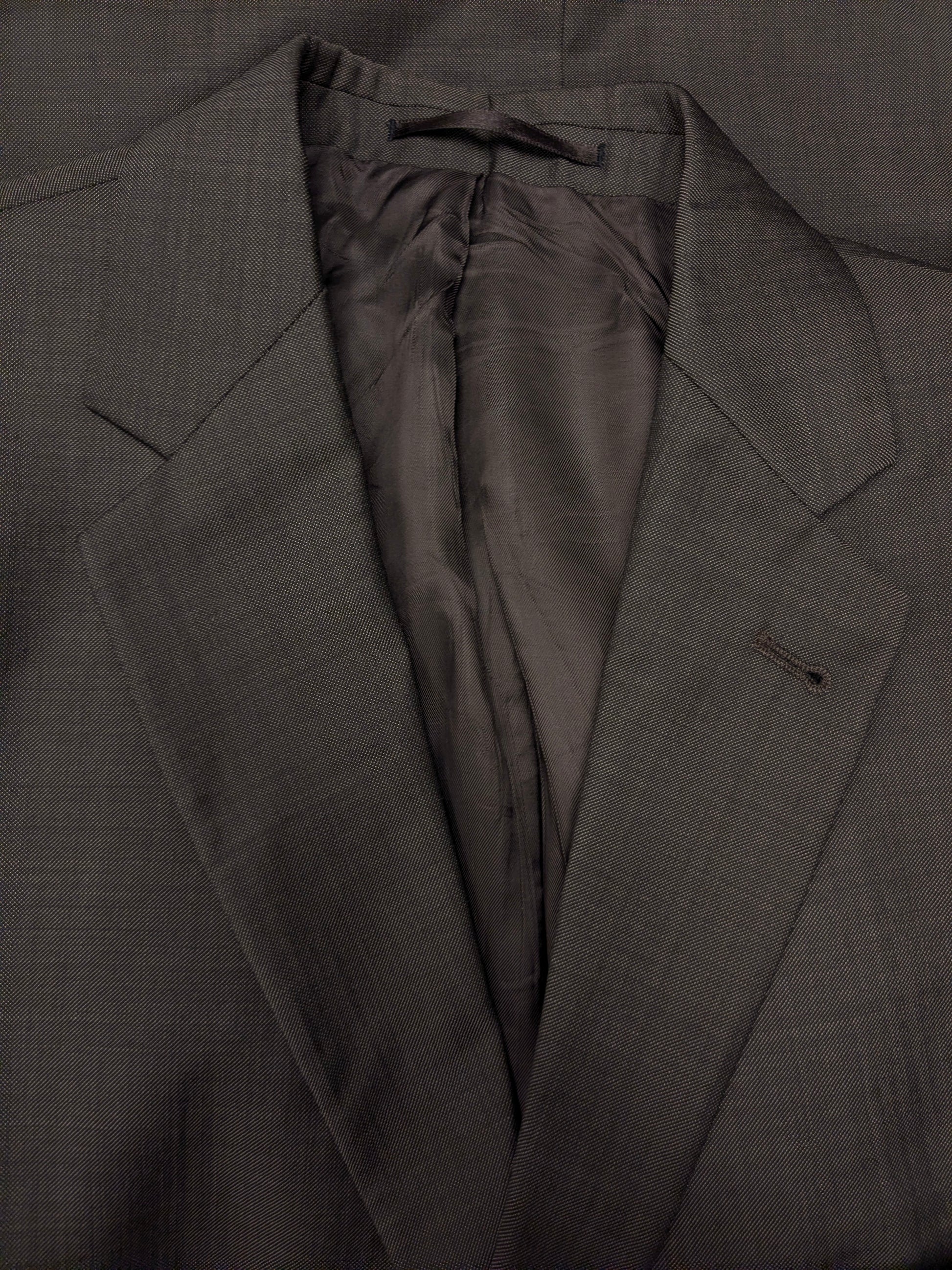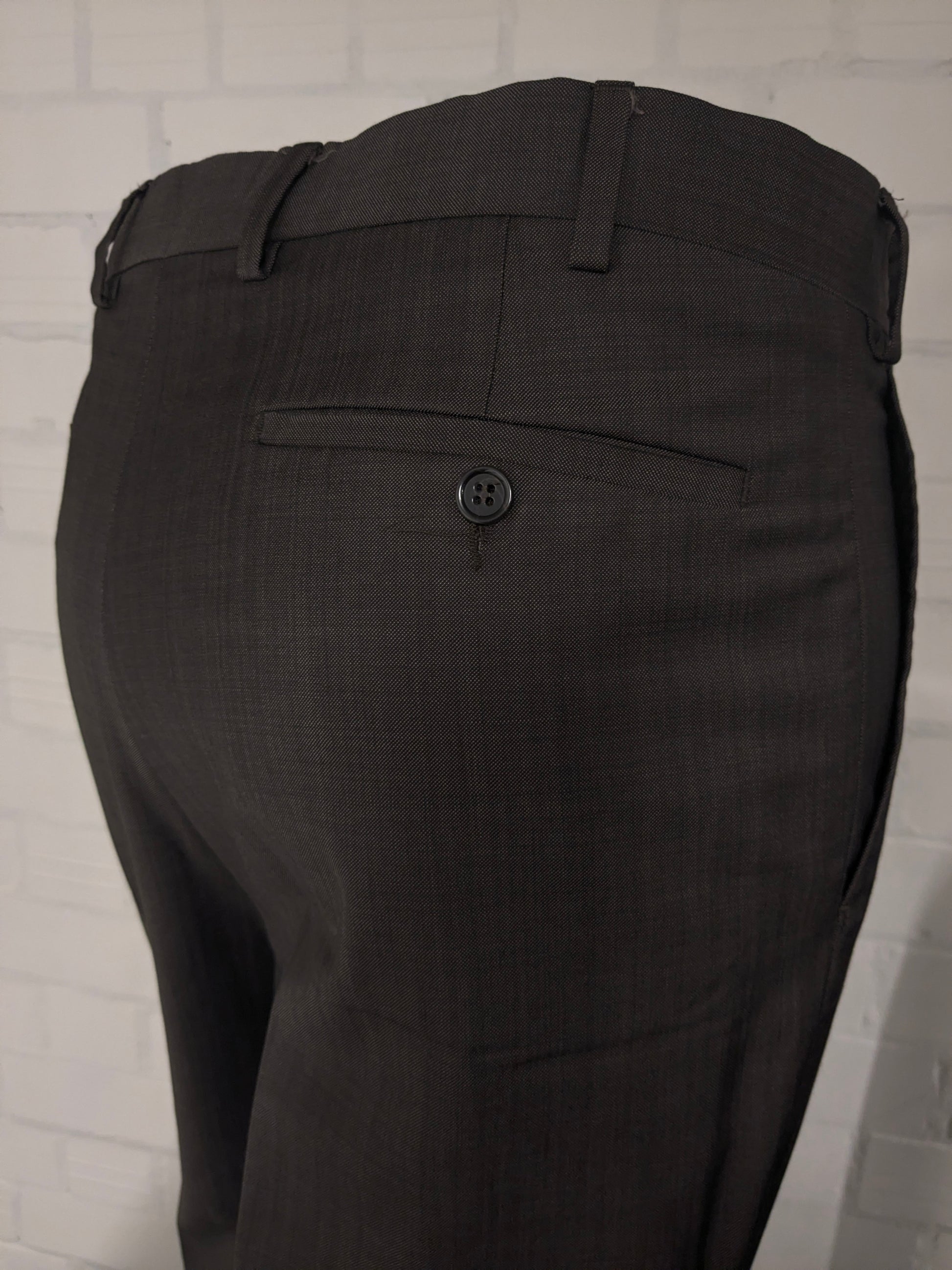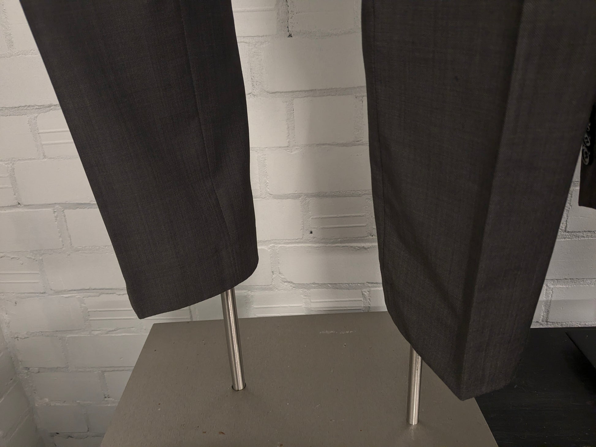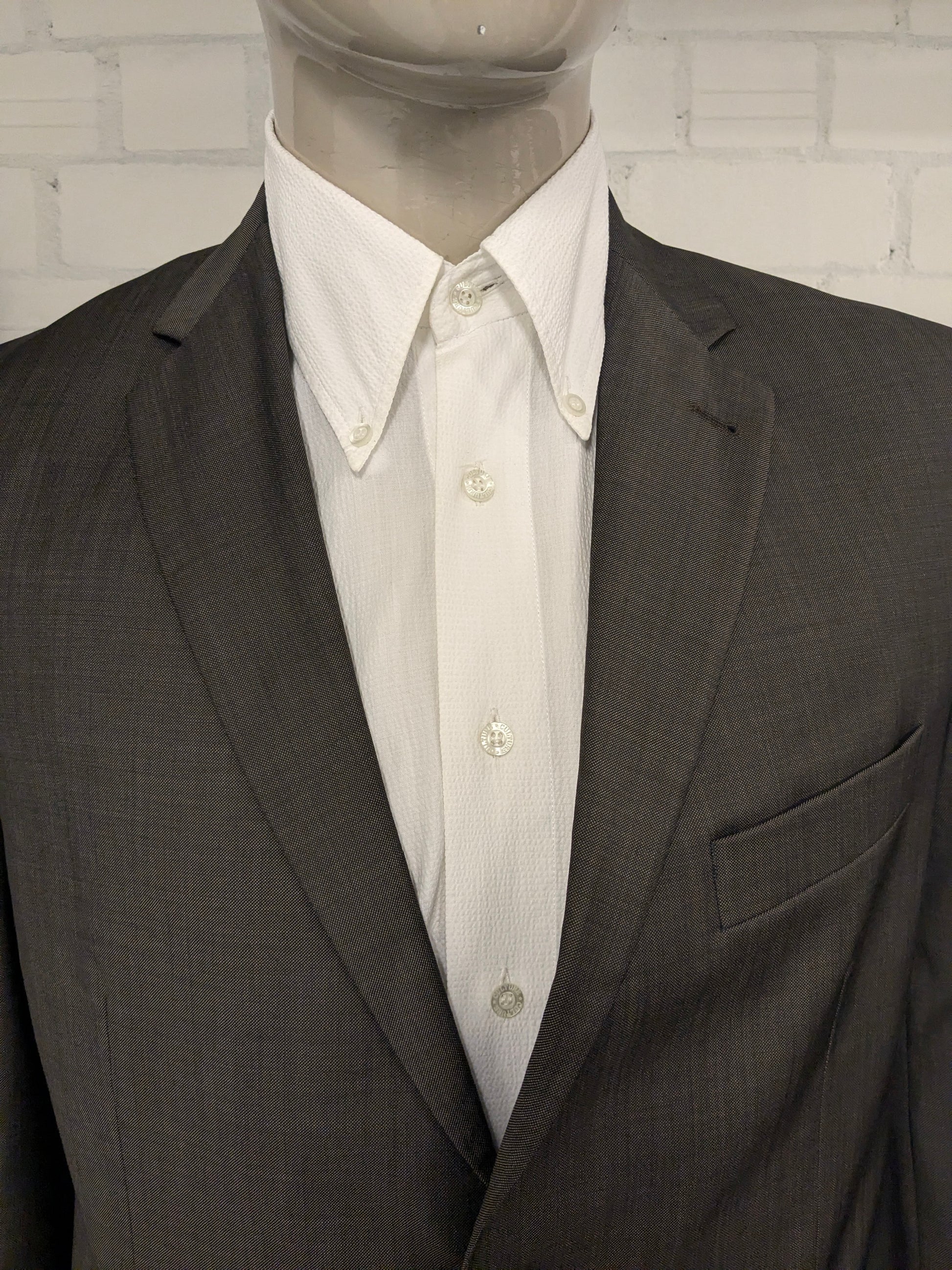 Merkloos Wollen kostuum. Bruin motief. Maat 26 (52 / L).