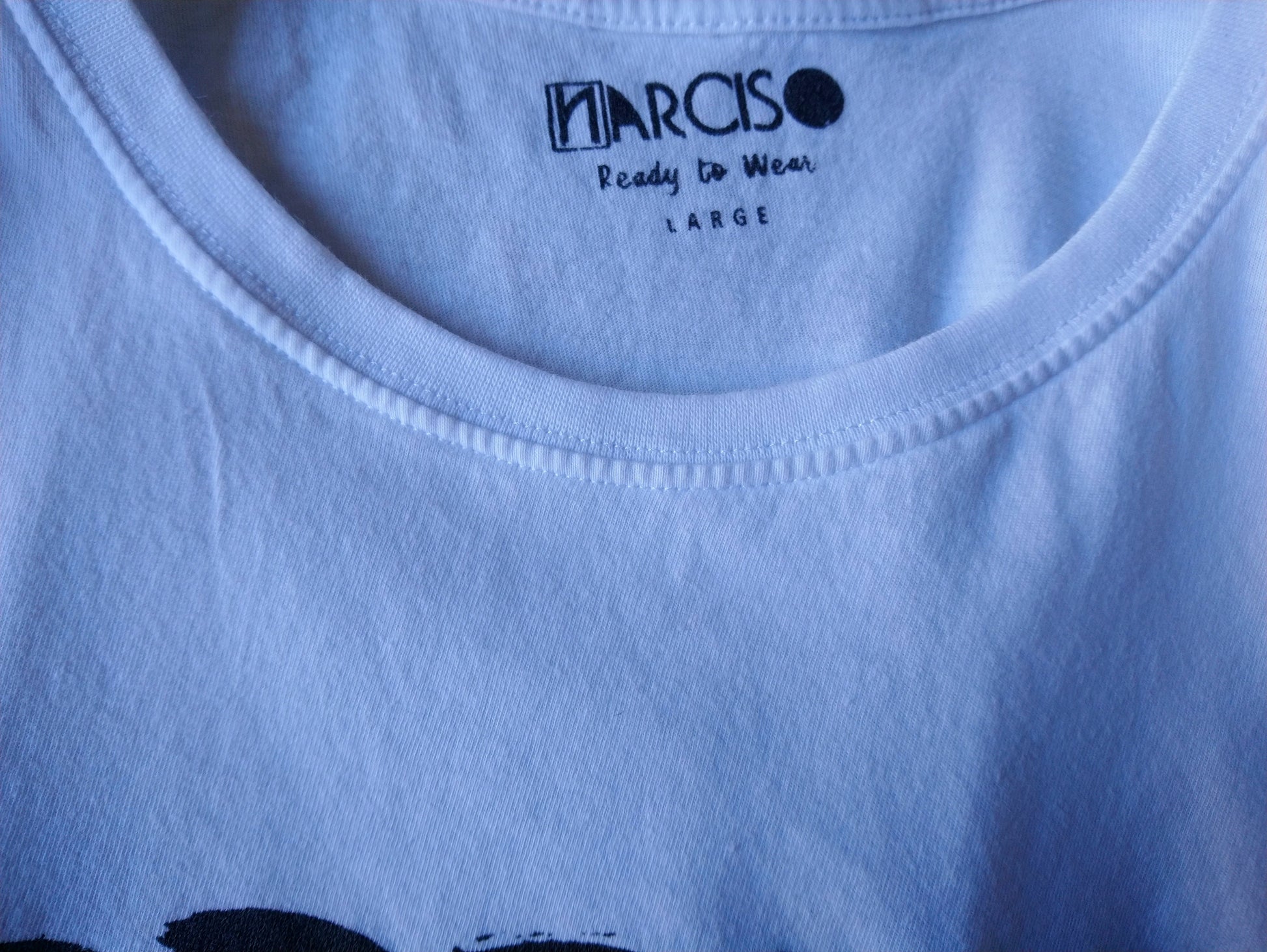 Narciso ready to wear shirt. Wit met opdruk. Maat L.