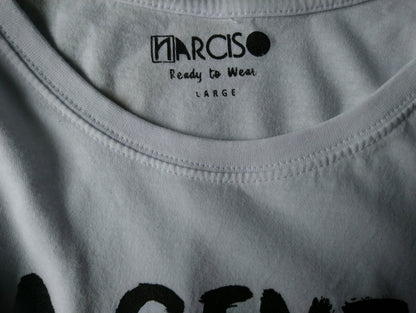 Narciso ready to wear shirt. Wit met opdruk. Maat L.