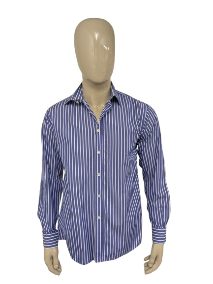 Scapa overhemd. Blauw Wit gestreept. Maat 40 / M.