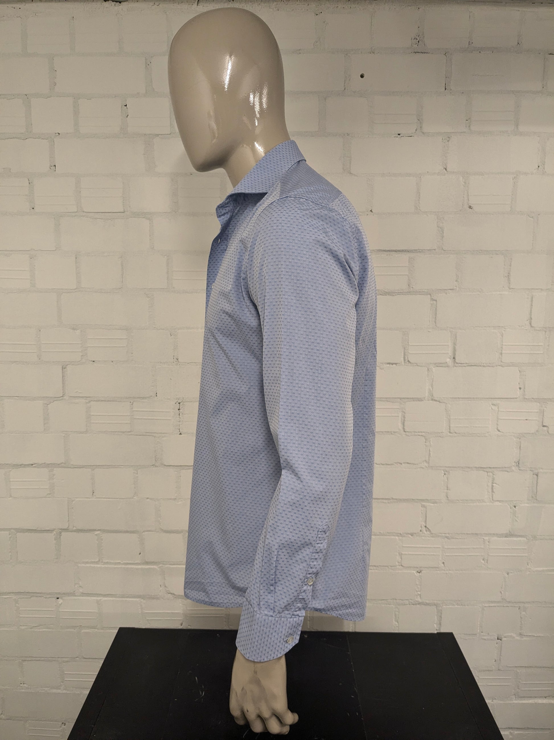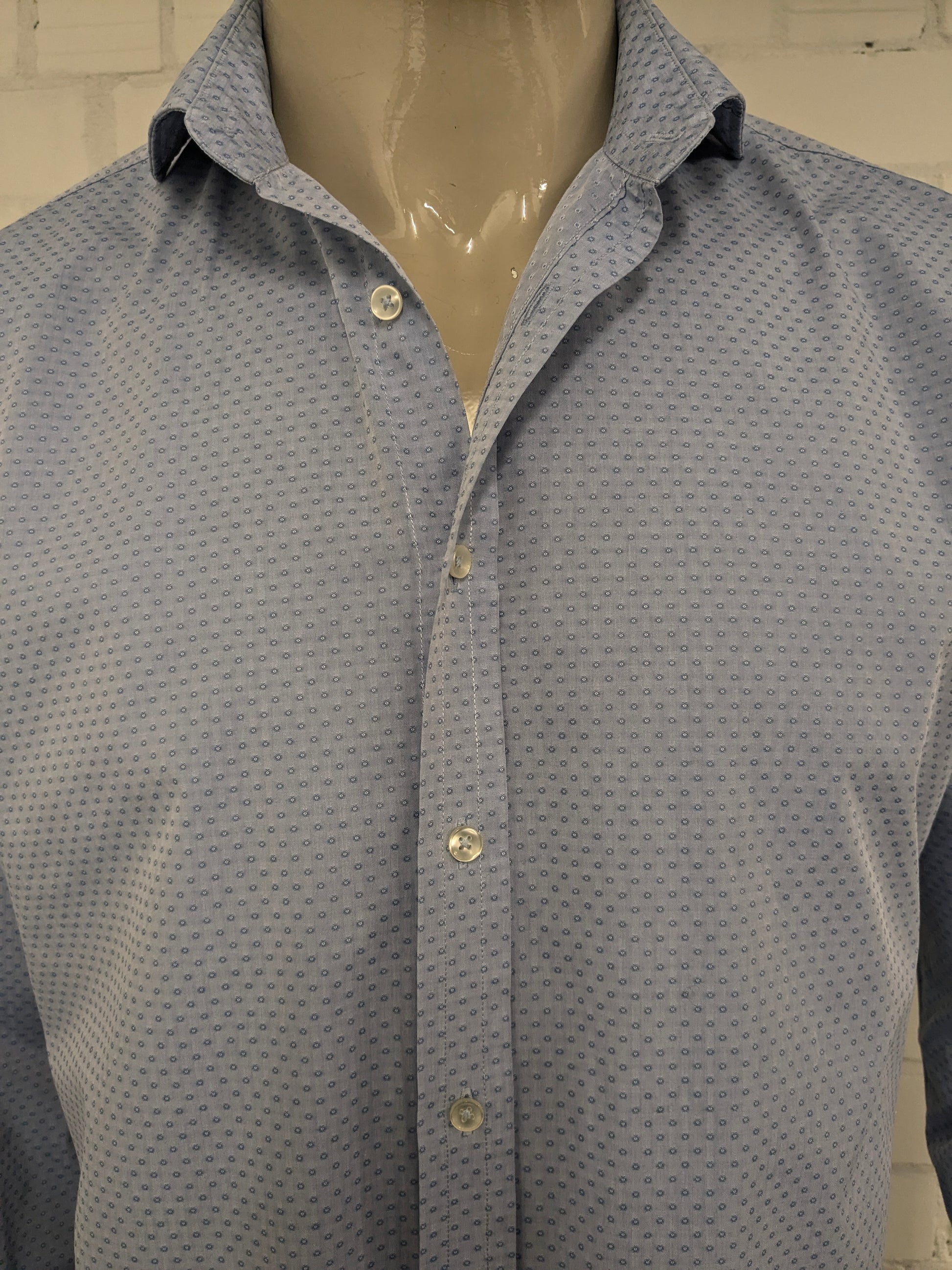Van Gils overhemd. Licht Blauw Licht Glanzend bolletjes motief. Maat 41 / L. skin cut.