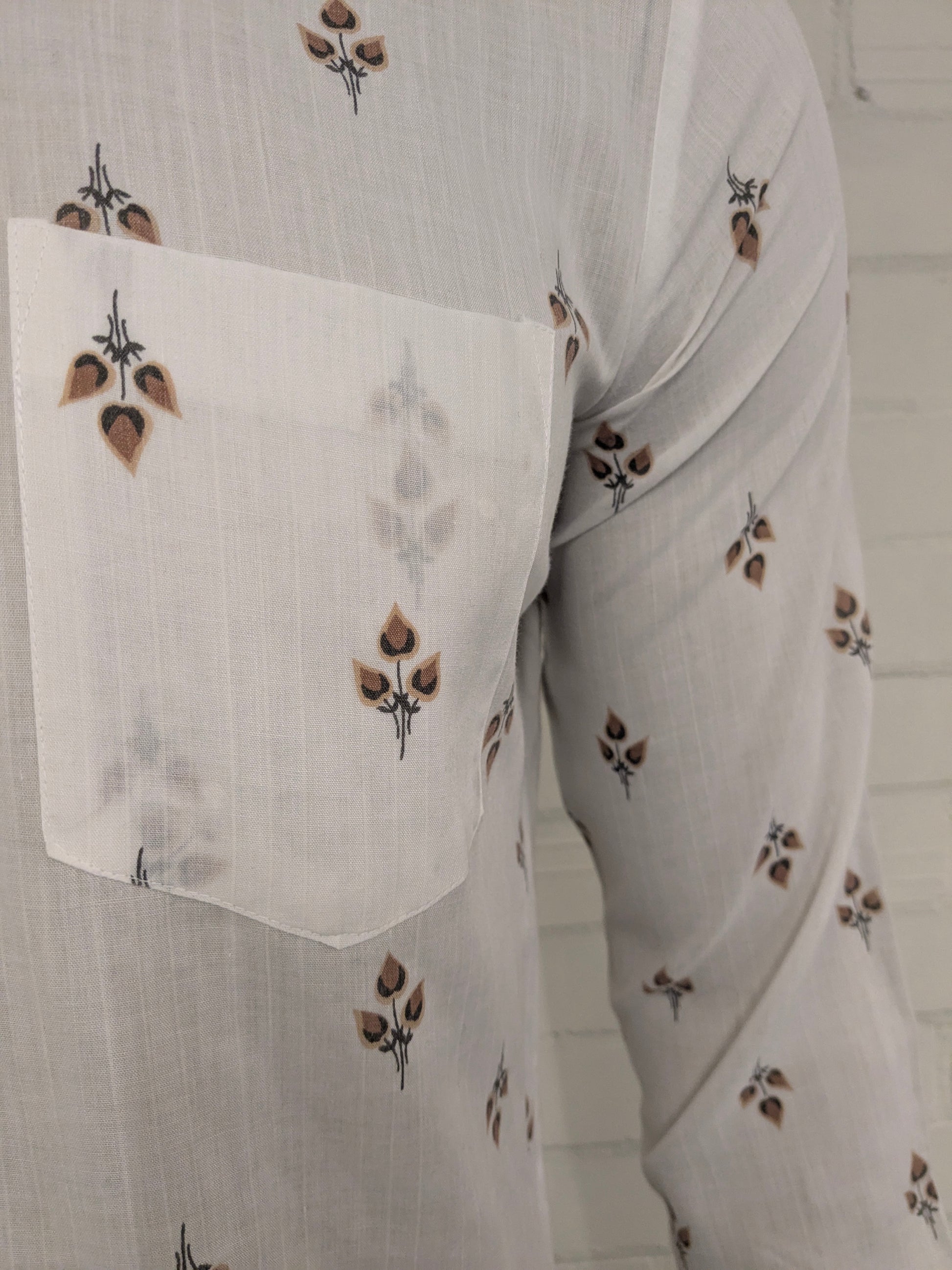 Vintage 70's Ataka overhemd met puntkraag en grotere knopen. Beige Bruine bloemen print. Maat L.