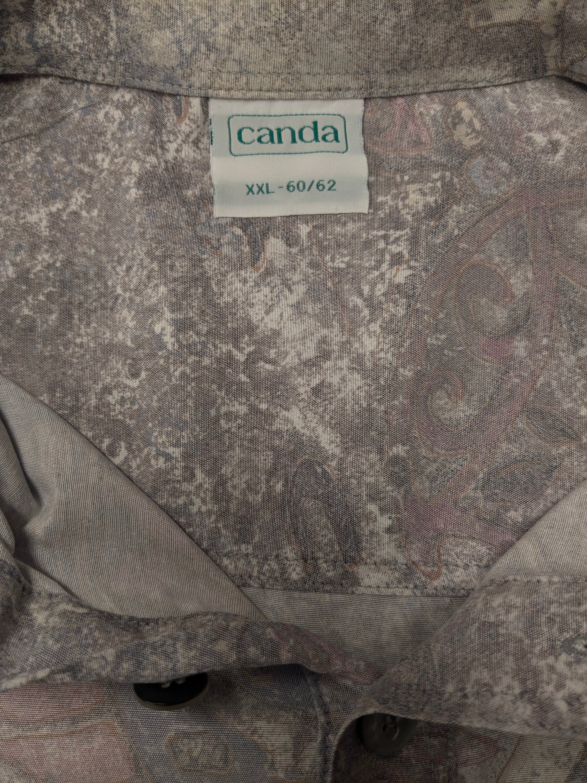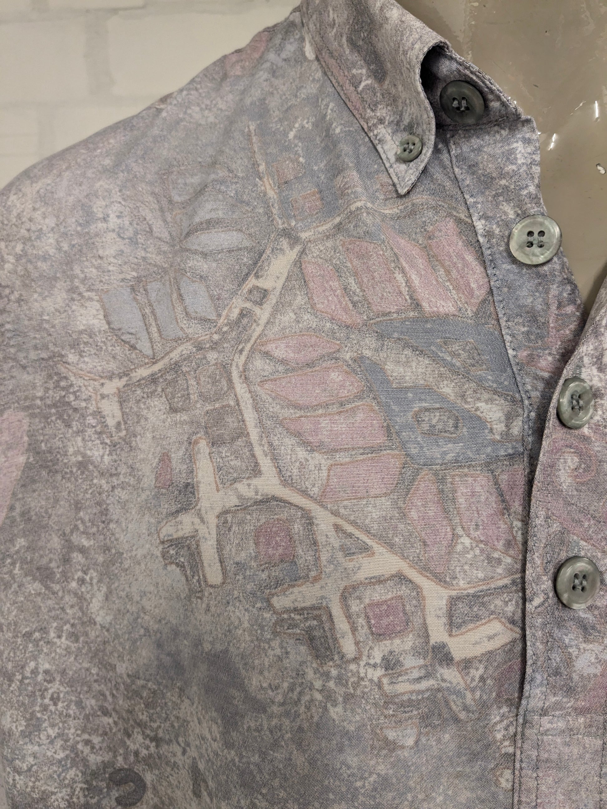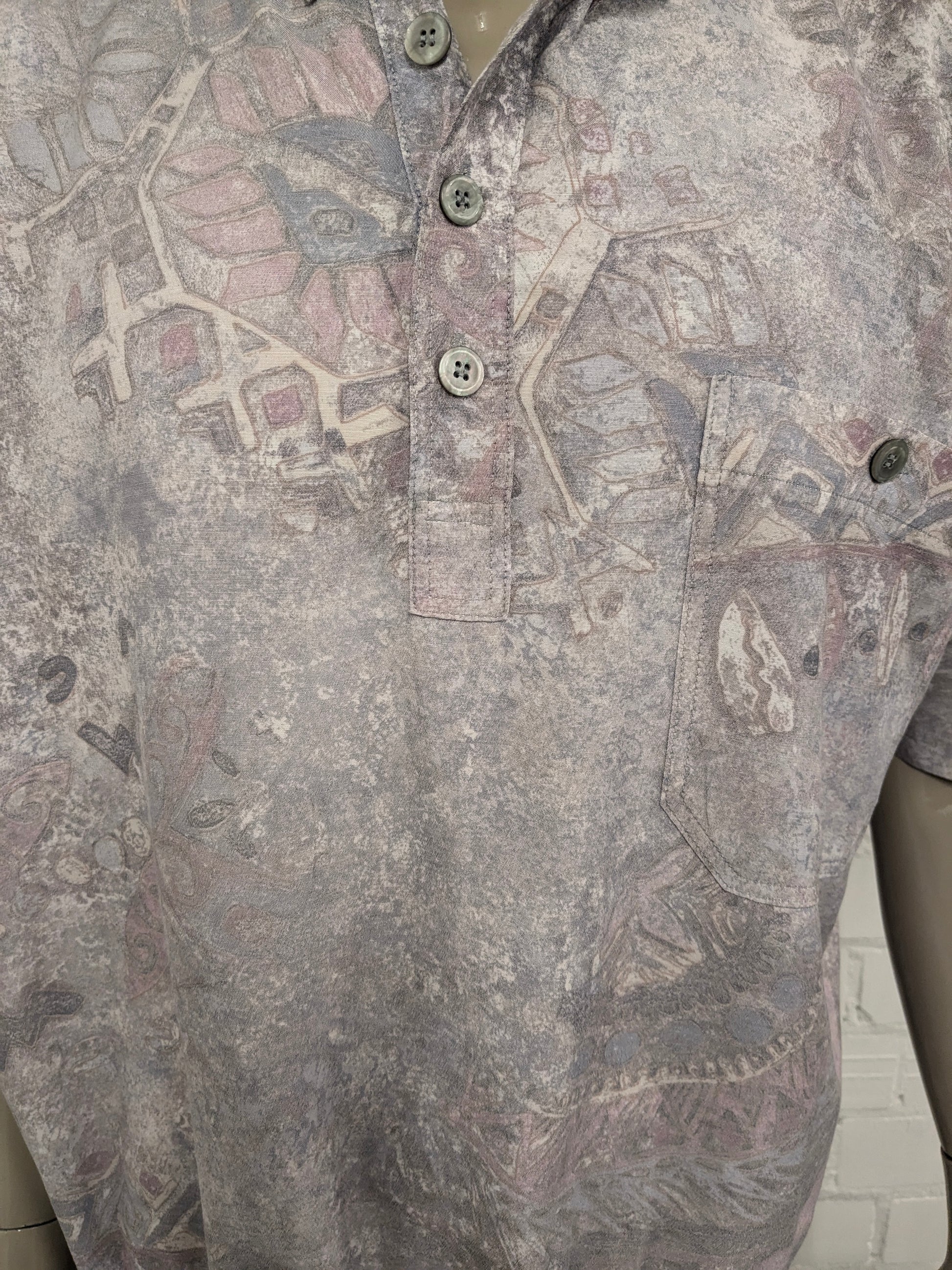 Vintage 80-90's overhemd polo met elastische band. Paarse Bruine print. Maat 2XL - 3XL.