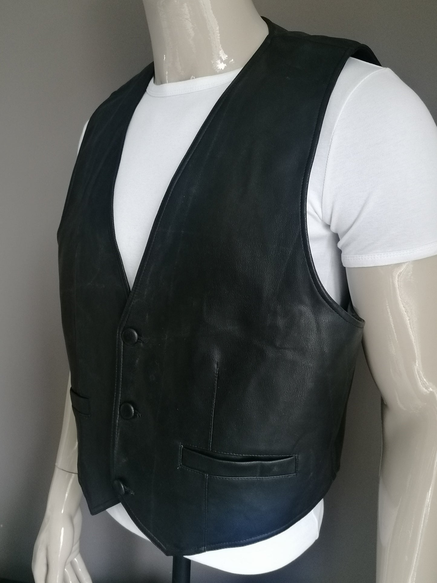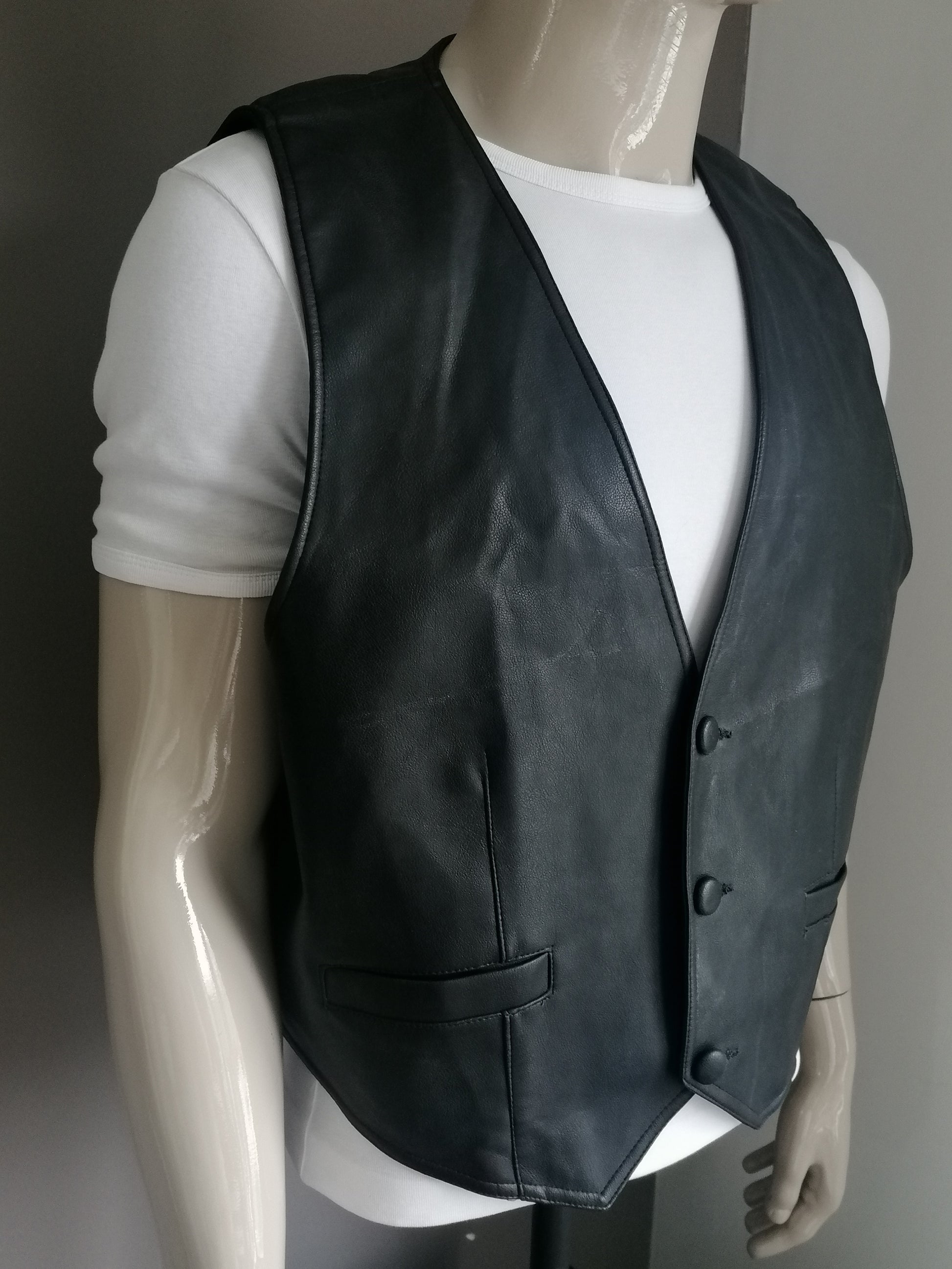 Vintage Billawal leer-look! gilet. Zwart gekleurd. Maat XXL / 2XL.