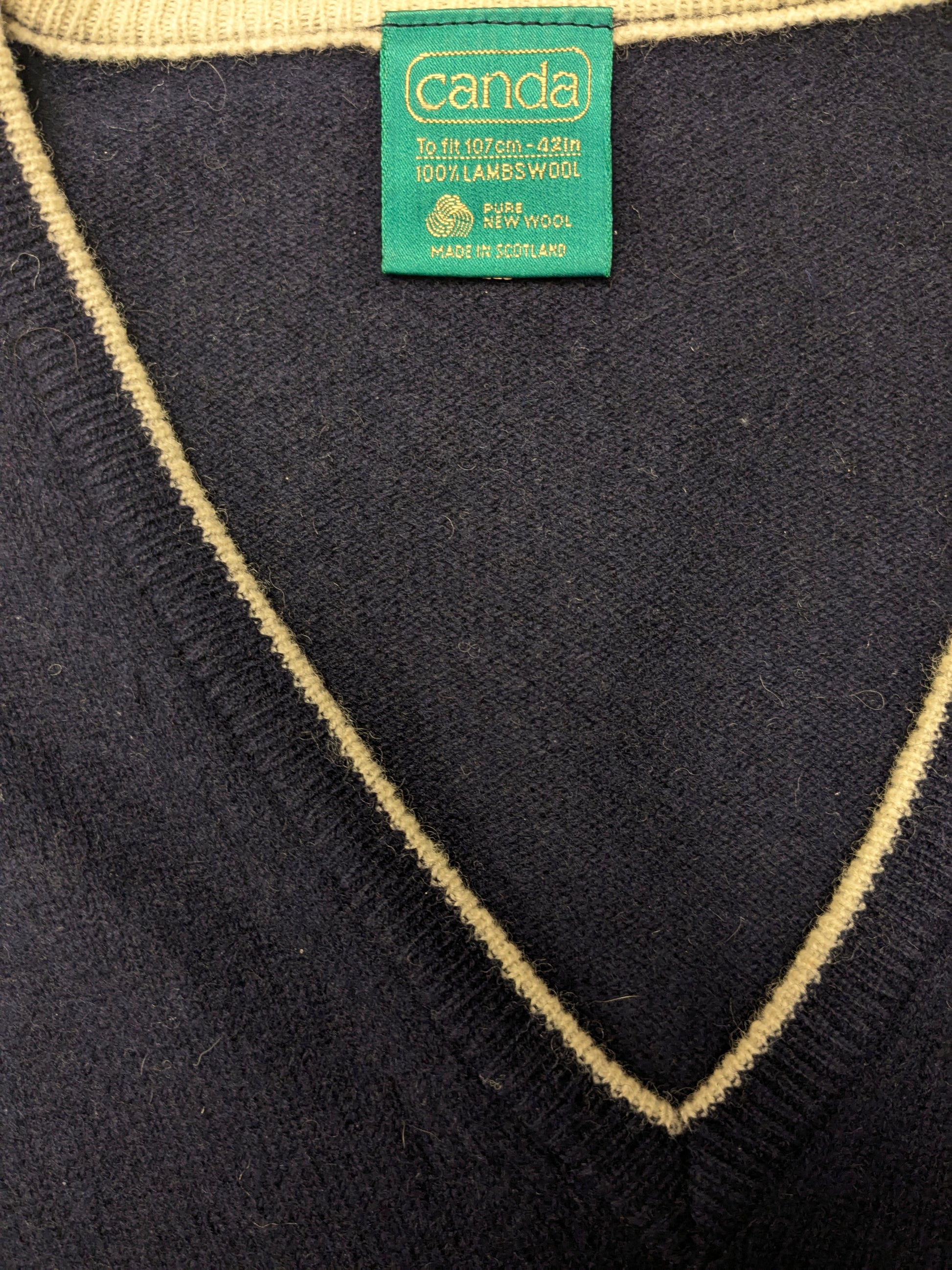 Vintage Canda LamsWollen spencer met V-Hals. Donker Blauw gekleurd. Maat M. 100% Wol.