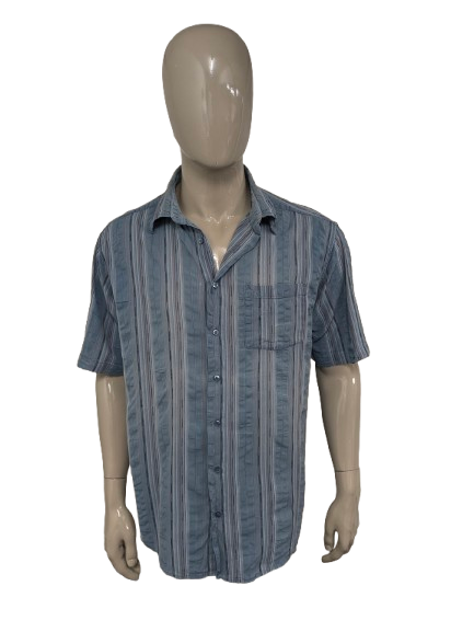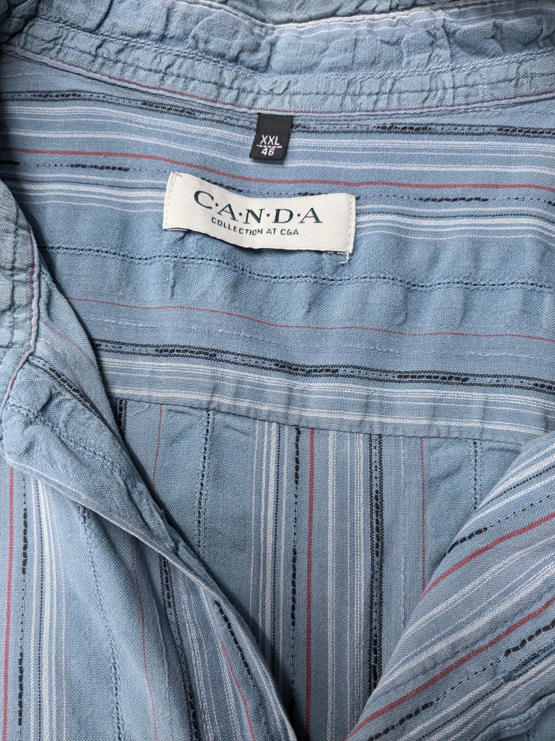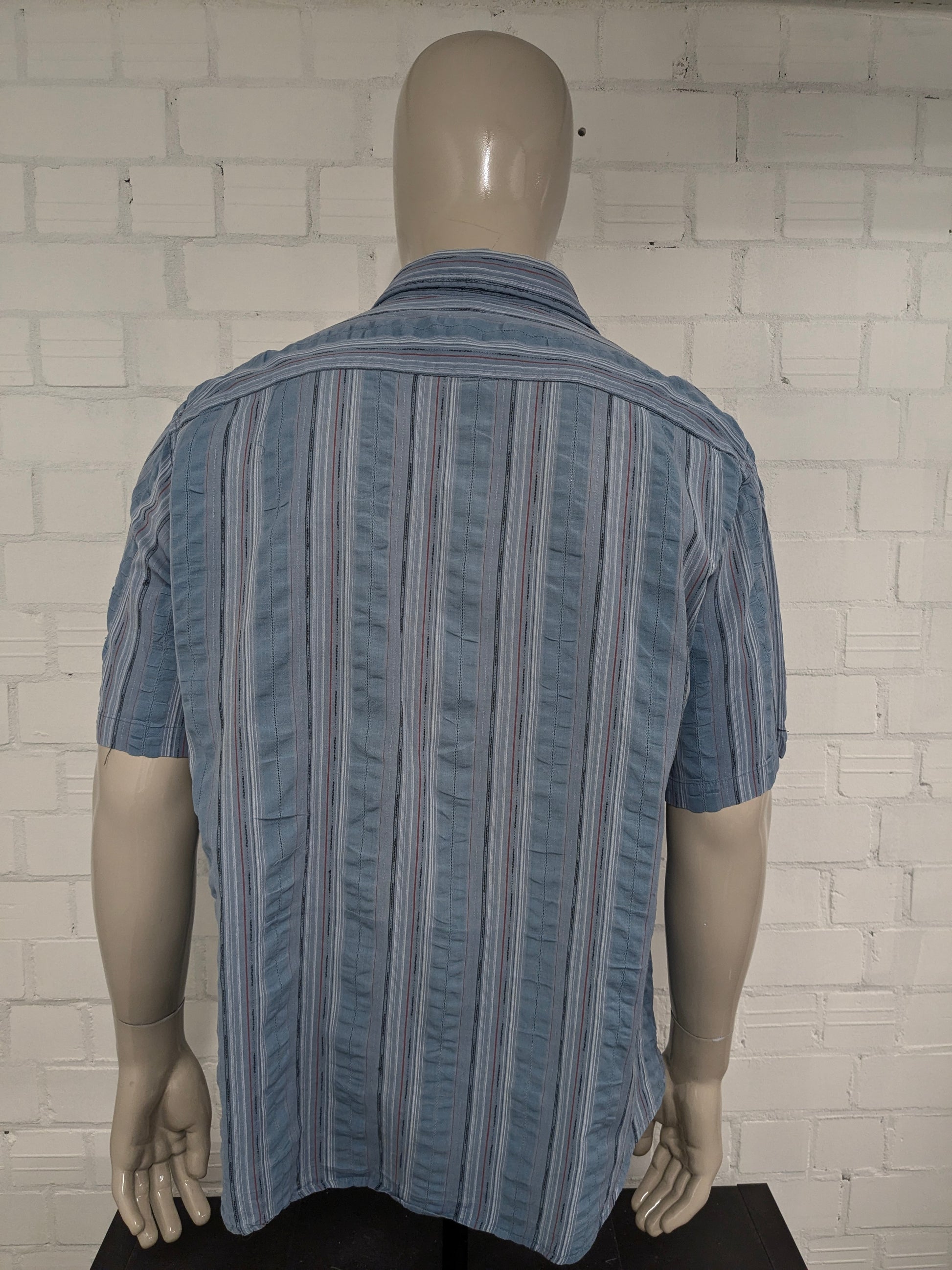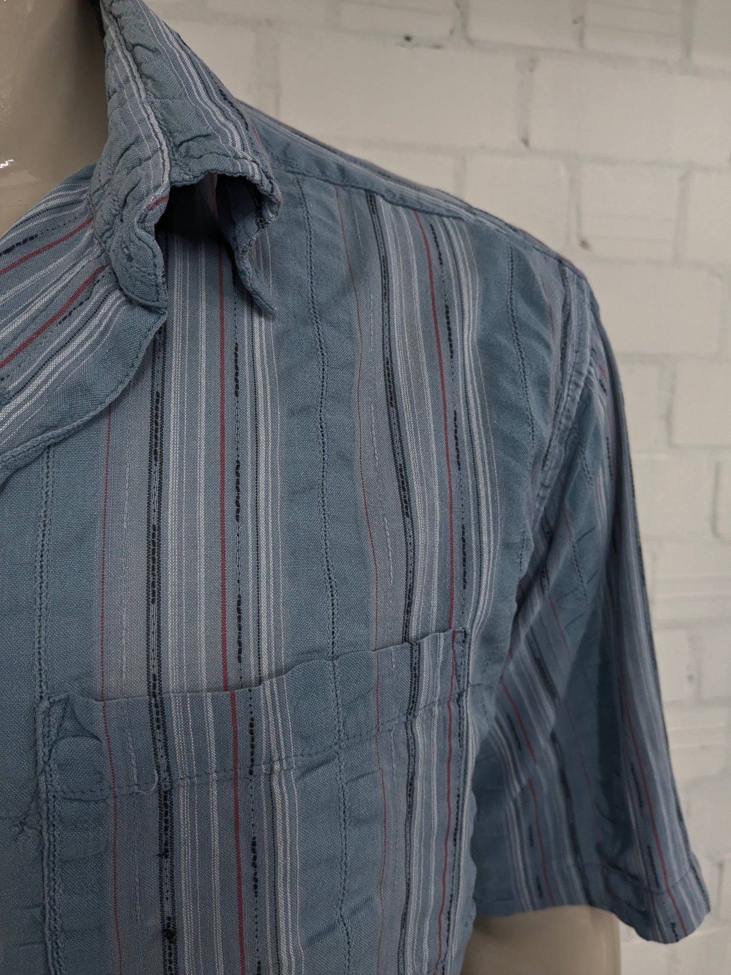Vintage Canda overhemd korte mouw. Blauw Rood Witte print. Voelbaar motief. Maat 2XL / XXL.