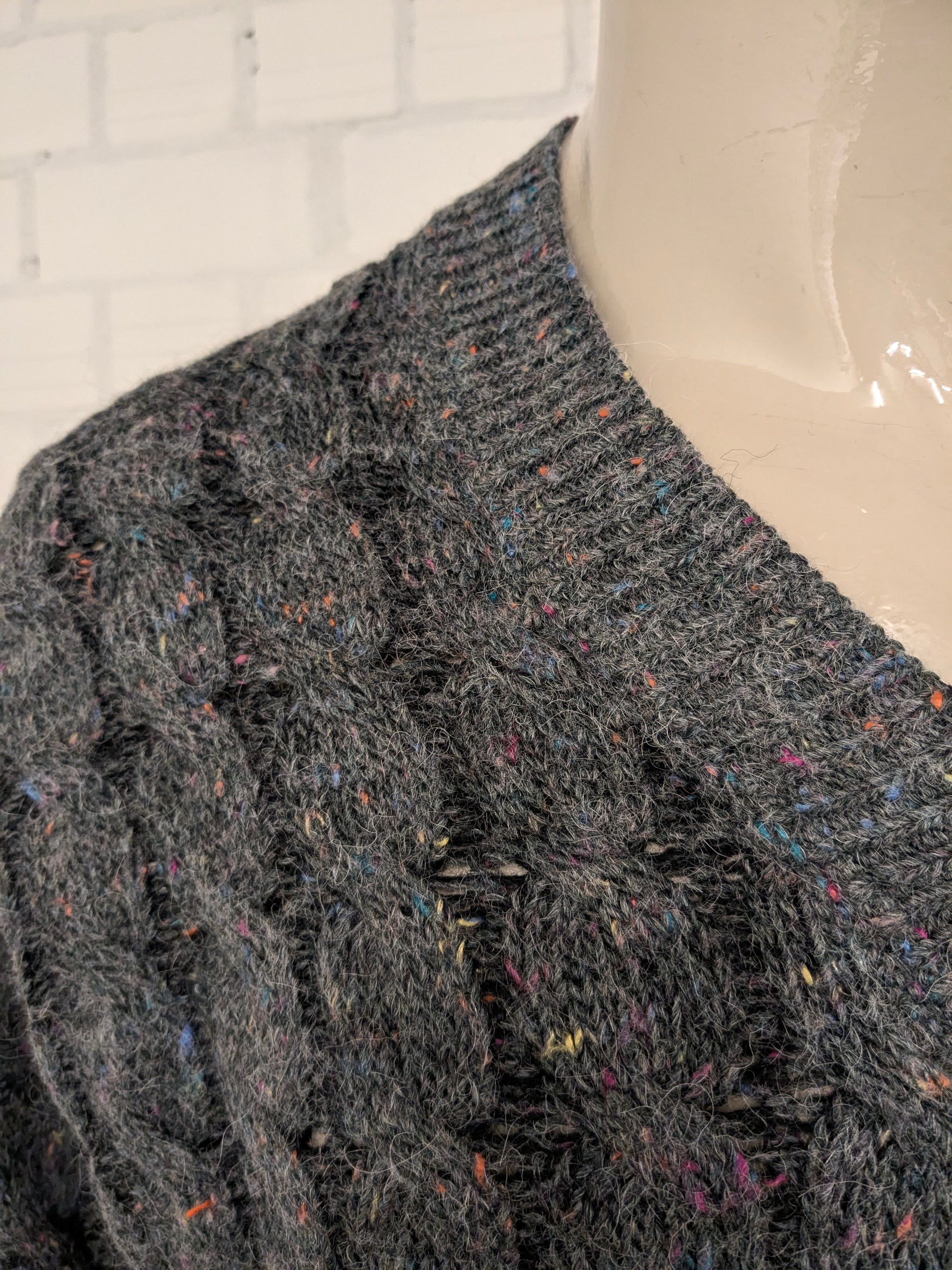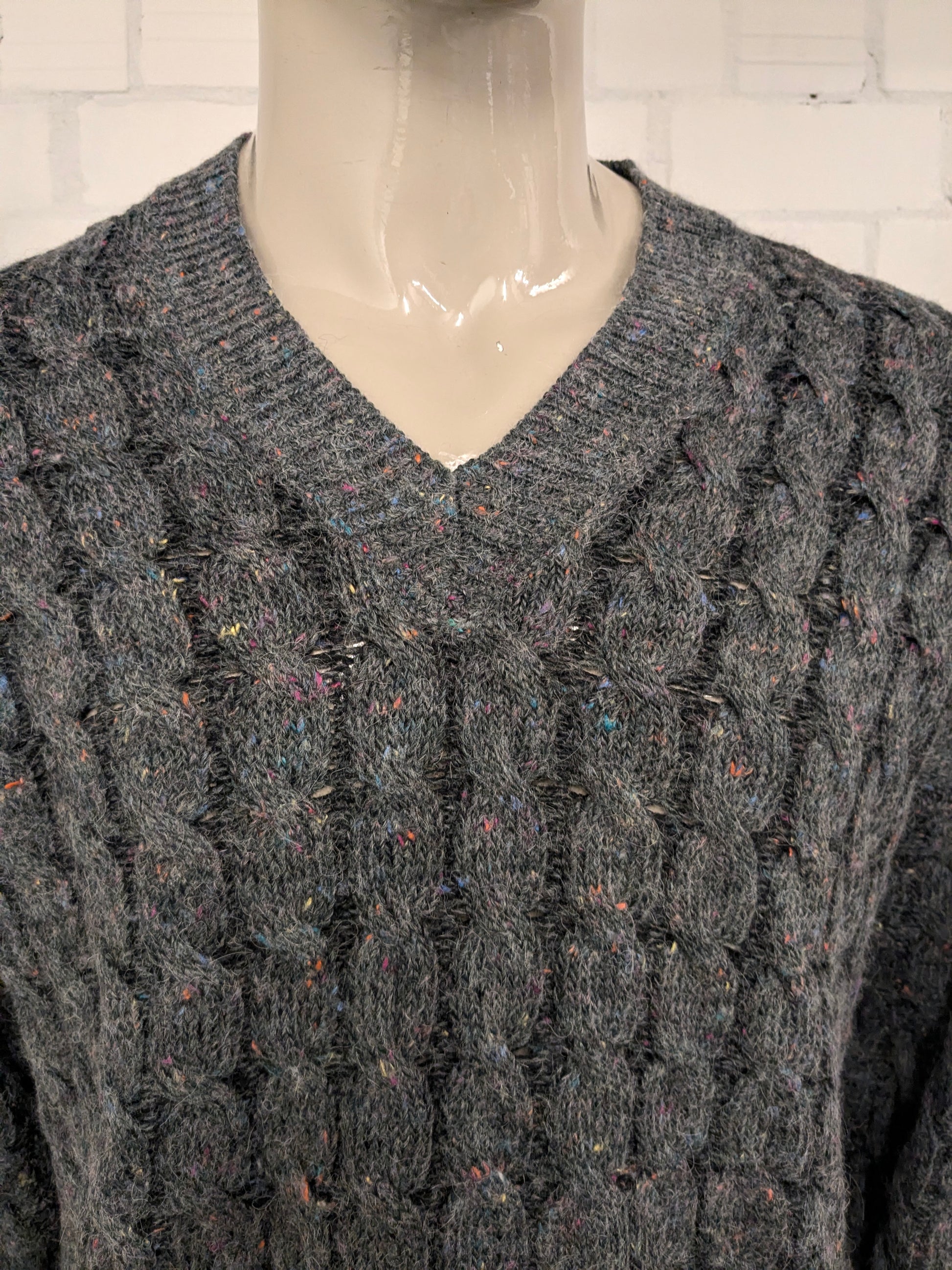 Vintage Castella Alpaca / Wollen trui met V-Hals. Grijs Gekleurde spikkels gemêleerd. Maat XL. 4% Wol en 10% Alpaca Wol.