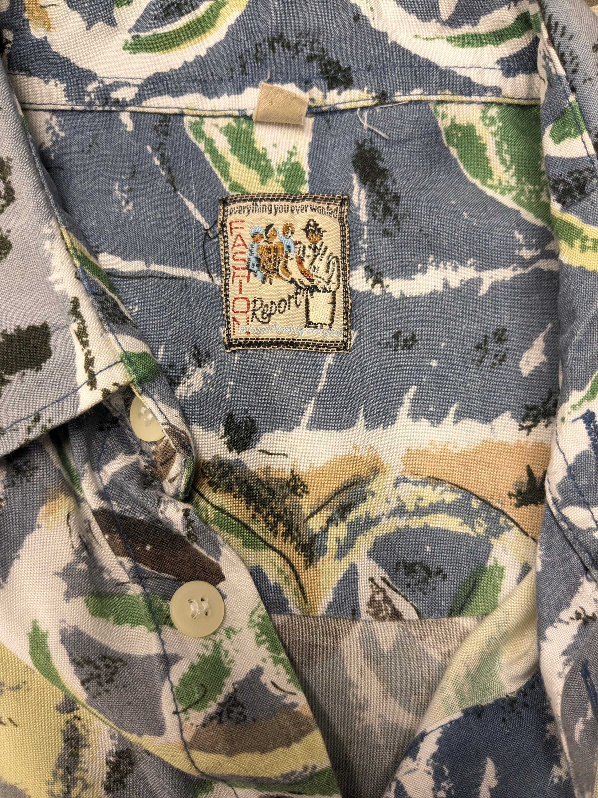Vintage Fashion Report overhemd korte mouw. Groen Blauw Bruine print. Maat L.