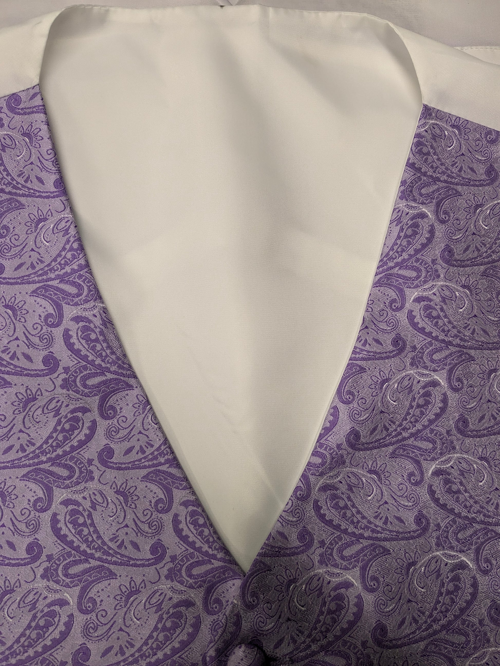 Vintage gilet. Licht en Donker Paarse paisley motief. Maat 3XL / XXXL.
