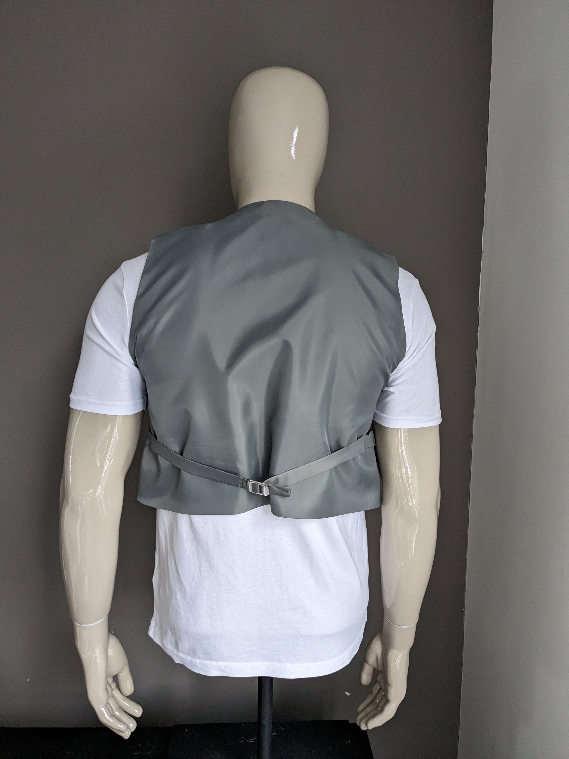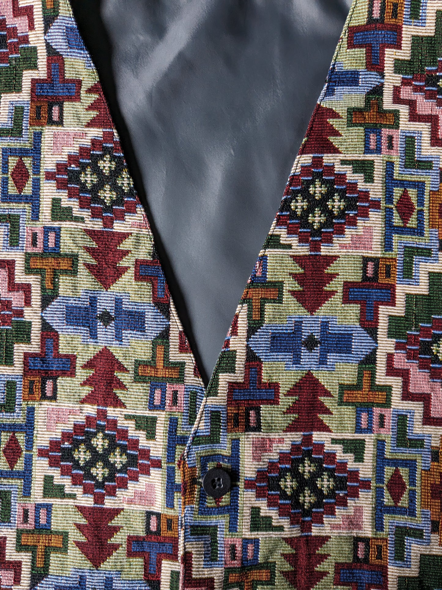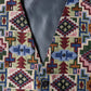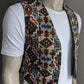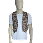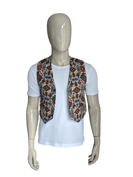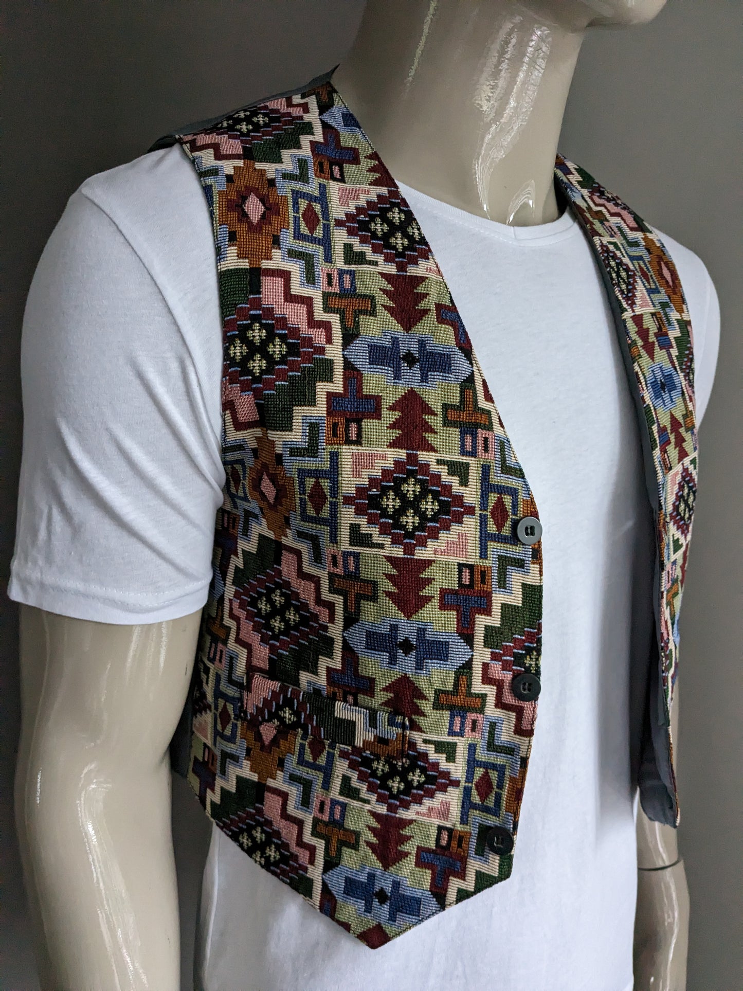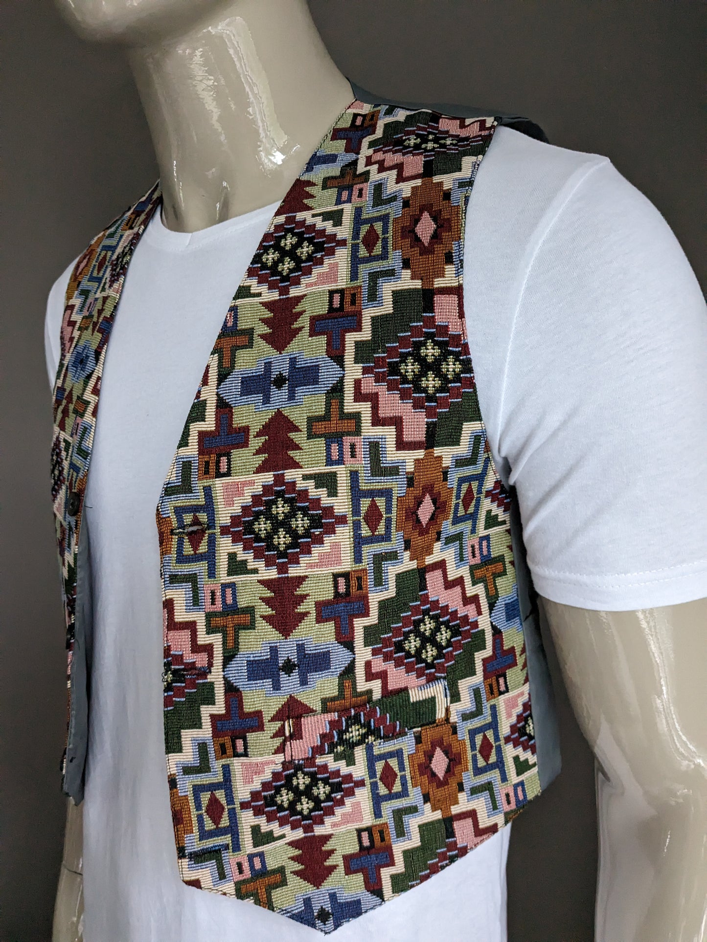 Vintage Gilet. Roze Rood GRoen Blauwe print. Grijs achterkant. Maat S.
