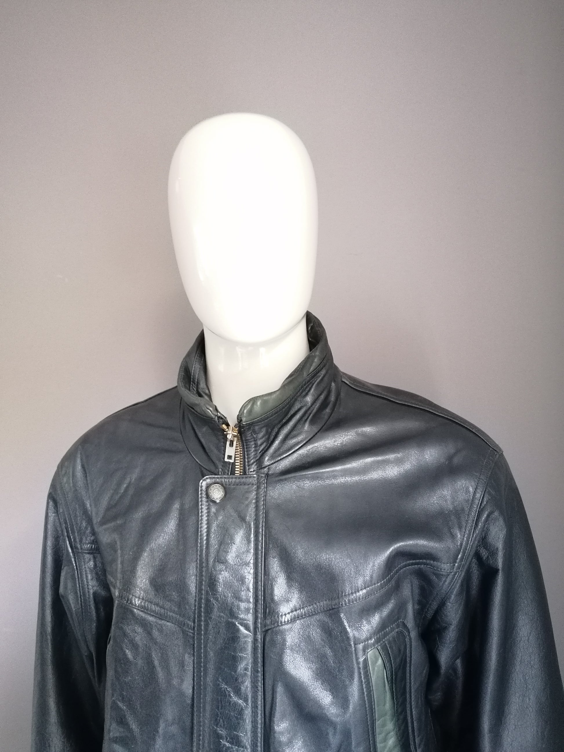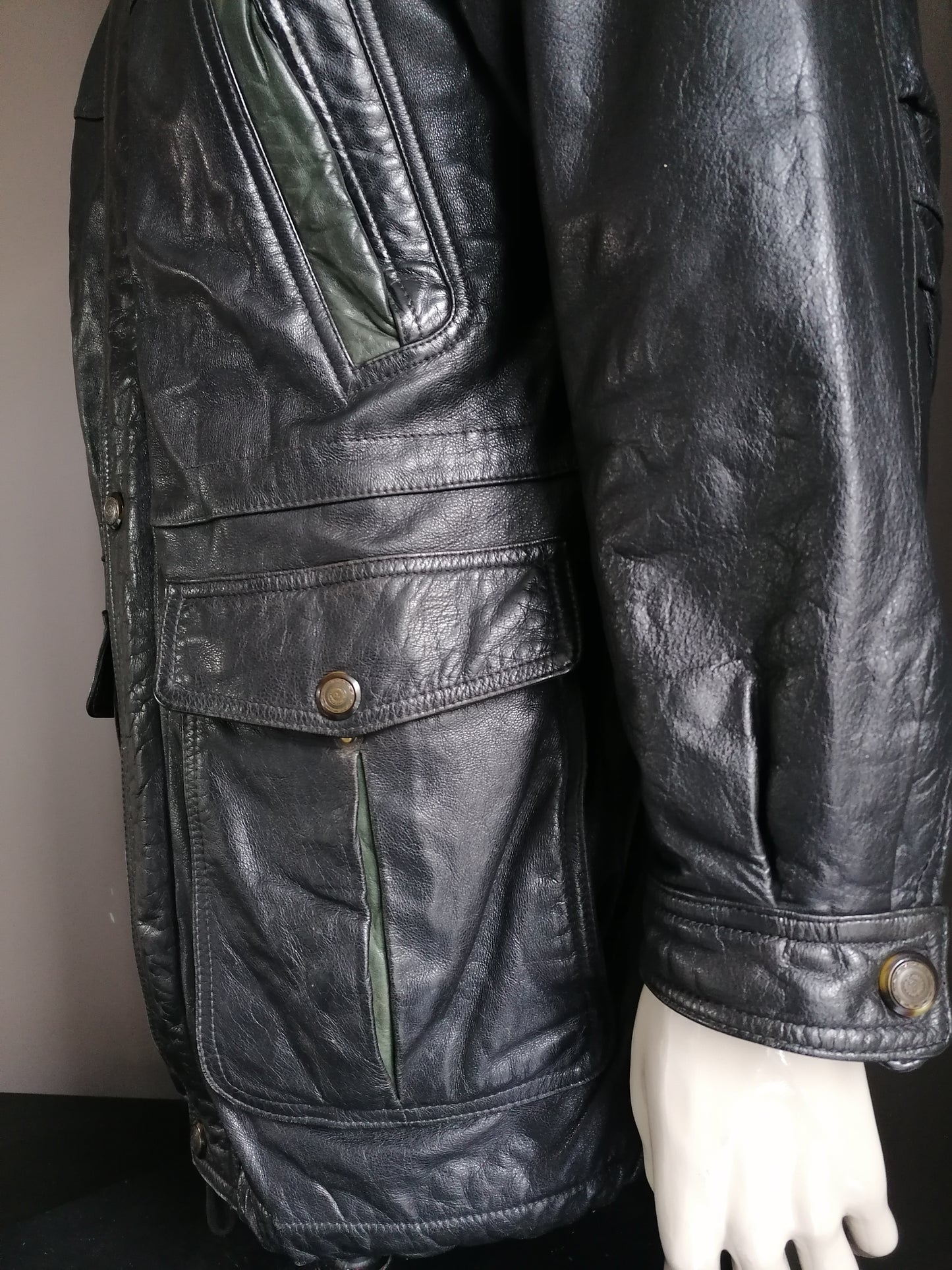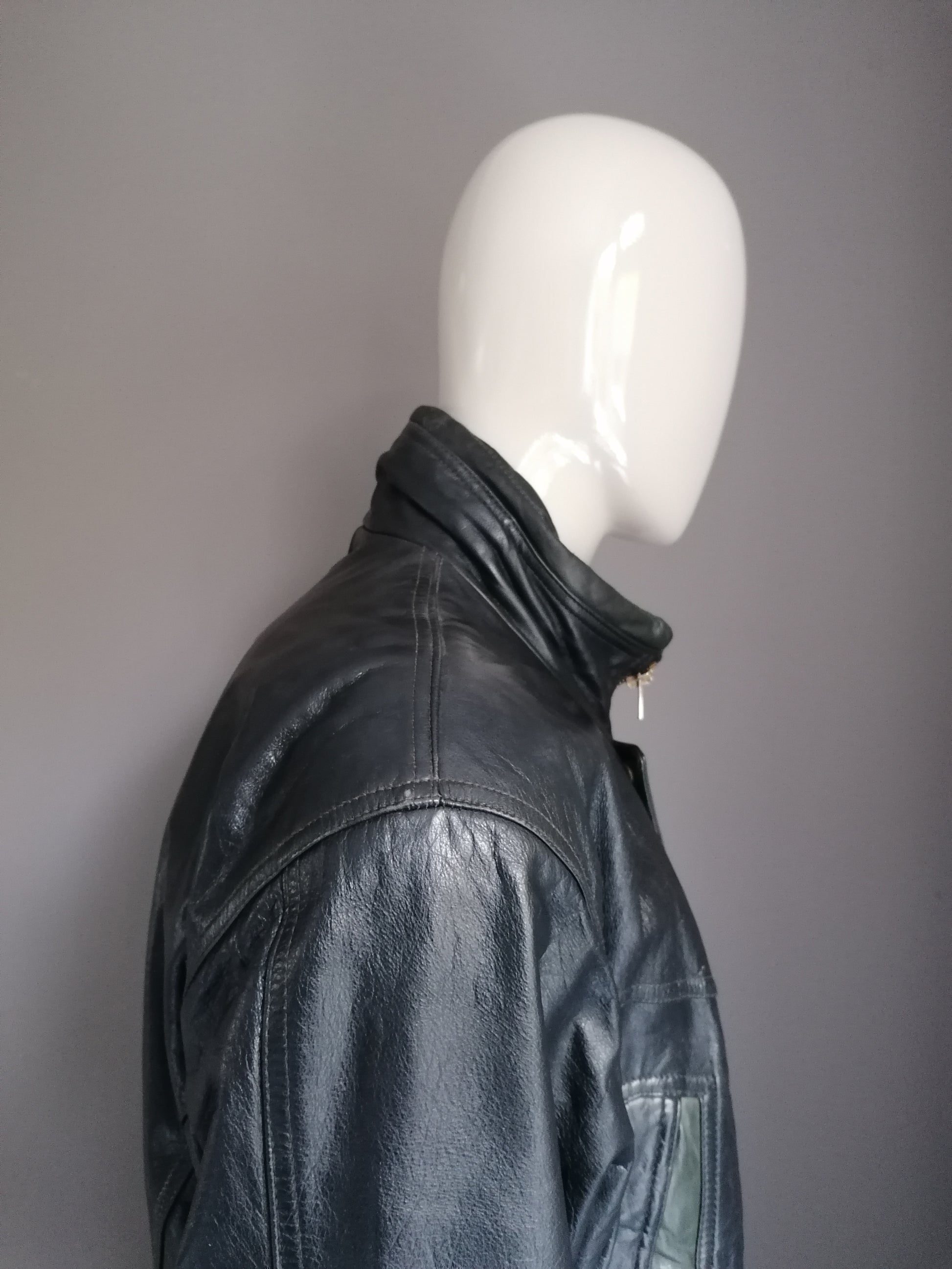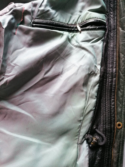 Vintage Halflange leren jas. Zwart Groen gekleurd. Maat XL