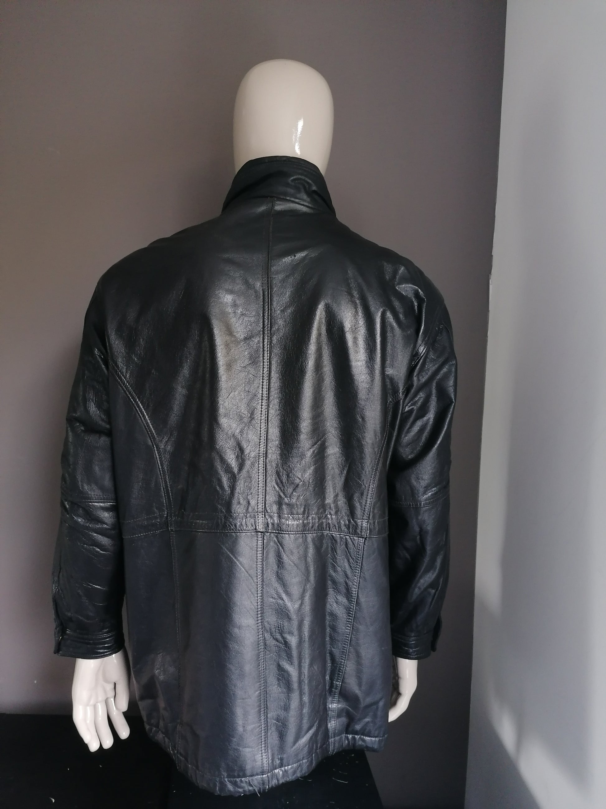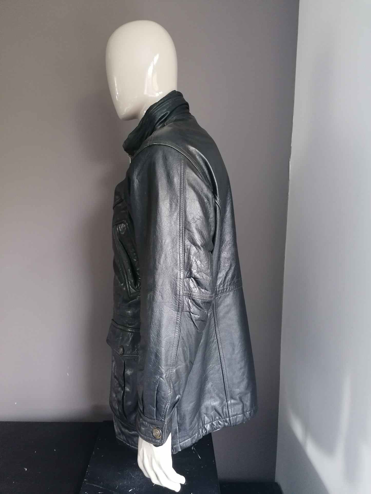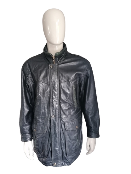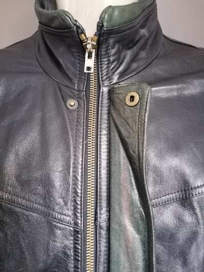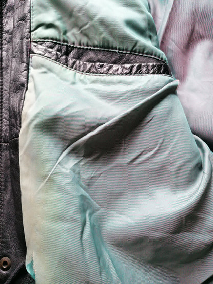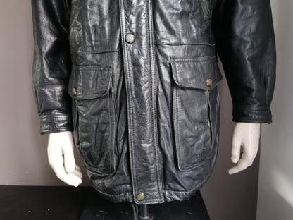 Vintage Halflange leren jas. Zwart Groen gekleurd. Maat XL