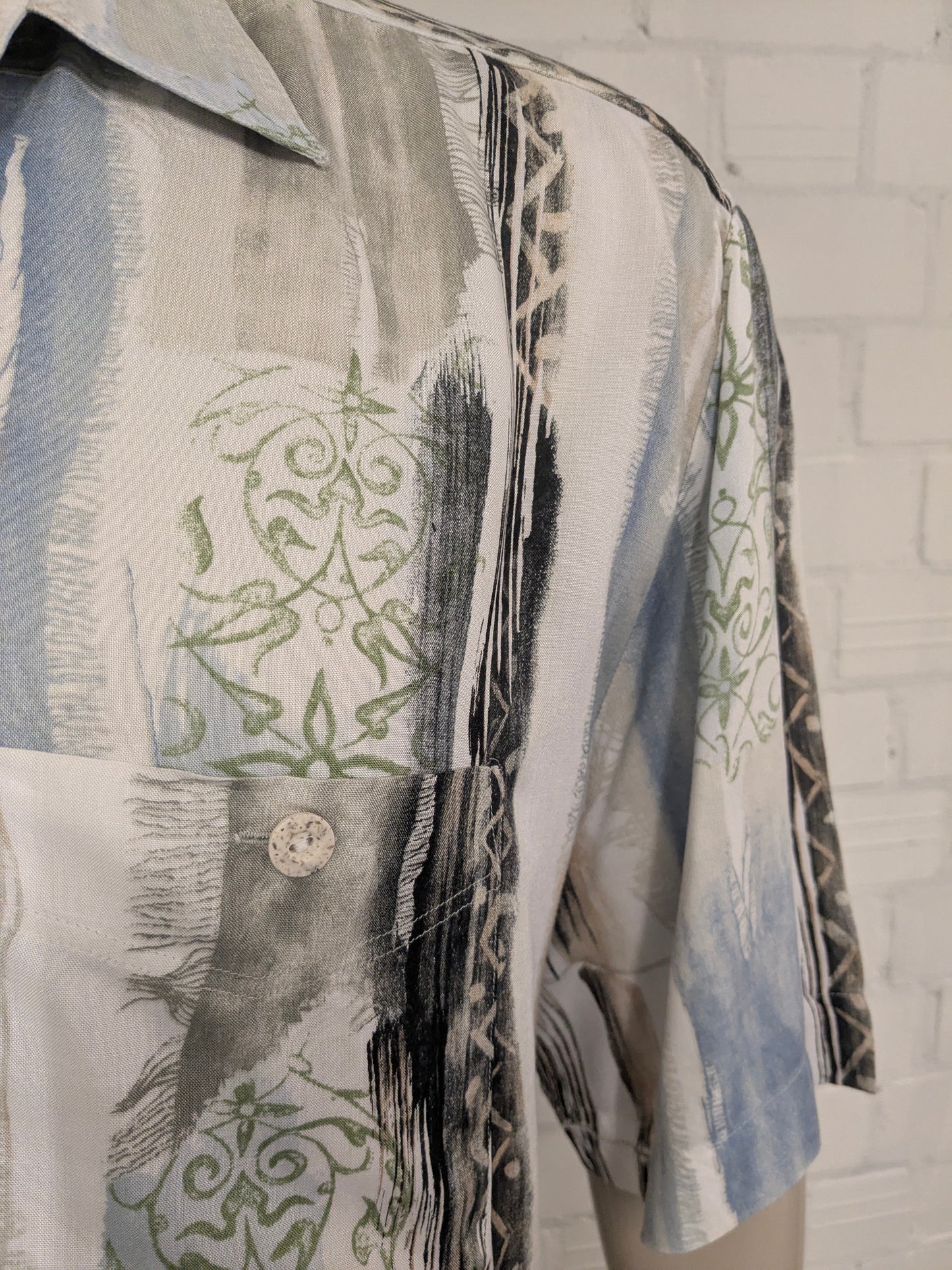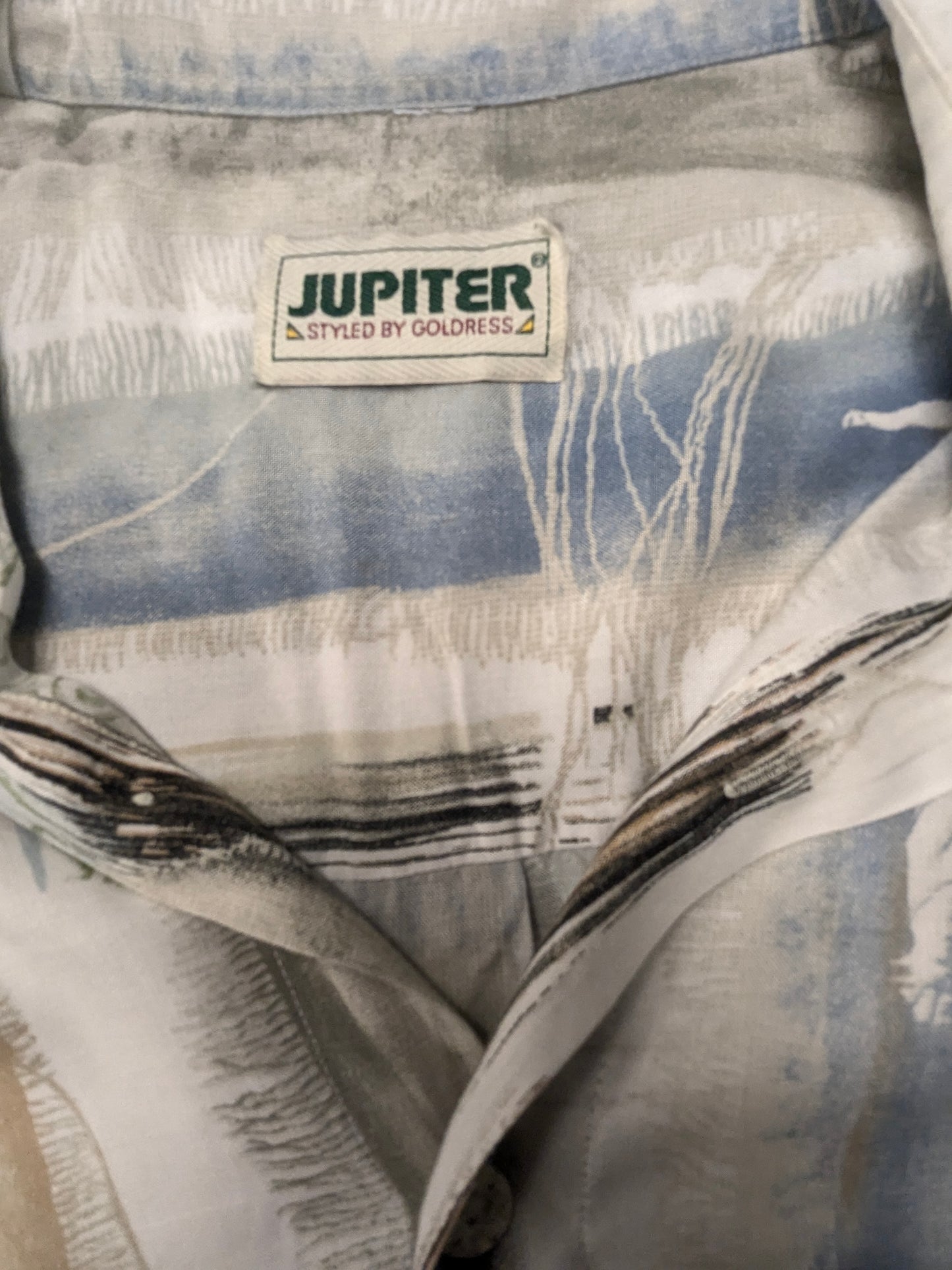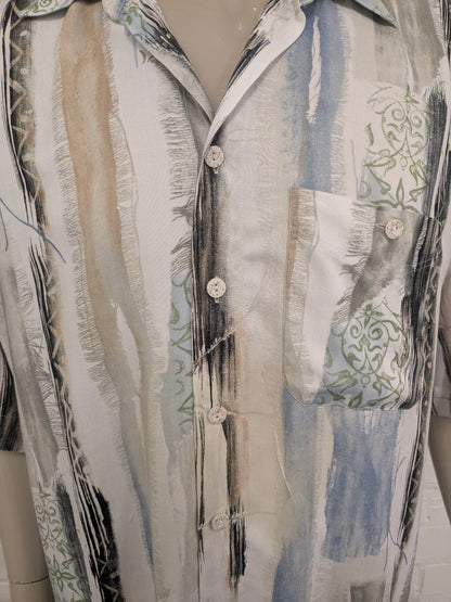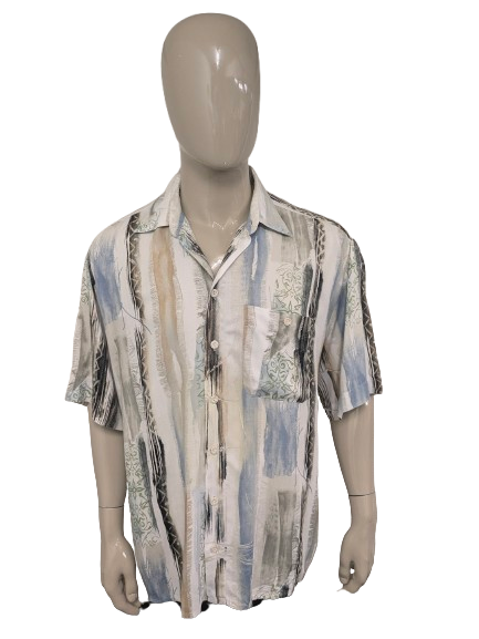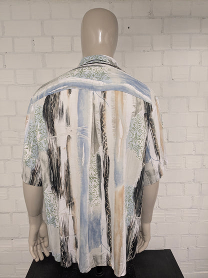 Vintage Jupiter overhemd korte mouw. Beige Groen Blauwe print. Maat 2XL / XXL.