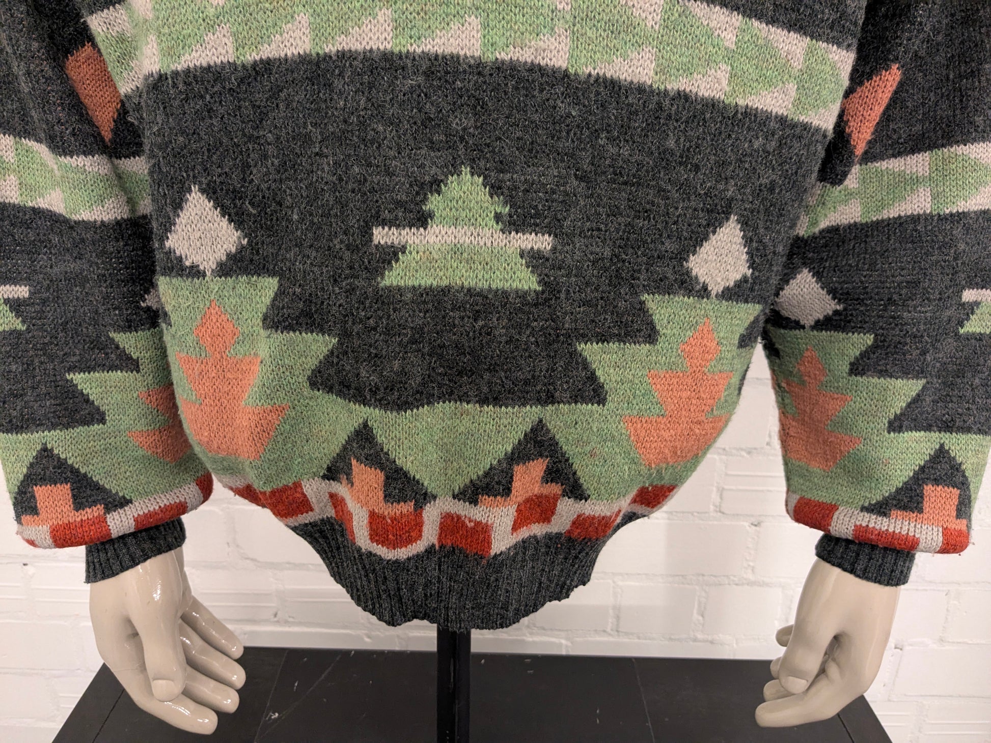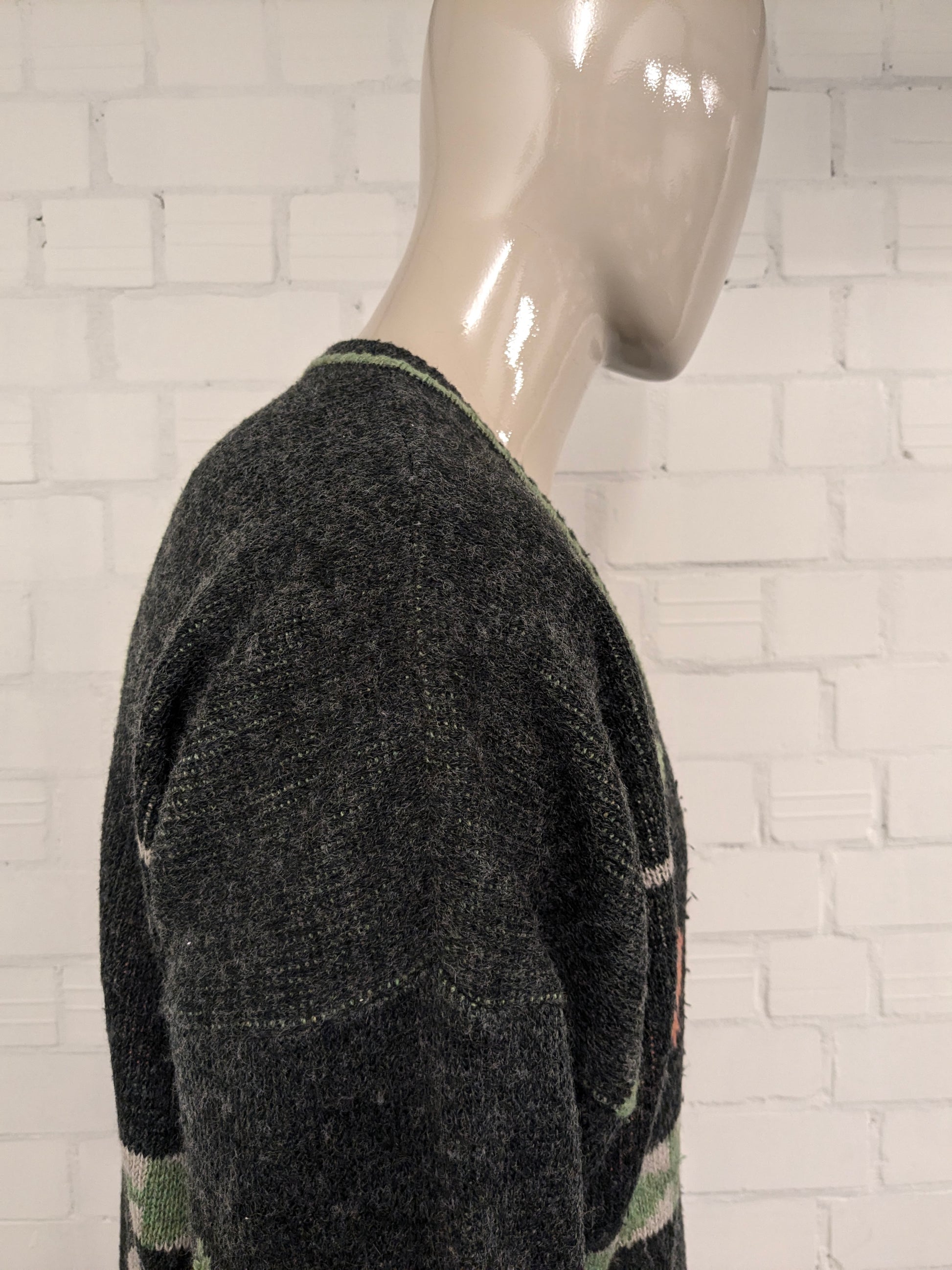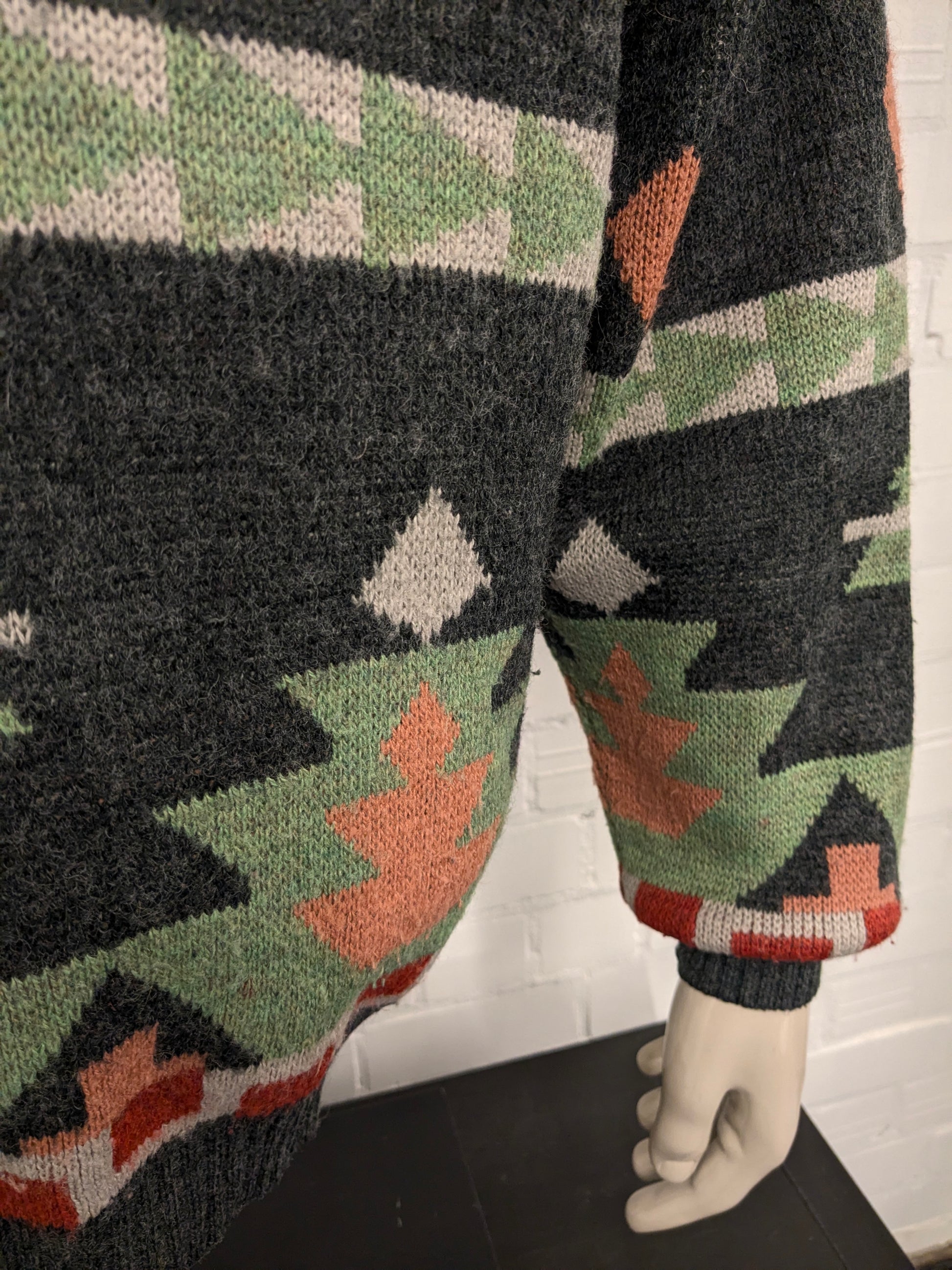 Vintage Laurens Wollen trui met V-Hals. Groen Roze Rood gekleurd. Maat XL. 30% Wol.