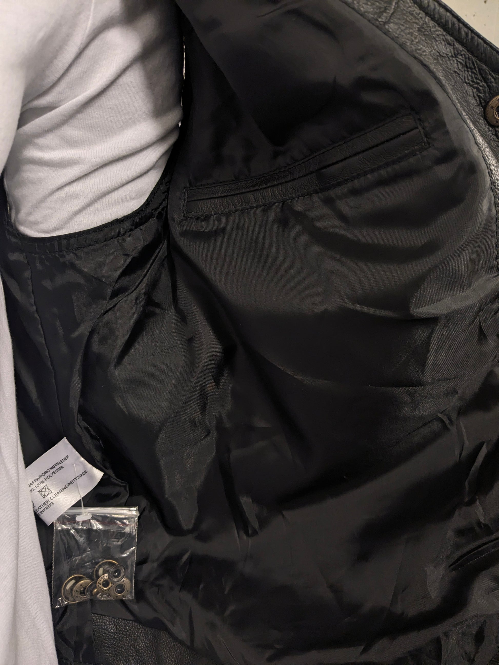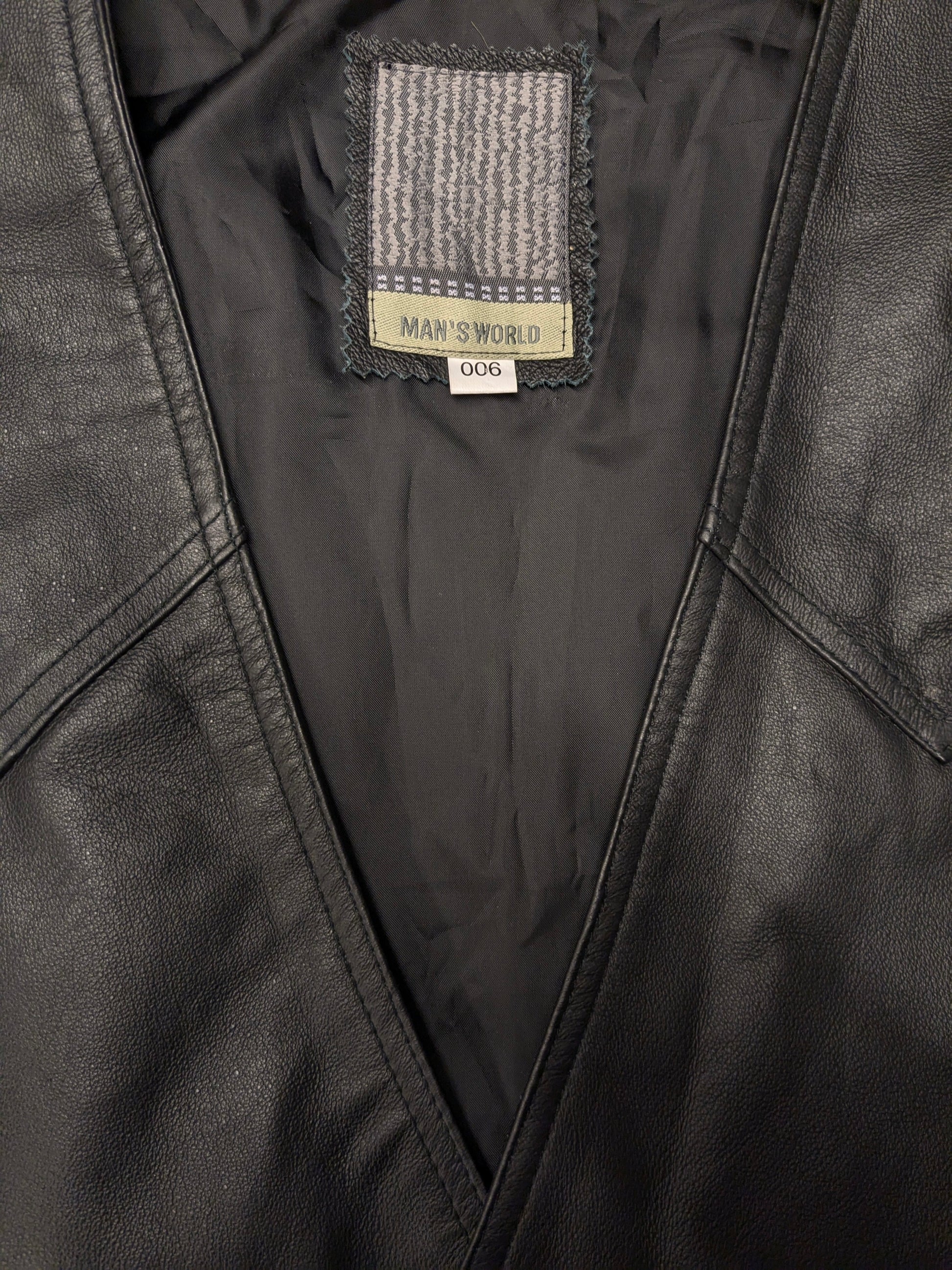 Vintage Man's World dubbelzijdig leren gilet met drukknopen. Zwart gekleurd. 2 binnenzakken. Maat XL.