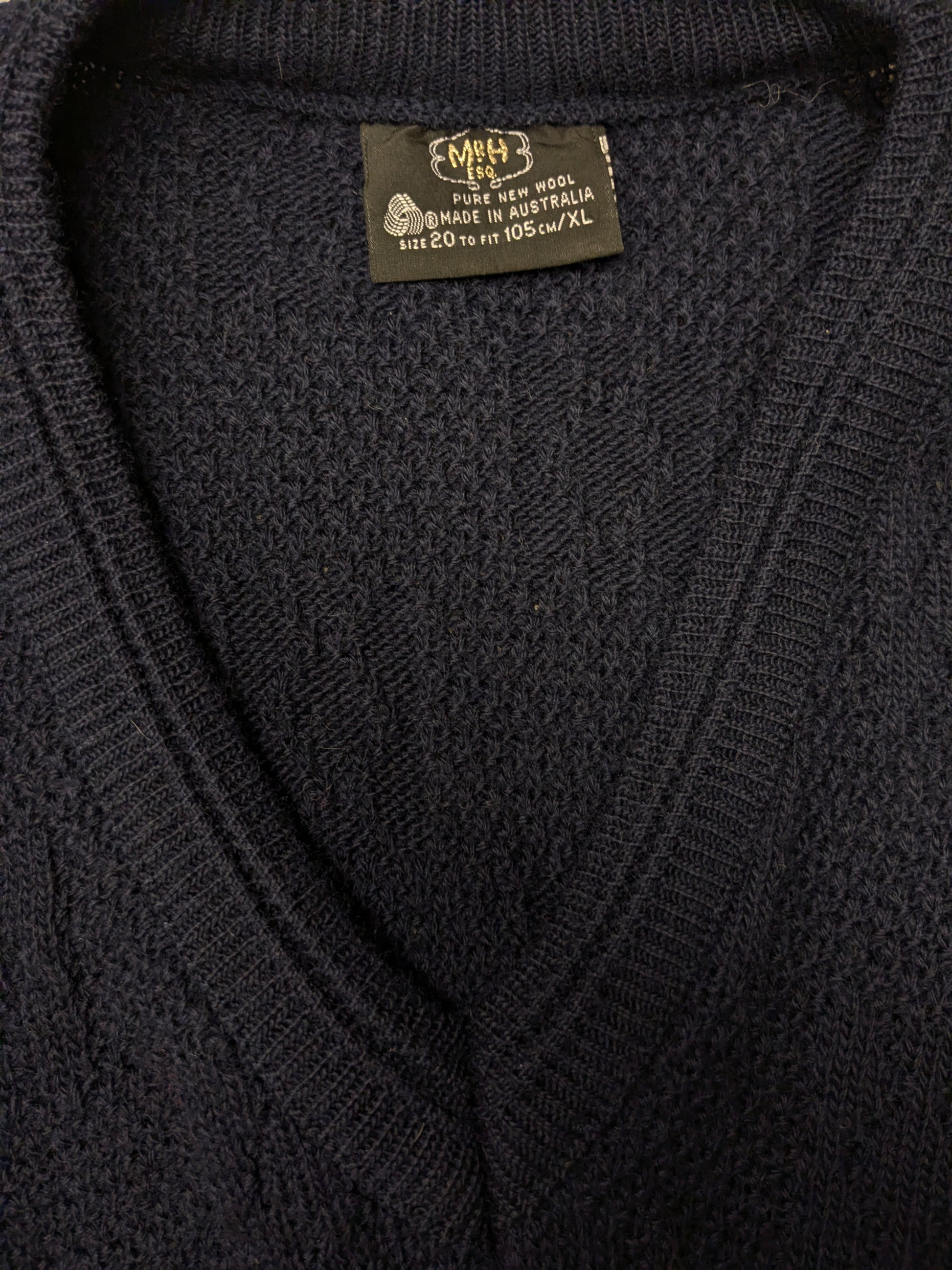 Vintage MRH Wollen trui met V-Hals. Donker Blauw Bruin Groen gekleurd. Maat XL.