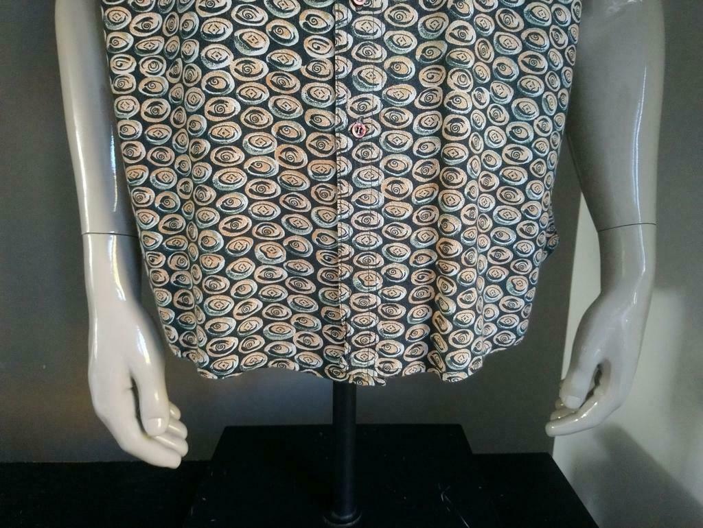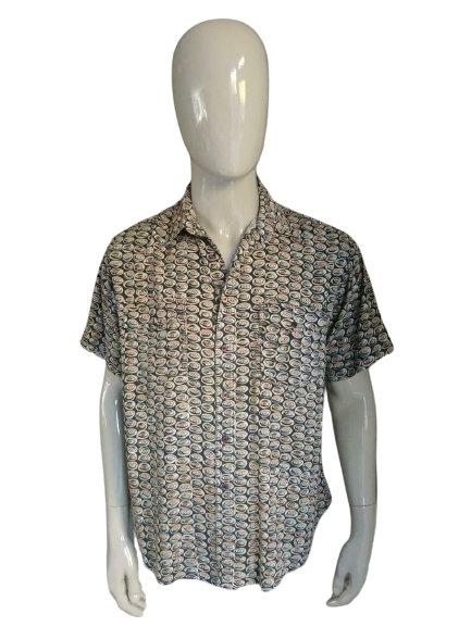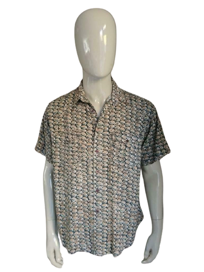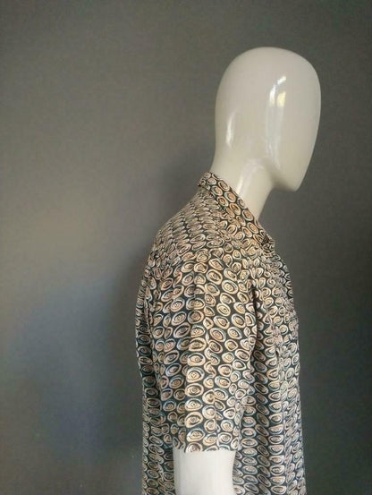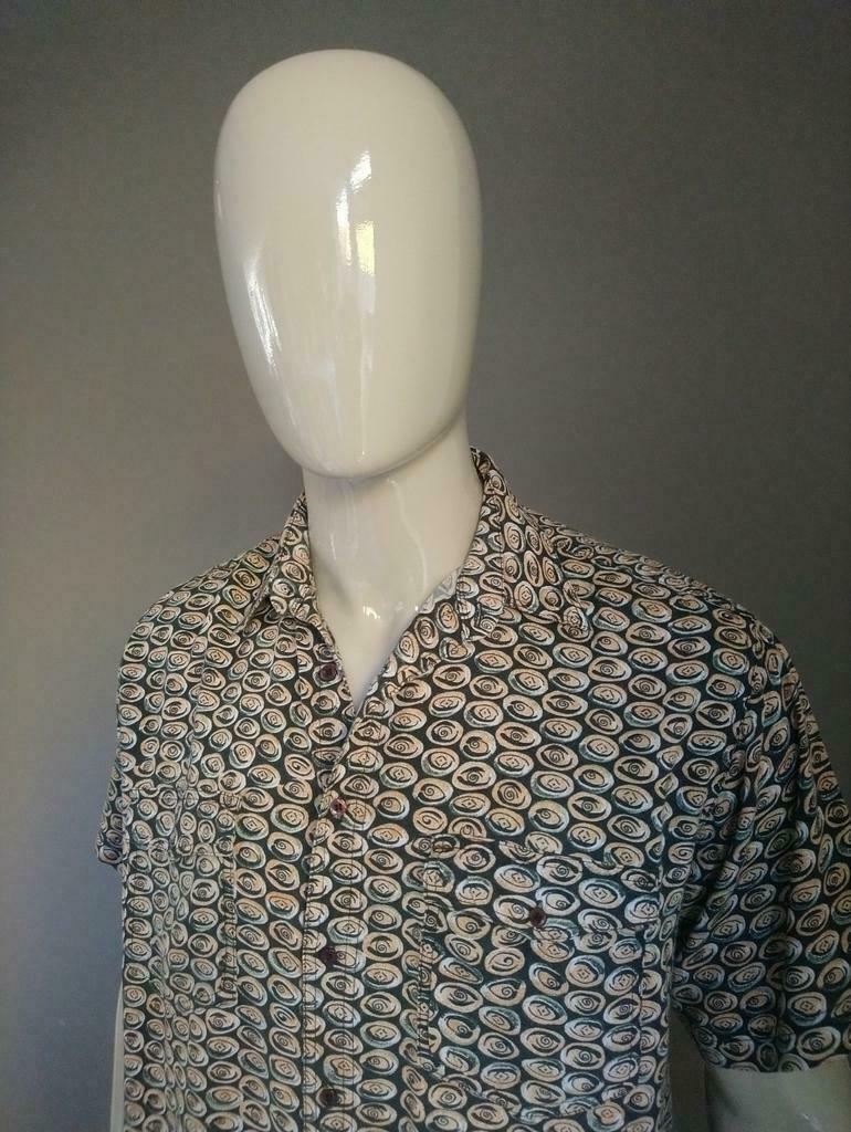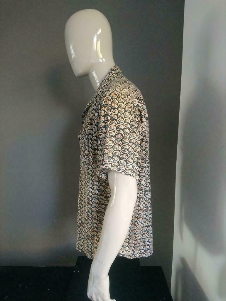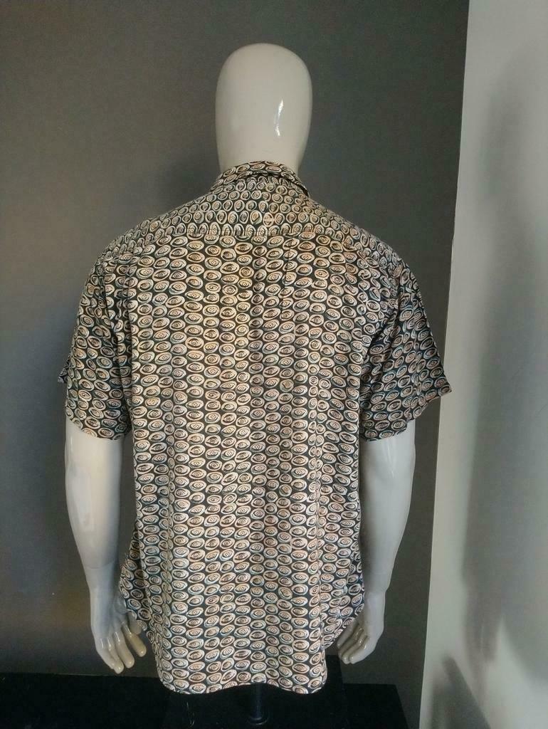 Vintage overhemd met korte mouwen. Oranje Zwart. Maat XL.