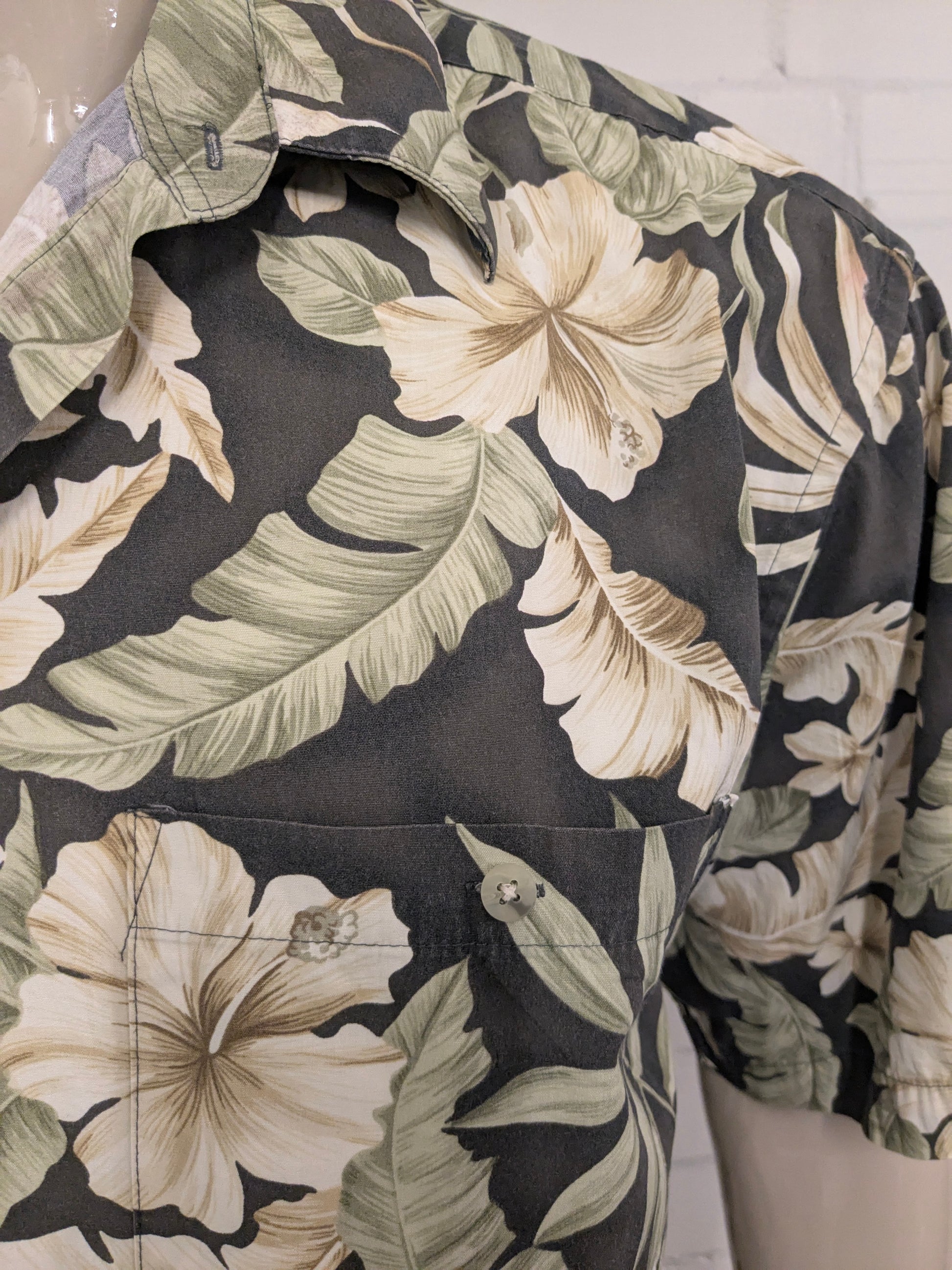 Vintage Piere Cardin Hawaii overhemd korte mouw. Groen Zwart Beige print. Maat 2XL / XXL.