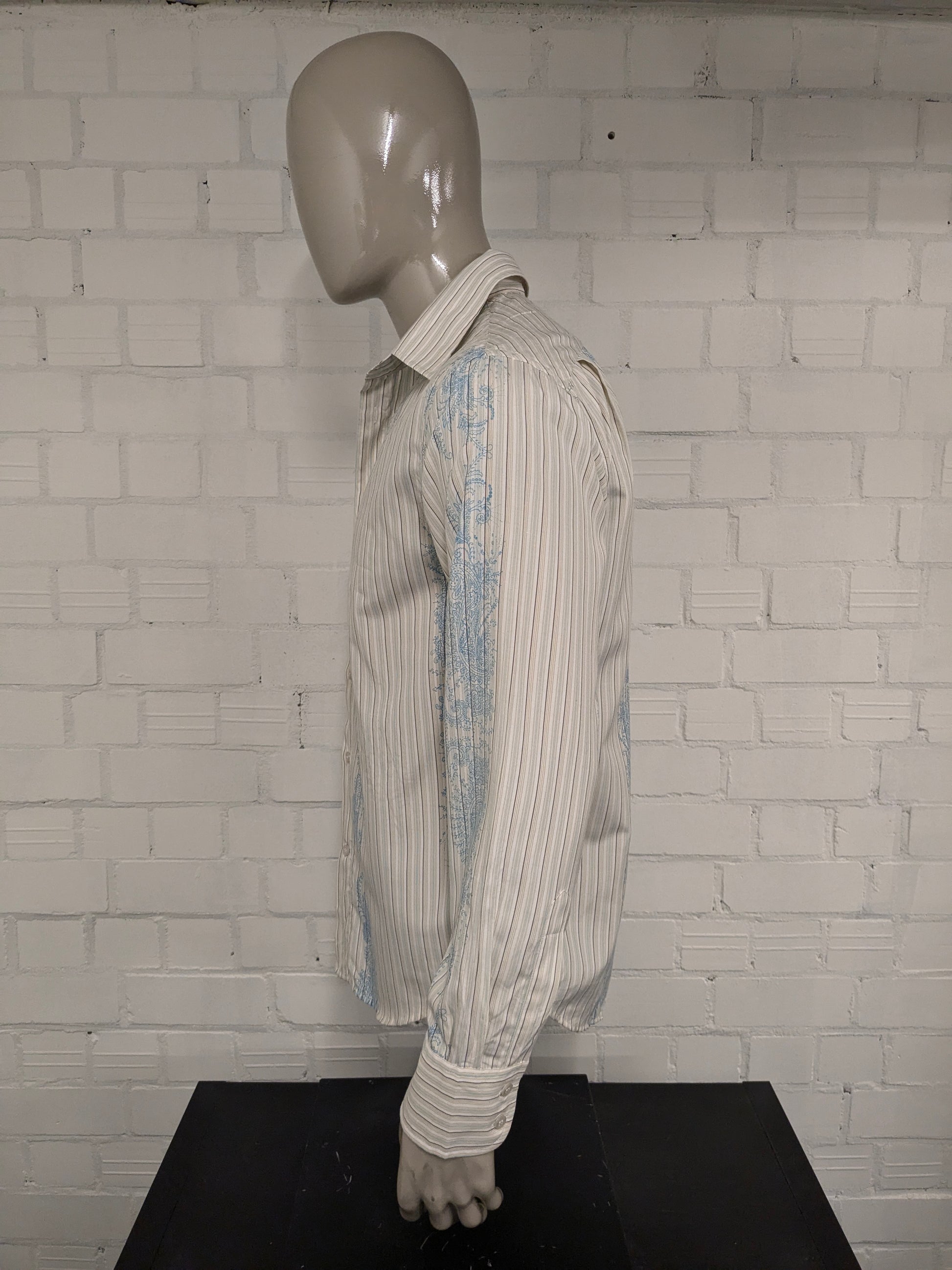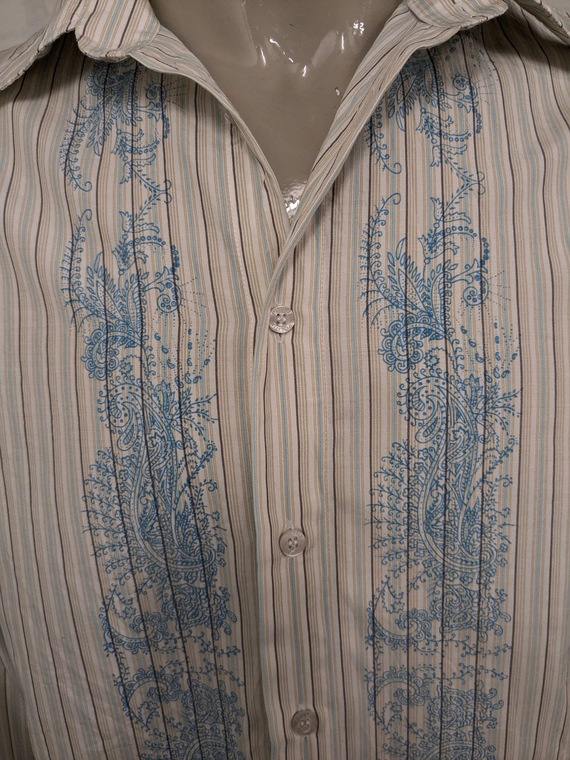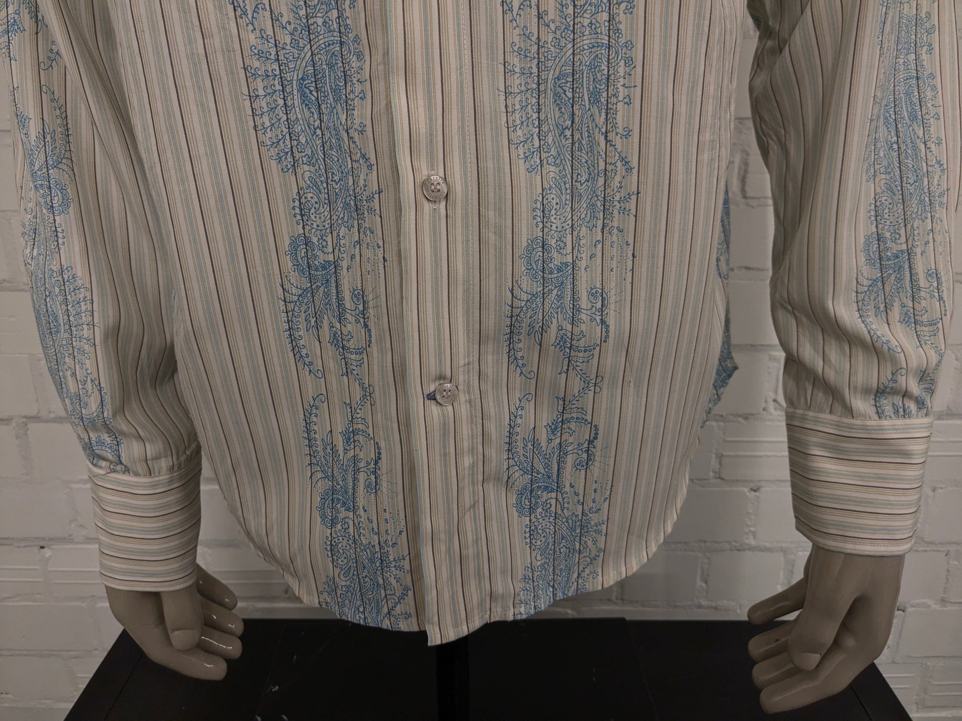 Vintage Politix overhemd met puntkraag. Beige Blauw Bruine print. Maat M / L.