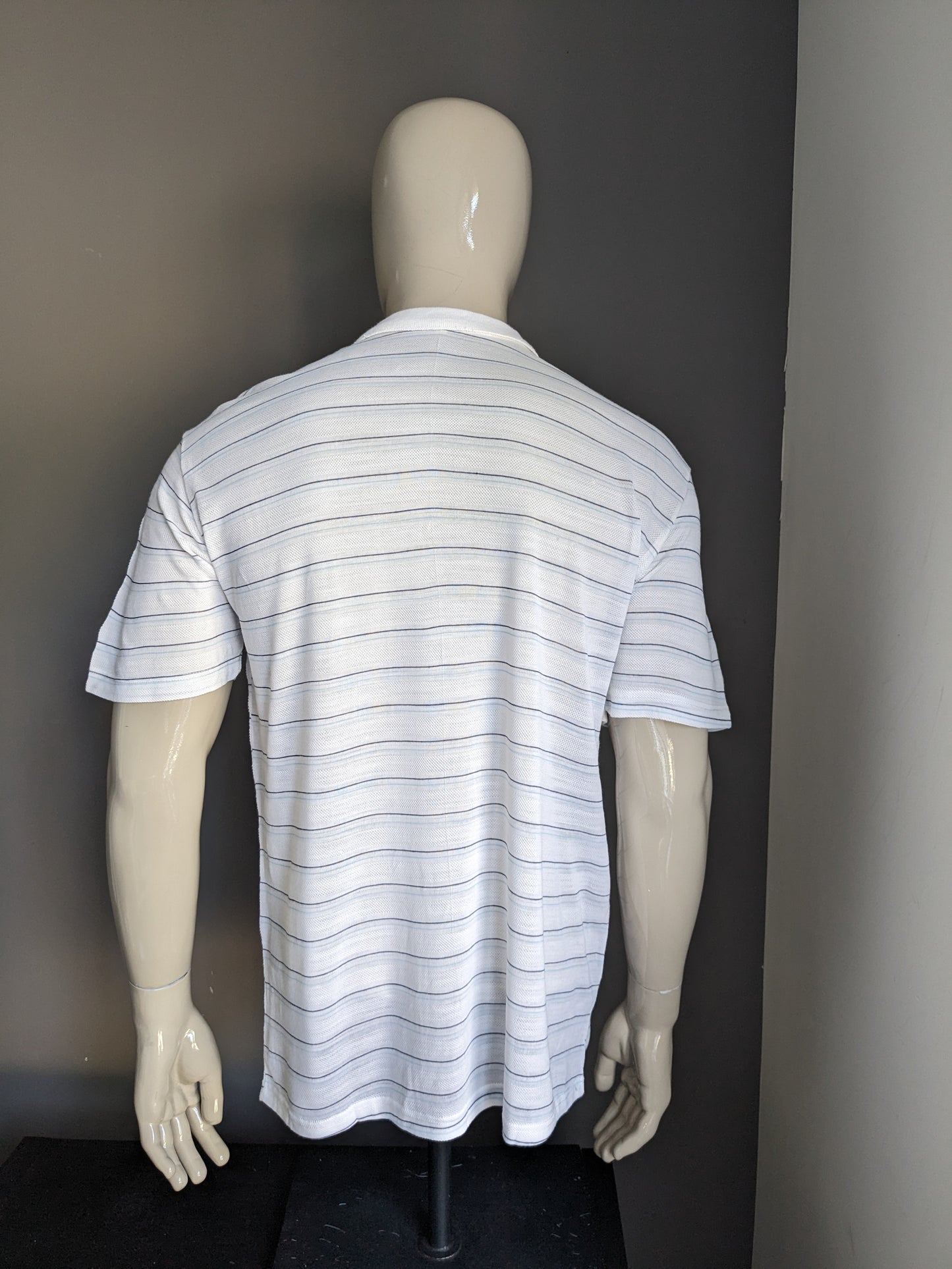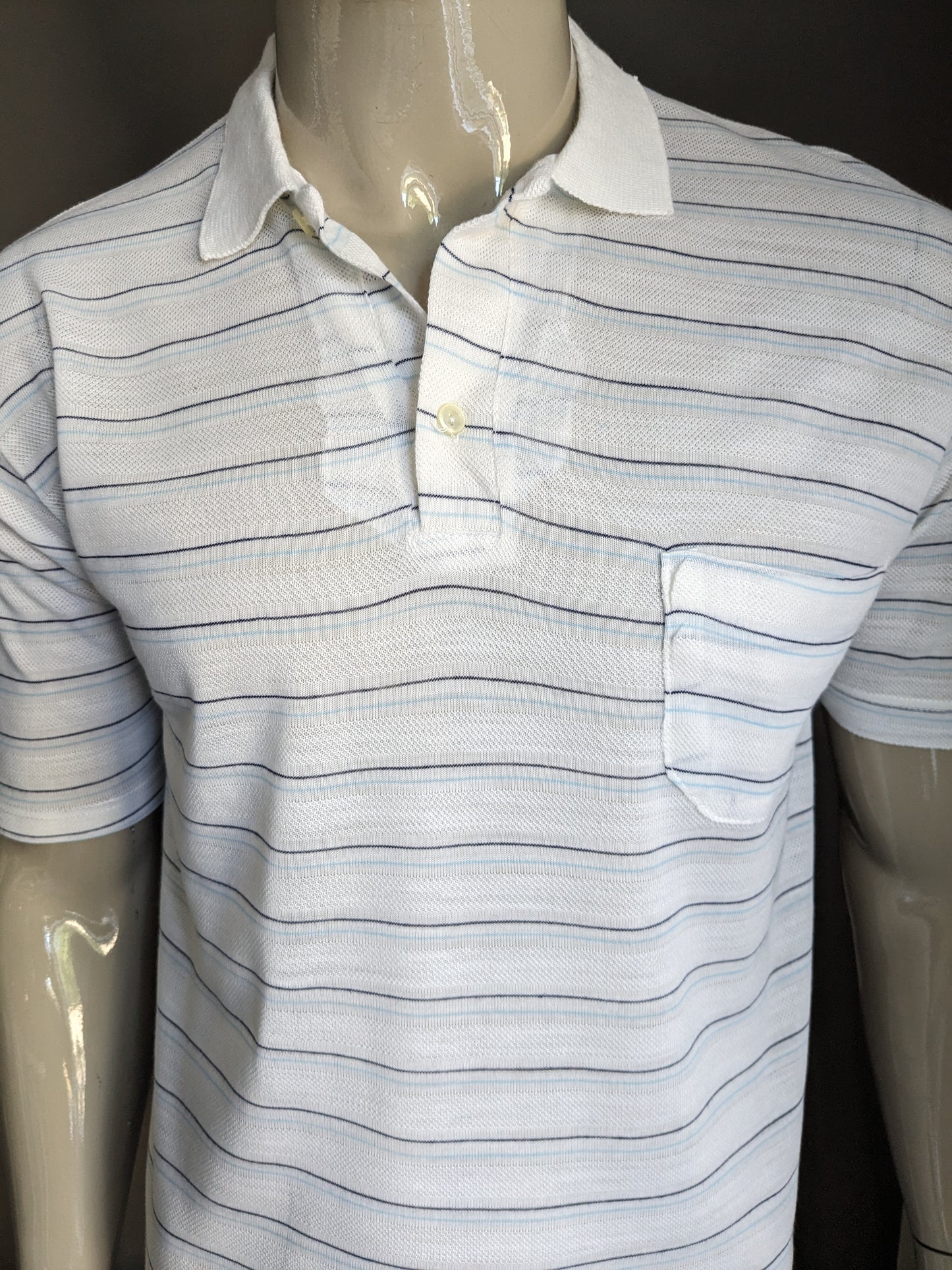 Vintage polo. Wit Blauw gestreept. Maat 54 / L.