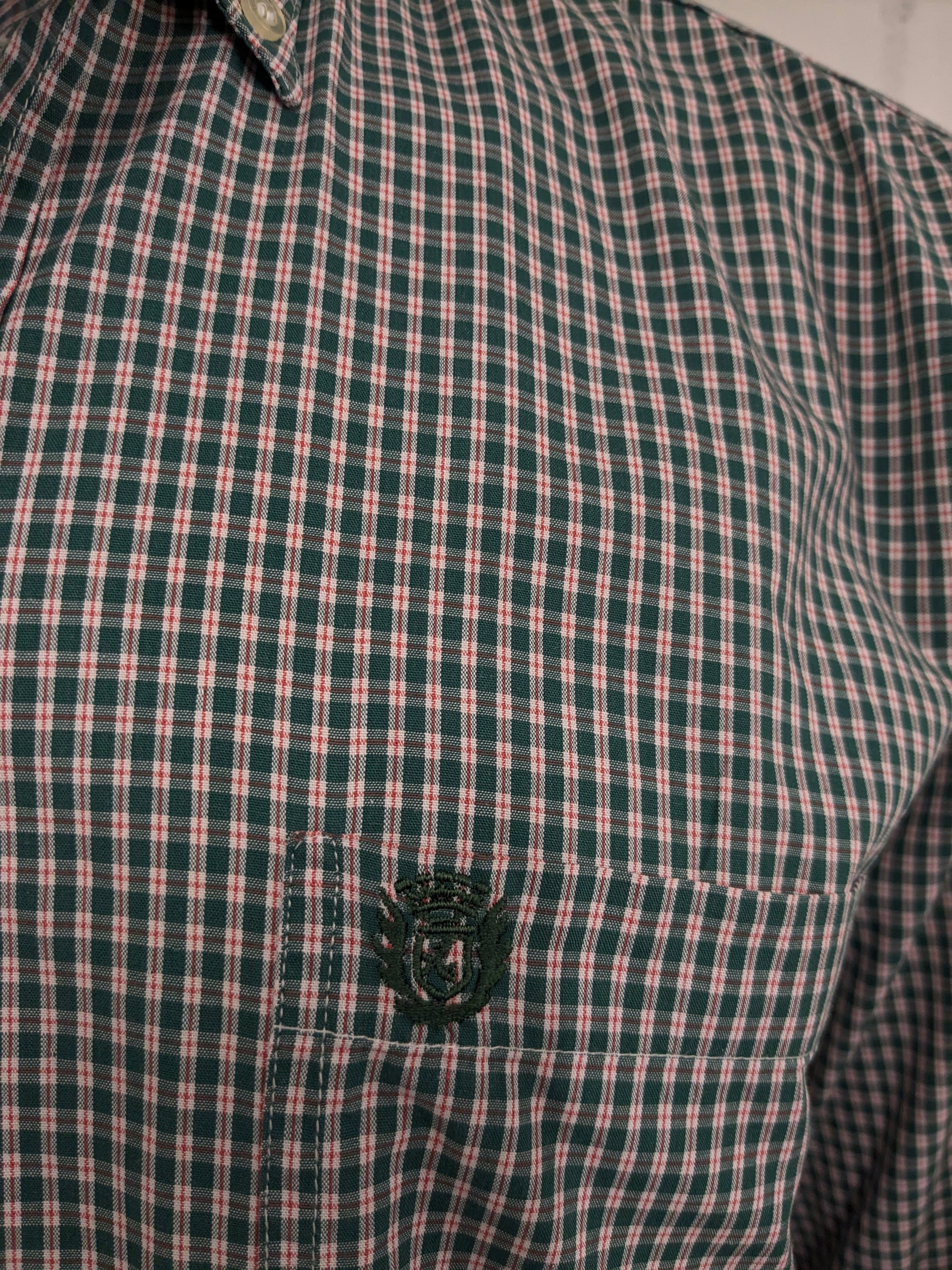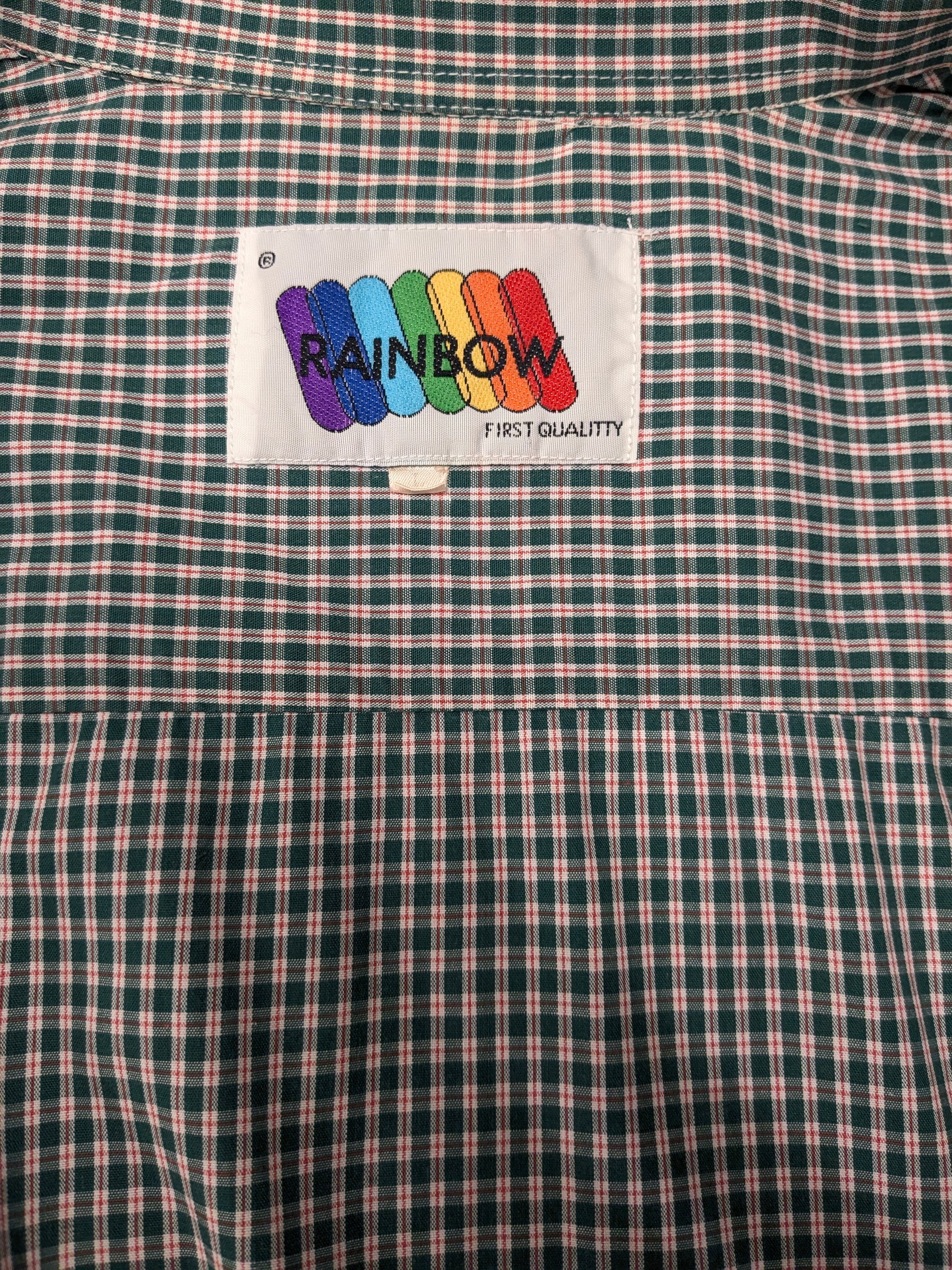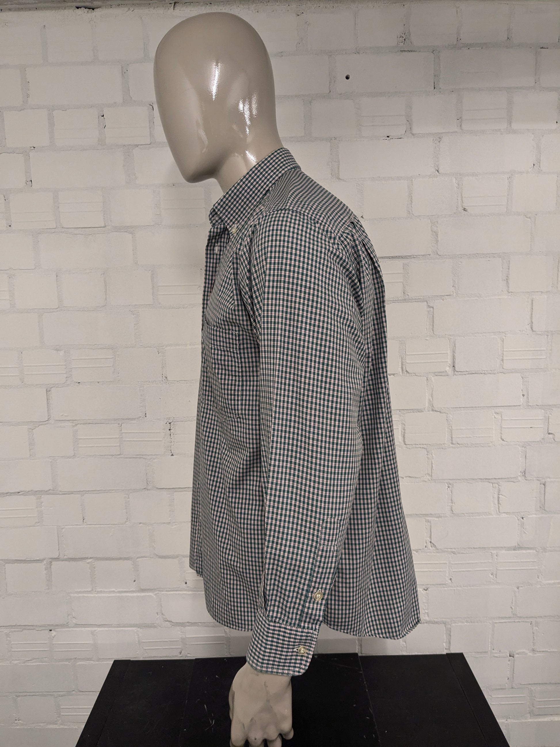 Vintage Rainbox overhemd. Groen Rood Beige geruit. Maat XL.