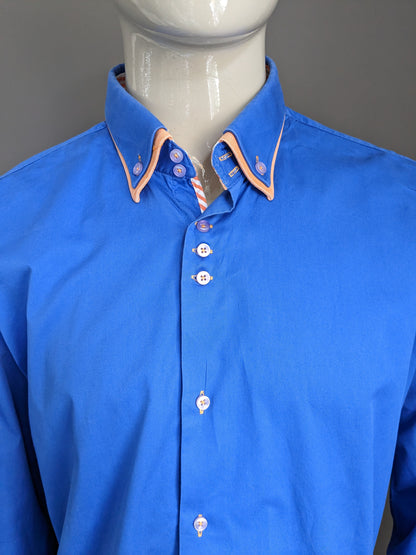 WAM Denim overhemd met dubbele kraag. Blauw Oranje gekleurd. Maat XL.