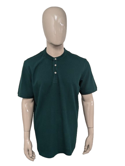 We Fashion polo met farmer / mao / boerenkraag. Donker Groen gekleurd. Maat 2XL / XXL.